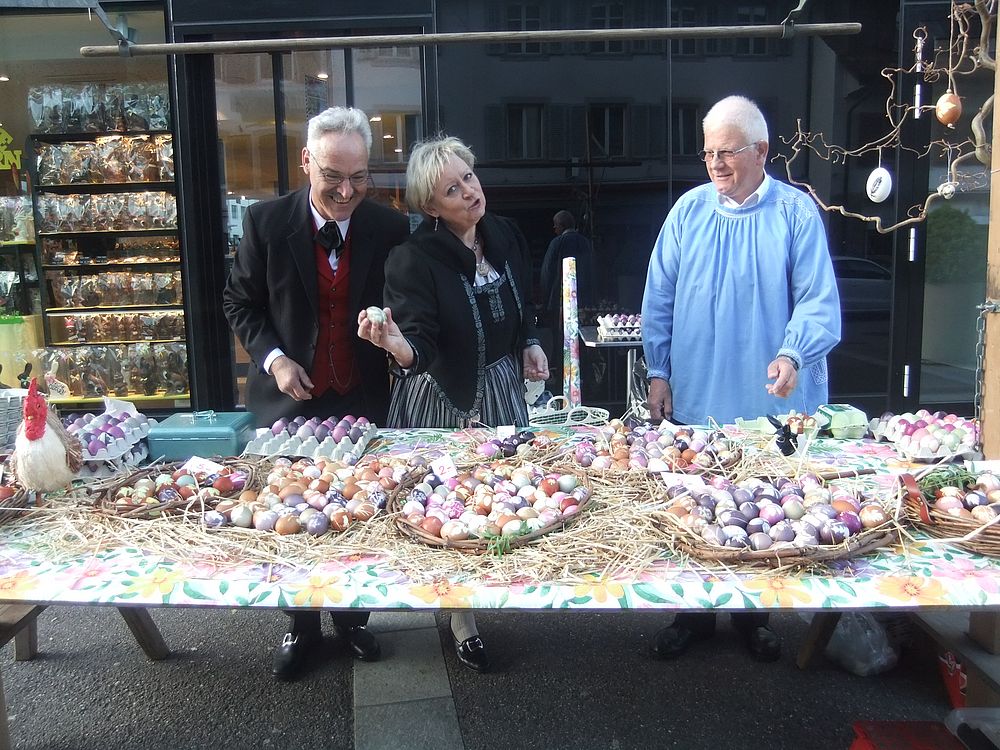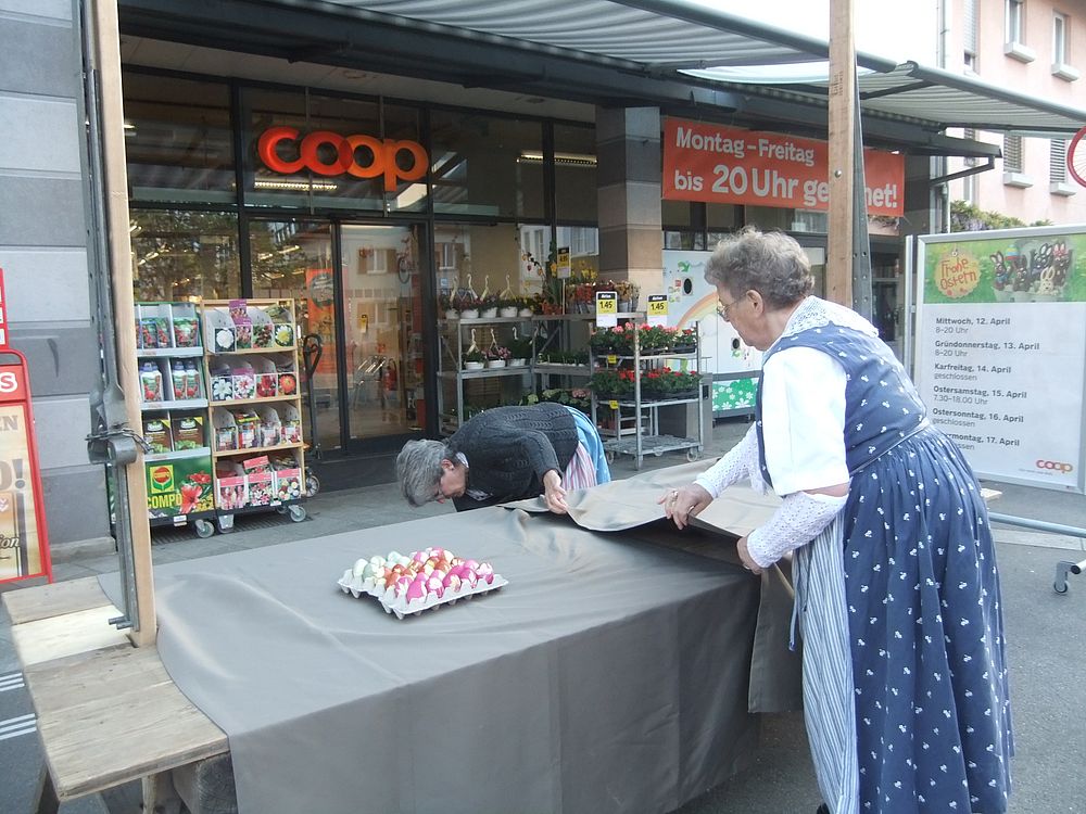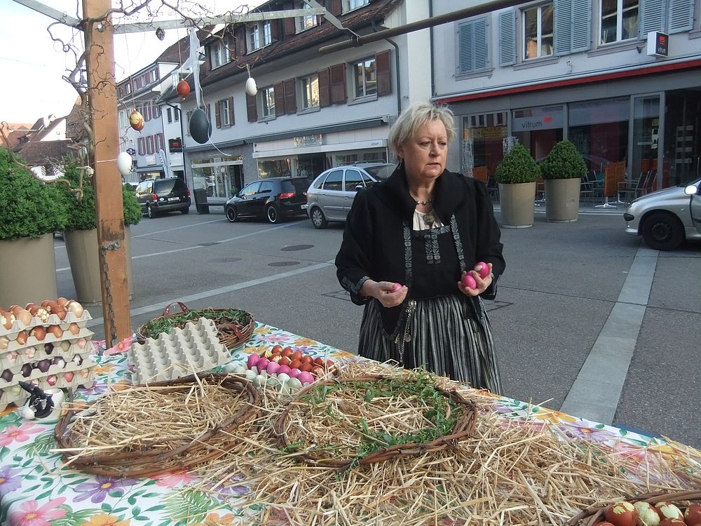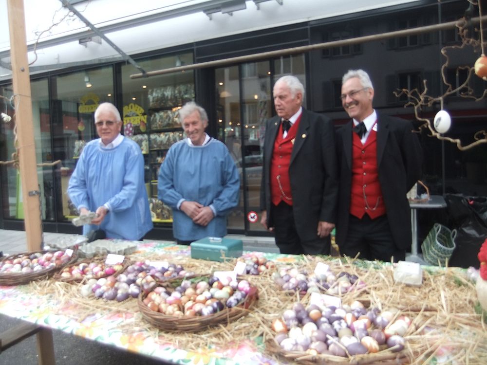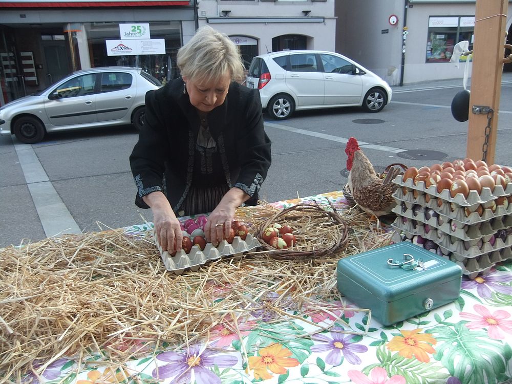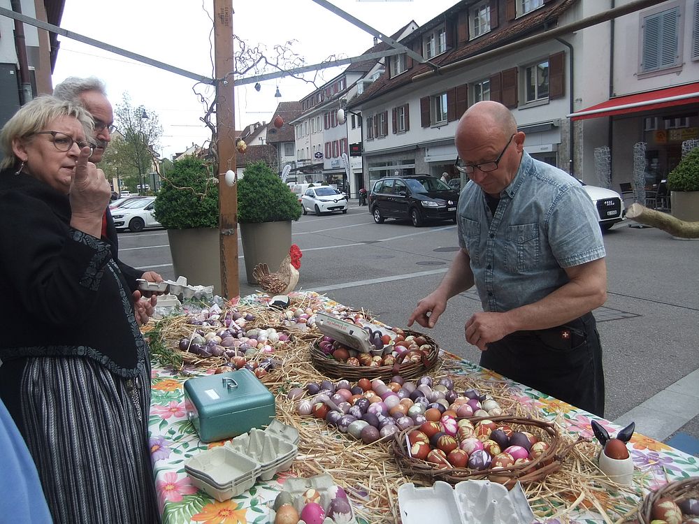 Über tausend Eier wurden von der TG Sissach gefärbt und an zwei Ständen in der Begegnungszone Sissach verkauft.