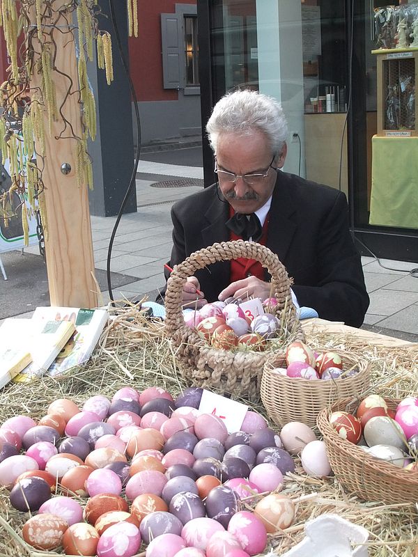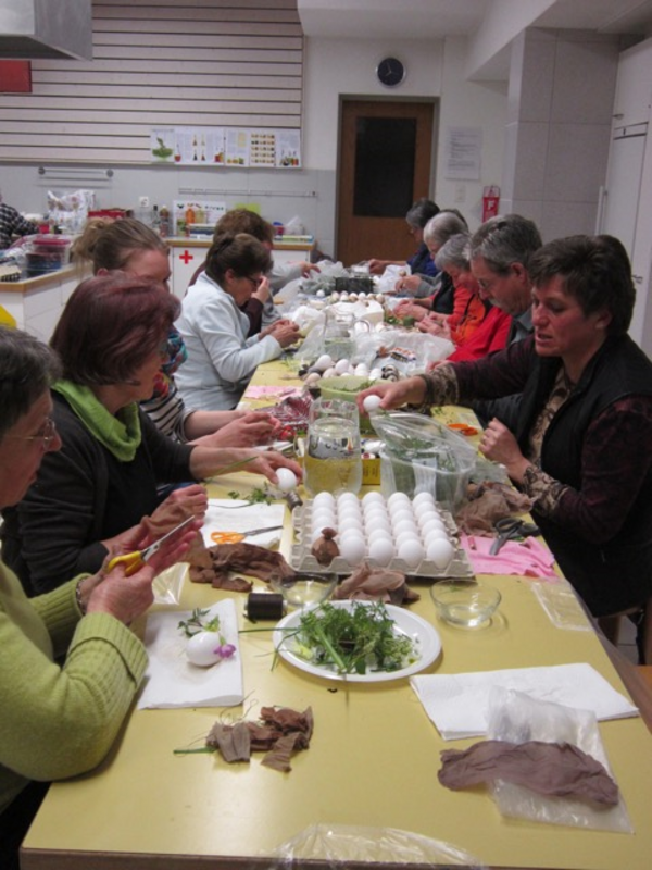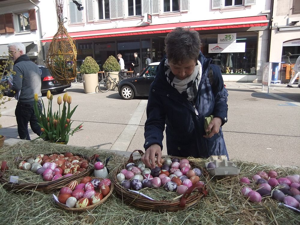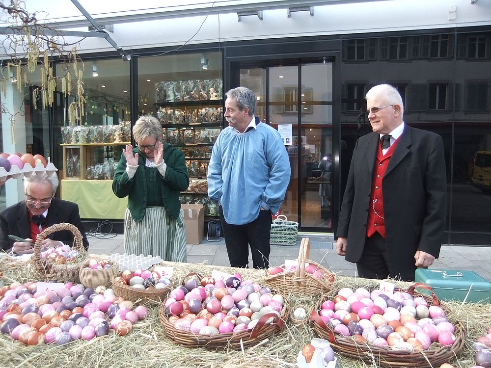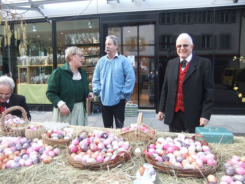 Wider hett d'Trachtegruppe Sissech erfolgrich sini Oschtereier in dr Begegnigszone in Sissech verchauft.