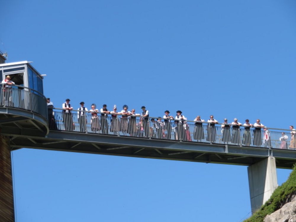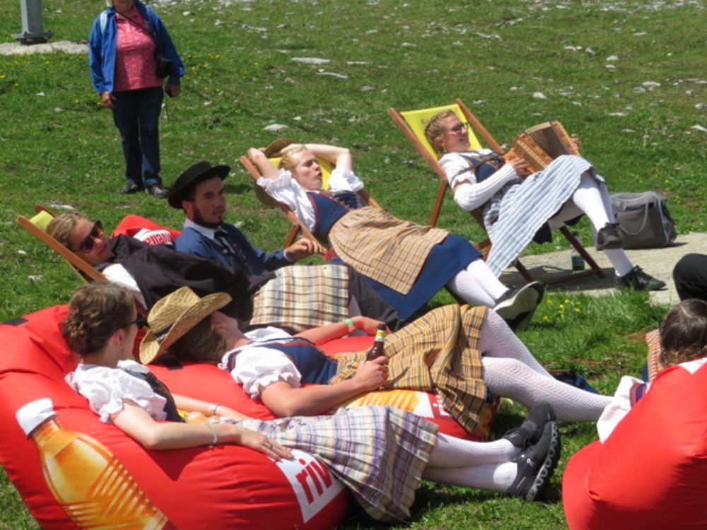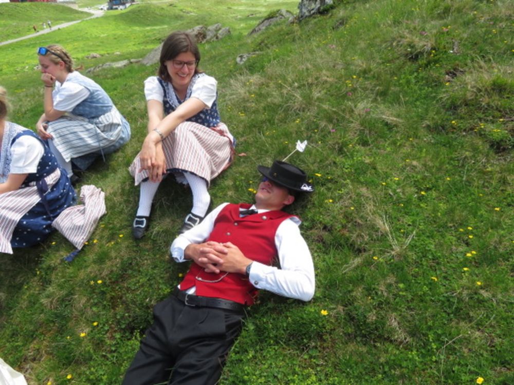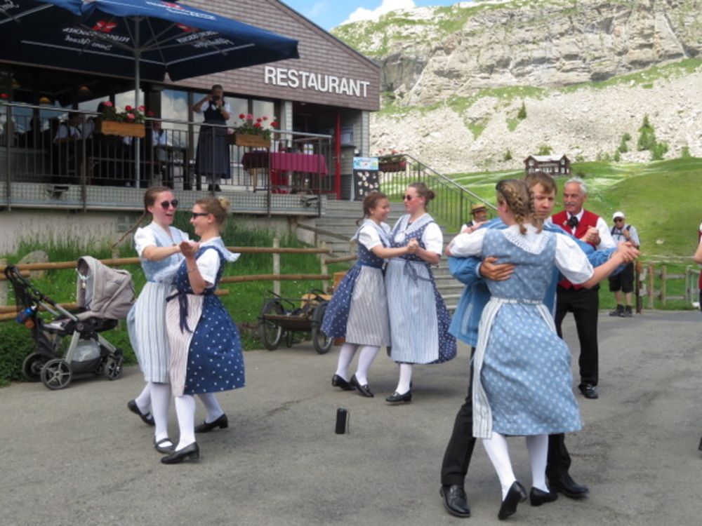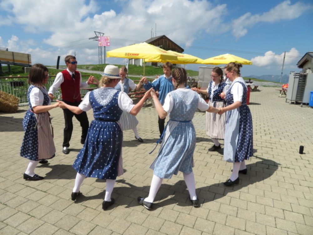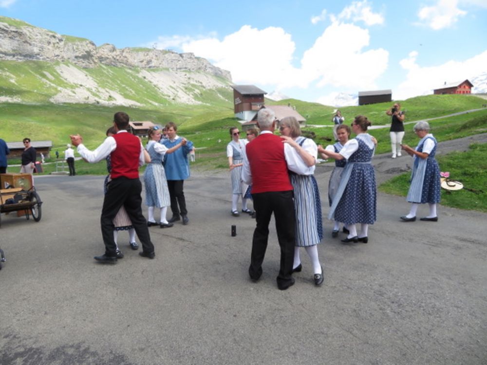 Am Sonntag, 25. Juni versammelten wir uns um 08.00 Uhr beim Tannenbrunn Parkplatz und fuhren mit dem Sägesser Car zur Stöckalp/Melchsee Frutt wo das Innerschweizer Trachtenfest stattfand. An sechs Plätzen rund um den See wurde an diesem herrlichen und sonnigen Sonntag, nach dem Motto der Trachtengruppe Sarnen "Tanzen und Frehlich sy", getanzt und musiziert. Nach dem Mittagessen fuhren wir mit der Gondelbahn spontan noch auf den 2170m hohen Bonistock wo die "Trachtä – Musig Sachseln" spielte. Um 16.30 Uhr wollten wir dann so langsam wieder zur Melchsee Frutt hinunter fahren. Die Gondelbahn hatte aber dann ein kleines technisches Problem, was für uns aber weiter nicht störte, konnten wir doch noch ein paar Tänze vorführen.