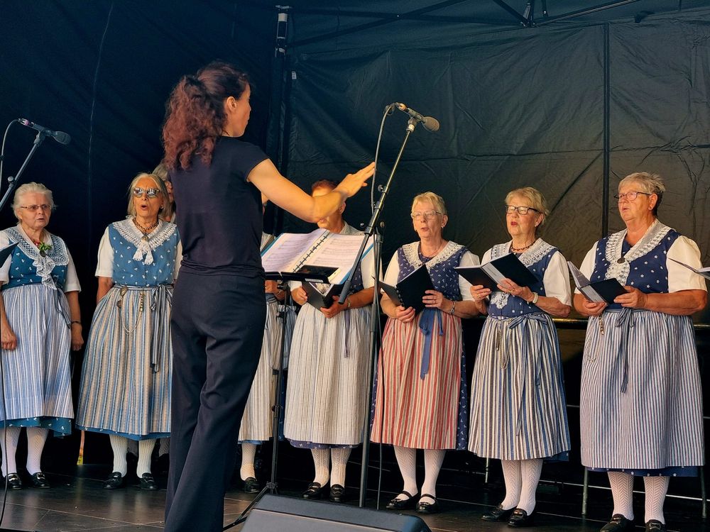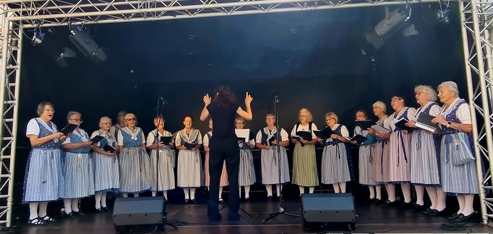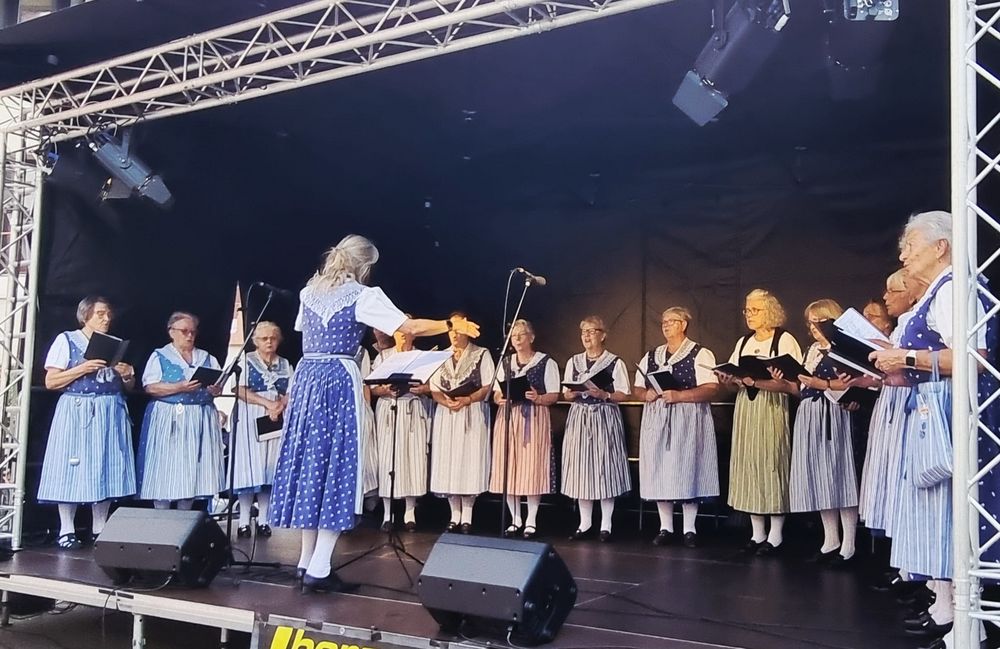 Am Nachmittag hatten wir vom Chor unseren Auftritt auf der Bühne im Martinshof bei der Kirche. Wir haben Volks-und Jodellieder und auch einen Swing gesungen, wir hatten viel Publikum und grossen Applaus. Ausnahmsweise hatten wir zwei Dirigentinnen die abwechselnd die Lieder dirigierten. Die Erklärung ist, dass es der letzte Auftritt als Dirigentin mit Gillian Macdonald war nach acht Jahren Chorleitung möchte Sie etwas ungebundener sein. Wir sagen ein Herzliches DANKE!!!