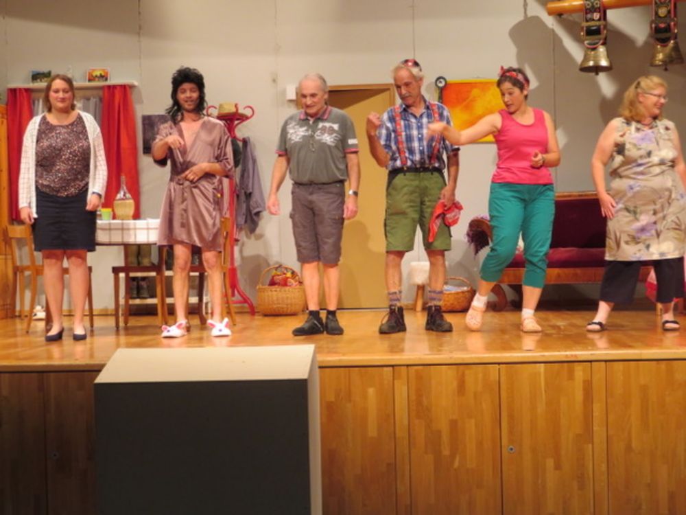 Nach einer halbstündigen Pause spielte dann die Theatergruppe das Lustspiel in einem Akt “Dr Adonis vom Chuehstall“. Von A bis Z eine Verwechslungsgeschichte mit viel Klamauk. Die Schauspieler beherrschten alle ihre Rollen sehr gut, so dass es der Souffleuse im Souffleurkasten vor der Bühne bald langweilig wurde. Die Regie wurde erstmals von zwei Schauspielern übernommen, welche ihre Sache bestens machten. Die nötige Schminke haben sich alle selber ins Gesicht gestrichen. Der Schlussapplaus hat alle Aktiven überzeugt und die Vorfreude auf den 9. November 2024 geweckt, um am Heimatabend wieder mit viel Lust und Freude auf der Bühne zu stehen.