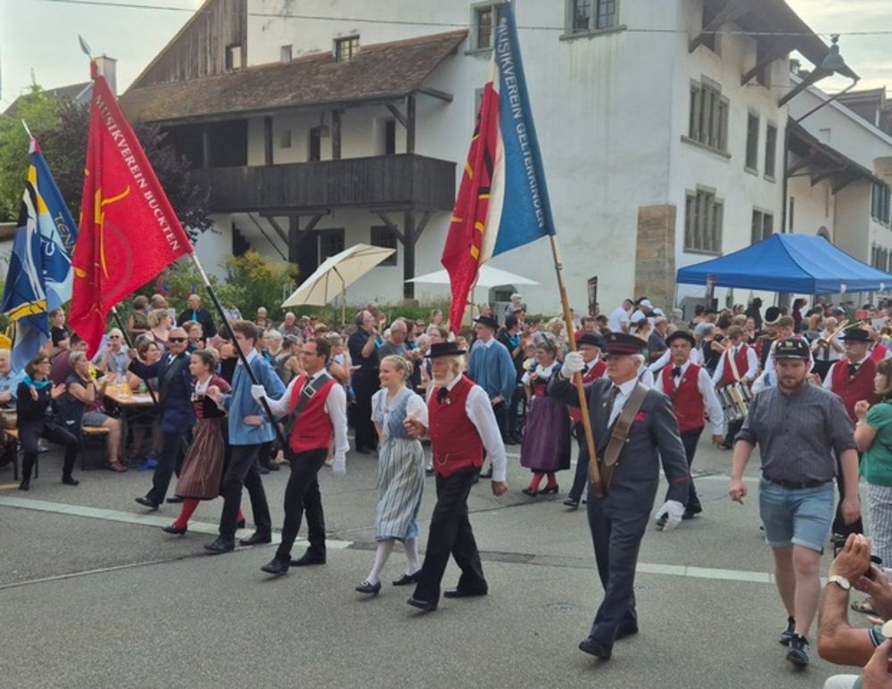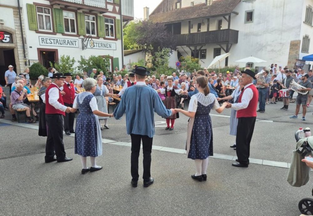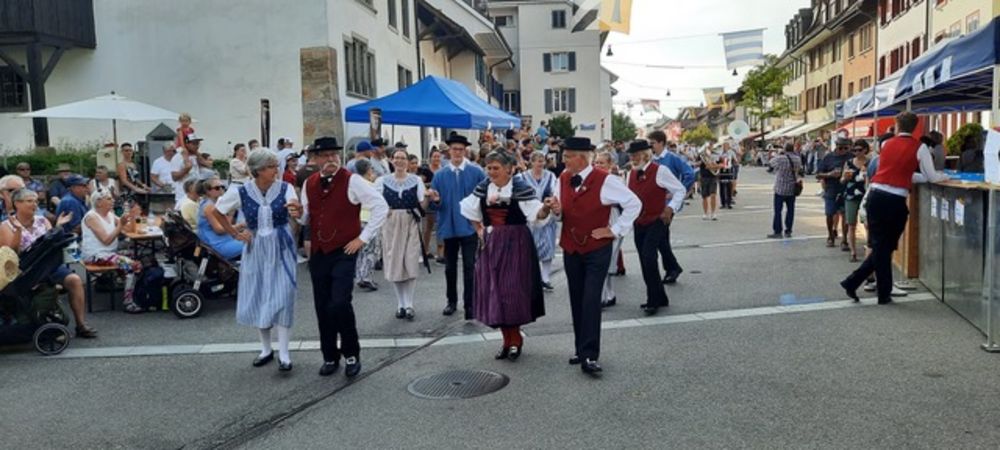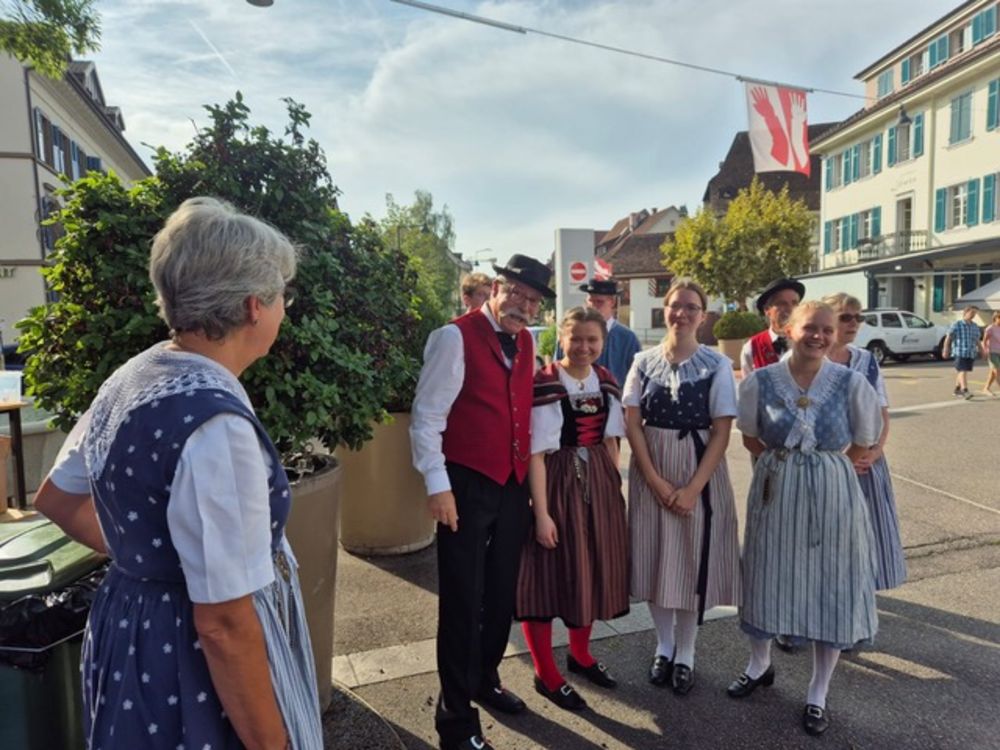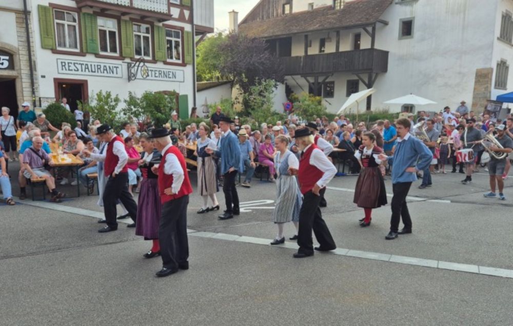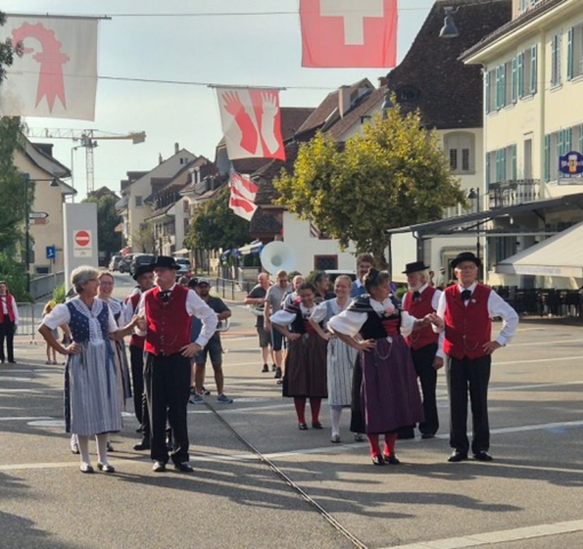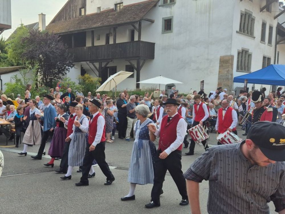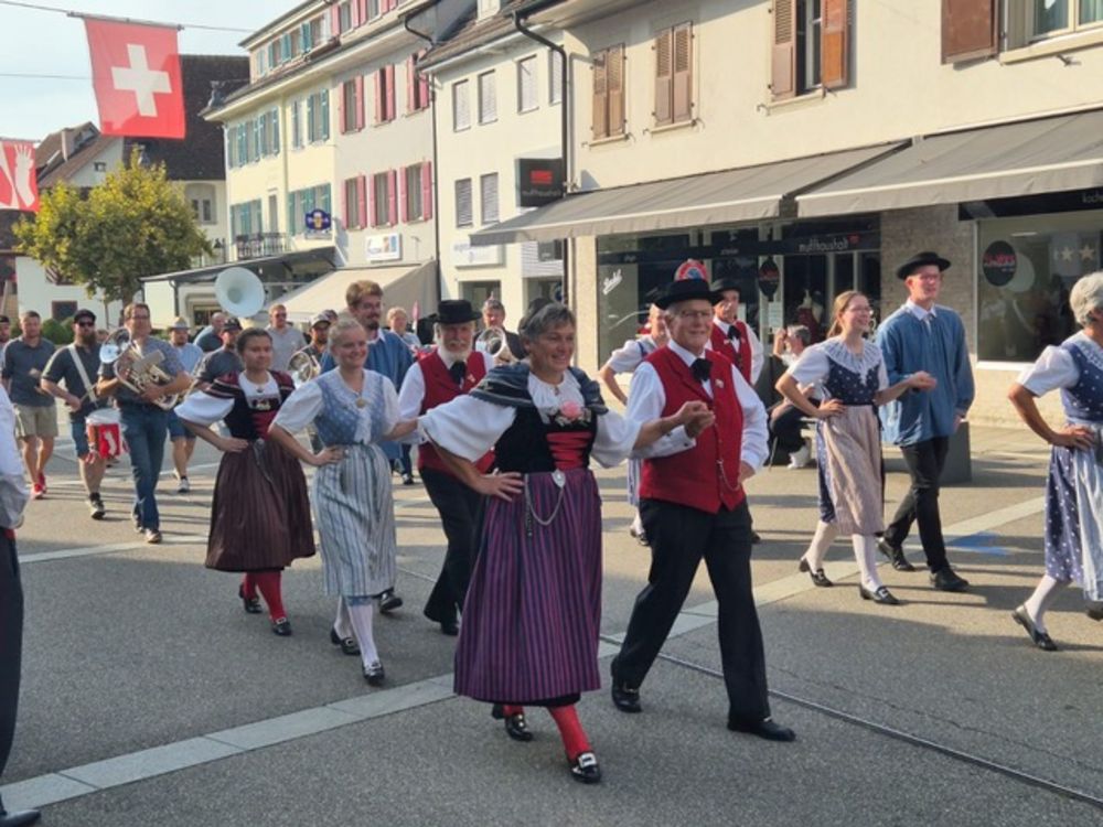 Einladung des MV Sissach durften wir mit sieben Paaren mit der "Wurst und Brot Musik", einer Kleinformation des MVS voraus marschieren und tanzen.Die Musikanten lernten für uns extra den Niederscherli Schottisch.