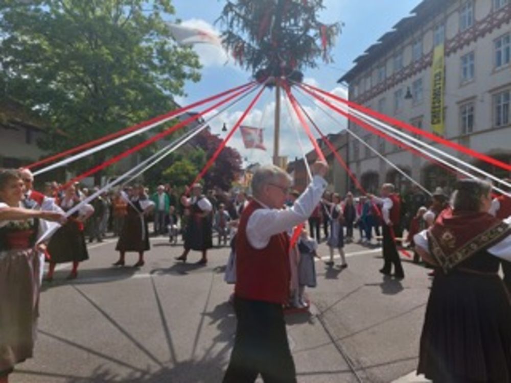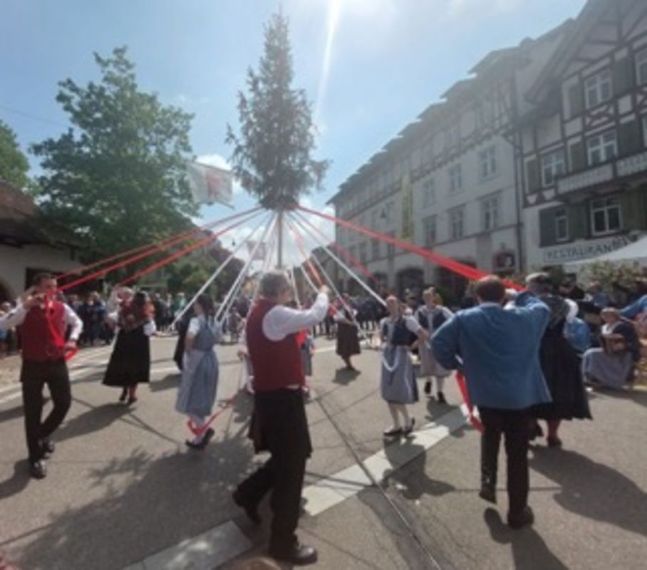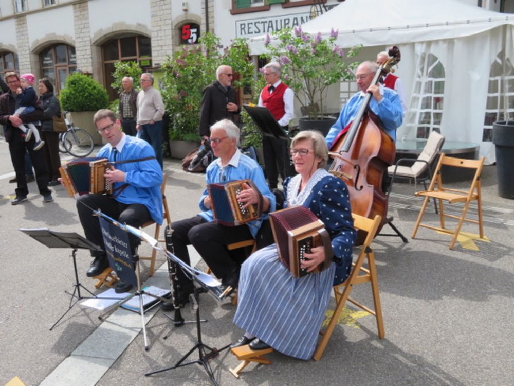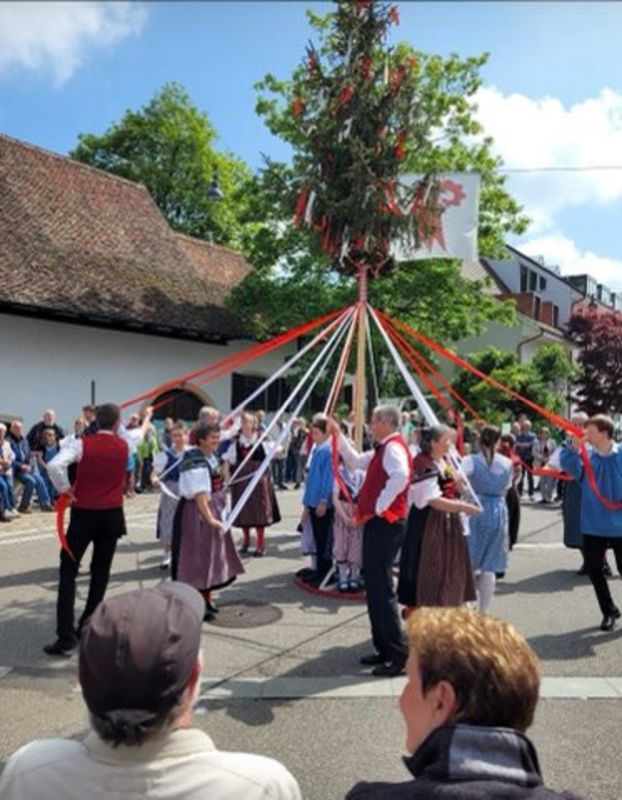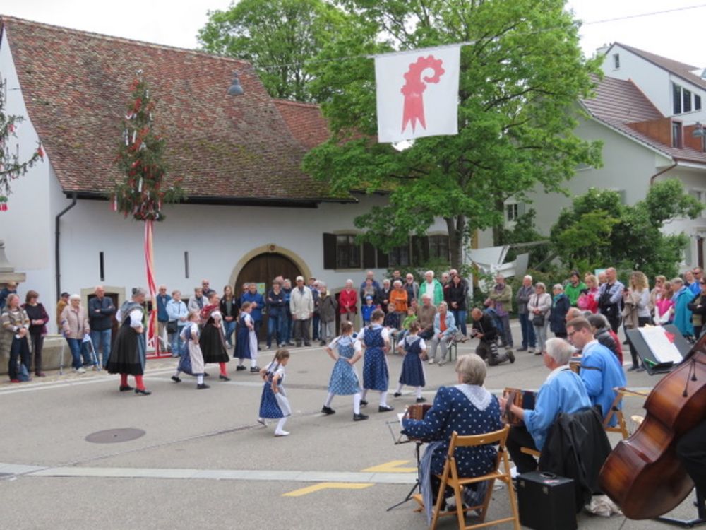Am Sonntag, 1. Mai 11.00 Uhr stand, nach zwei jähriger Pause, das ehem. Maisingen, Neu Maitanzen in der Sissacher Begegnungszone auf dem Programm. Das Wetter meinte es gut mit uns, schien doch teilweise die Sonne. Nach dem Eintanzen um 09.45 Uhr, begann das Programm um 11.00 Uhr beim Bergerbrunnen. Erfreulicherweise kamen viele Zuschauerinnen und Zuschauer um unsere Vorführungen zu sehen. Zum Beginn tanzten wir alle zusammen das Dreiertänzli. In Abwechslung der drei Tanzgruppen wurden elf Tänze vorgetragen. Zum Abschluss ganz traditionell der Bändertanz, ganz ohne Fehler.