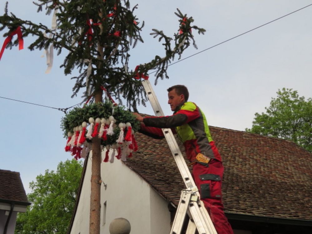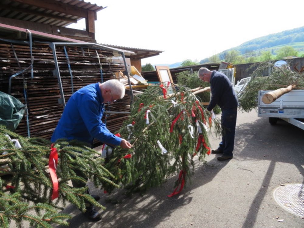 Am Freitag, 29. April, 09.30 Uhr, schmückten wir sechs Maibäume, von denen wir fünf ab 19.00 Uhr bei den Dorfbrunnen aufstellten. Da einige von uns Männern schon älter sind und so langsam die Kräfte weichen, konnten vor allem die jungen Generationen das Stellen der Bäume übernehmen, was super geklappt hat. Besten Dank.