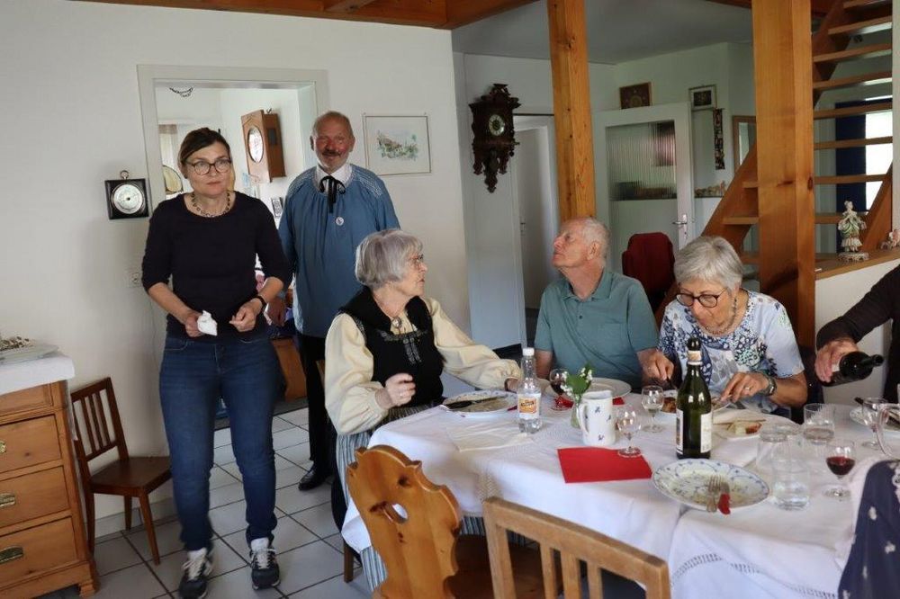 Für nach dem Anlass bekam die Tanzgruppe die Einladung, bei Margrit Benz im Garten grillieren zu dürfen. So verlagerte sich ein grosser Teil der Gruppe an die Unter Brieschalden. Der Grill war schon heiss, so dass diejenigen die noch weiter nach Reinach ans Maitanzen gingen, bald essen konnten. Der Rest der Gruppe konnte es etwas gemütlicher nehmen und ließ den Nachmittag gemütlich ausklingen. Ein grosses Danke an Margrit, an den Grillmeister Niggi sowie an die Enkelkinder, die alle sehr bemüht waren um das Wohl der Gäste.