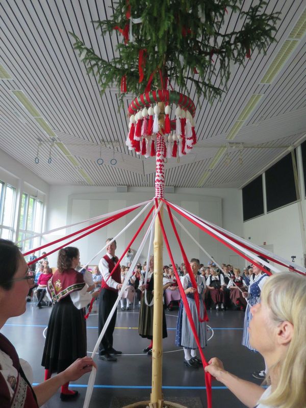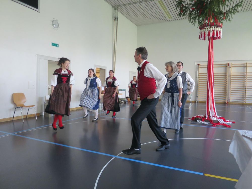 Mitglieder des Tanzkurses von Sabine Tschan führten uns mit ihrer Darbietung gar aus der Schweiz nach Amerika und für den Maibaum hatte Sabine tanzfreudige Helfer gefunden, damit wir mit 8 Paaren schön flechten konnten.