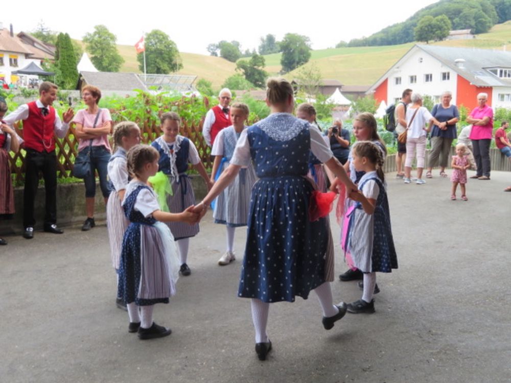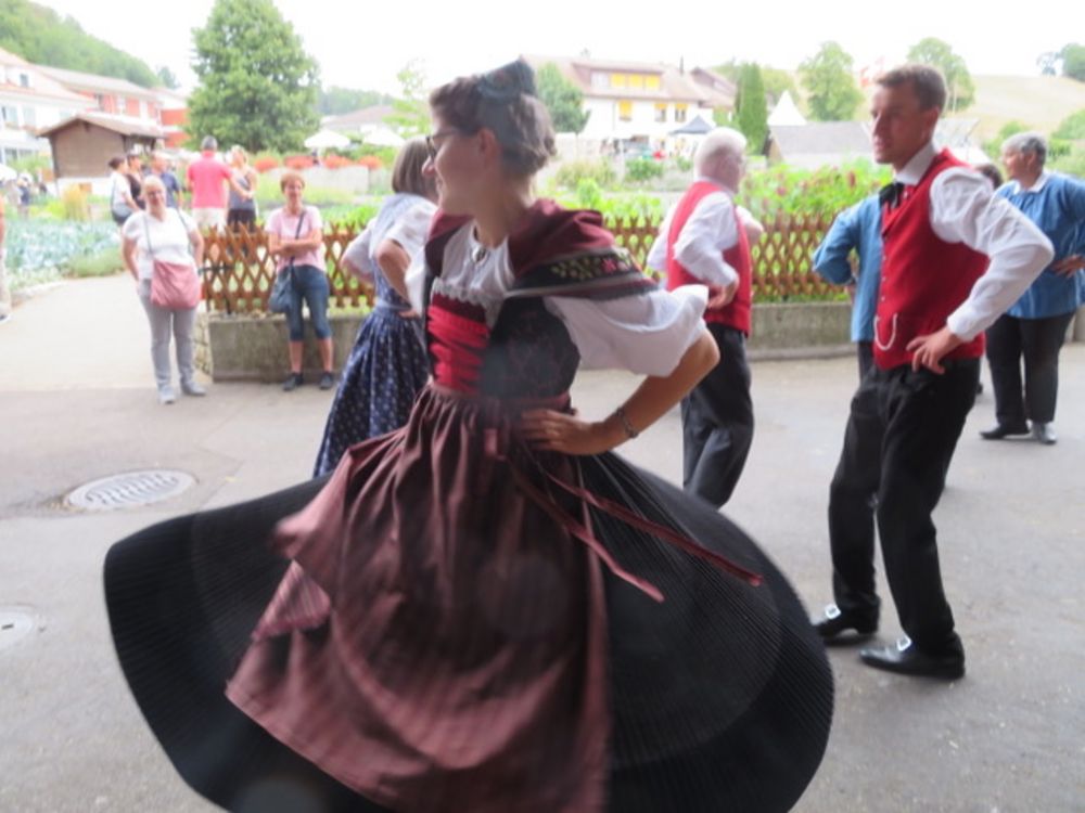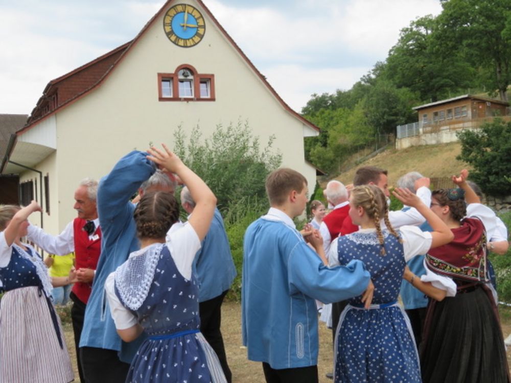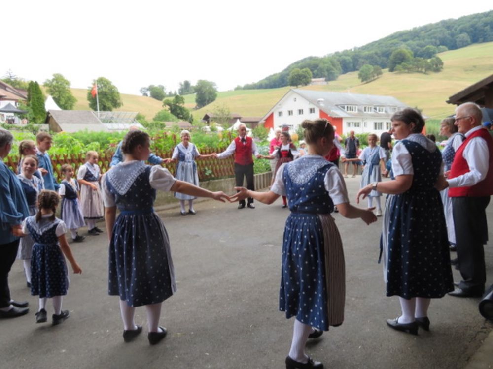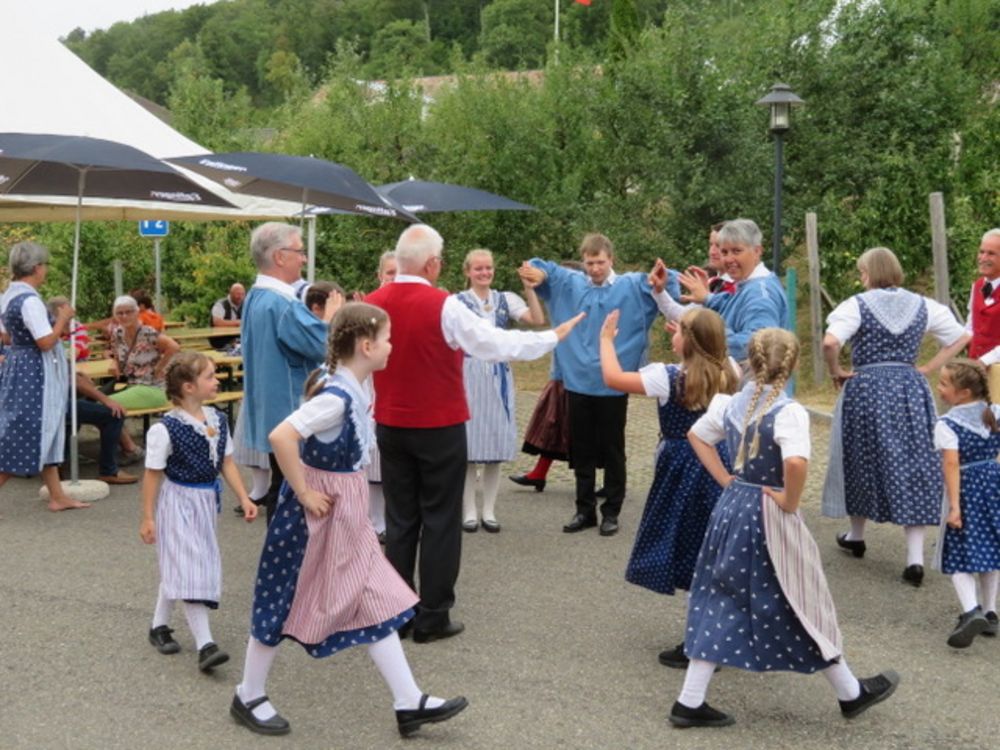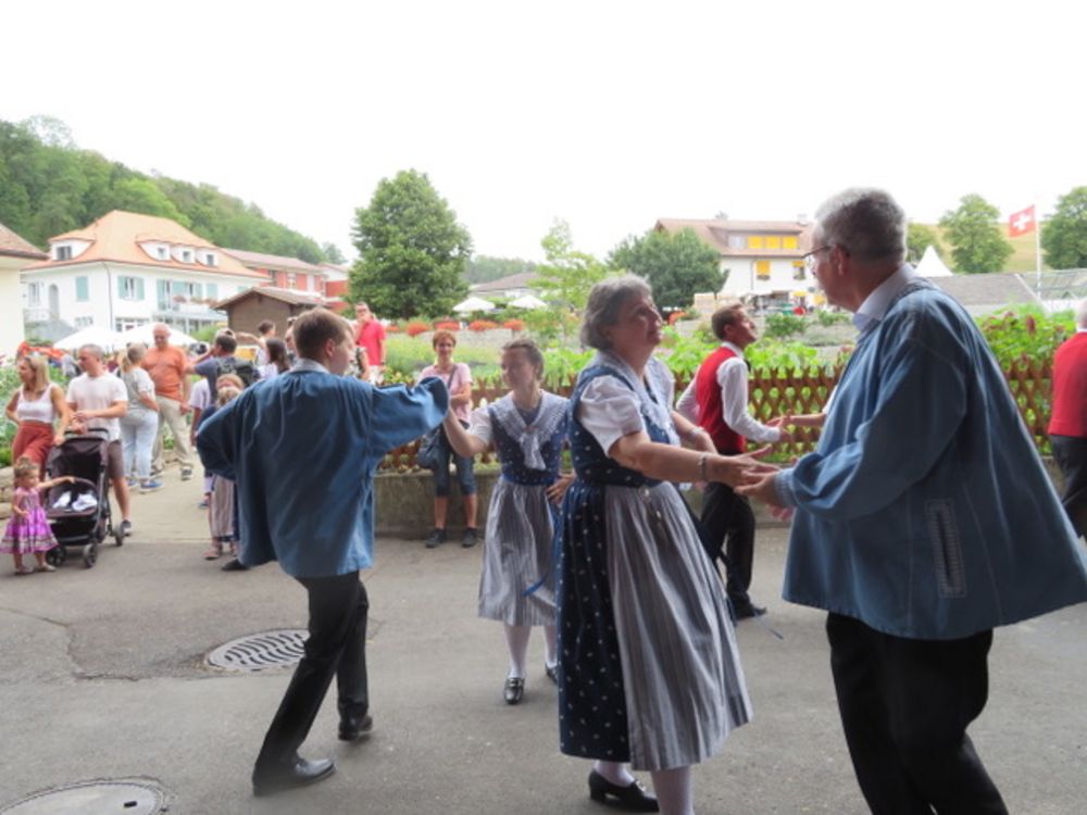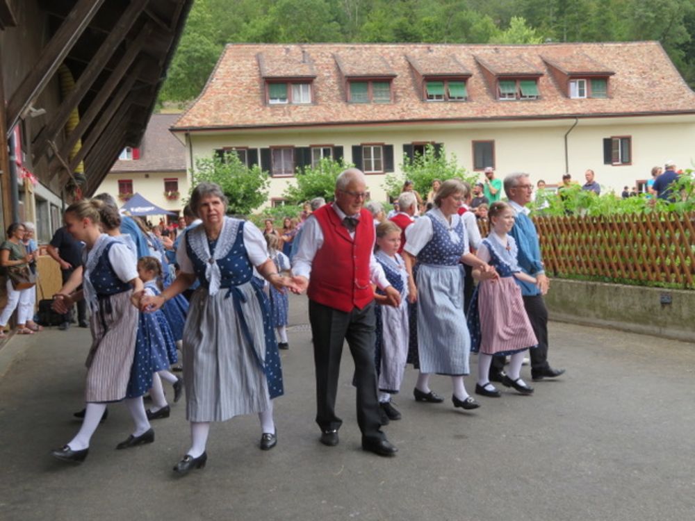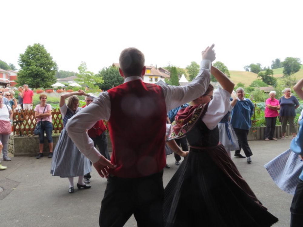 Am Sonntag,14. August, war es nach zwei Jahren Pause wieder einmal Zeit für das "Dietisbergfest". Man merkte es gut, sah man doch alles freundliche Gesichter von Frauen und Mannen, welche uns schon beim Eintanzen zusahen. Mit sieben Paaren waren wir praktisch vollzählig vor Ort. Auch die Kindertanzgruppe durfte natürlich nicht fehlen. Zwischen 14,00 und 16,00 Uhr, tanzten wir an verschiedenen Orten die Tänze "Walzer us dr Rosezyt", "im Oergelihus", "Dézaley", "Kafischottisch", "Märtgässler" und zusammen mit den Kindern das "Bündnermeitli", "Dreiertänzli" und "Sternpolka". Nach dem Programm durften wir uns mit Speis und Trank verköstigen.