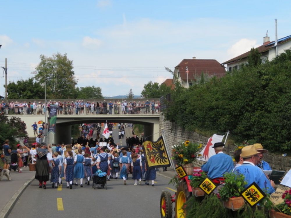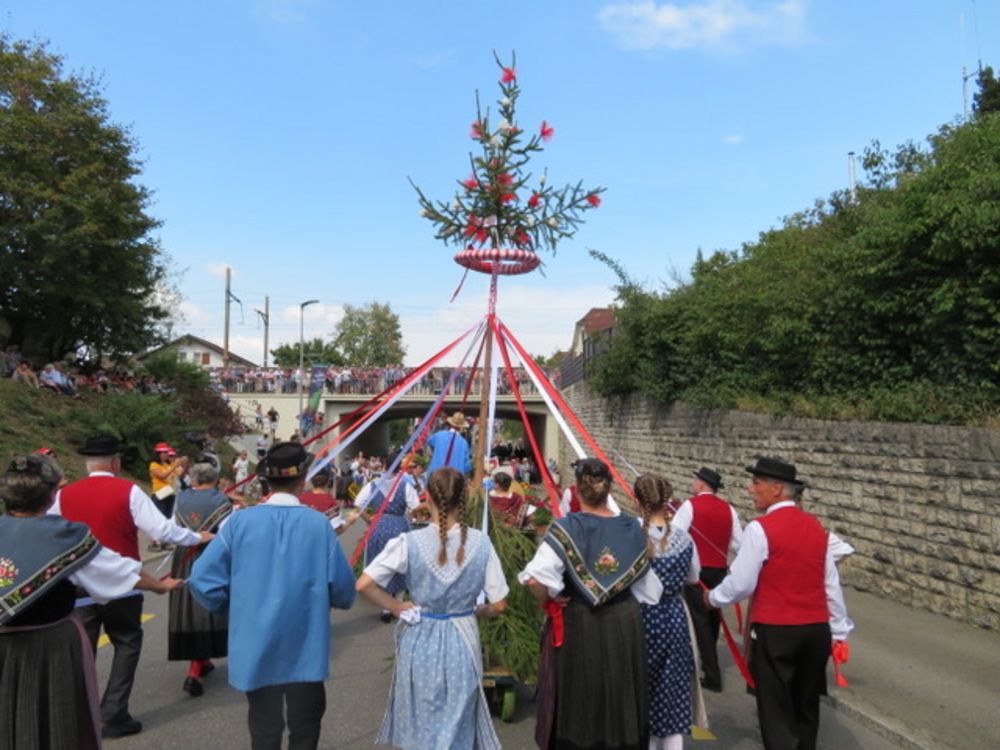 Am Freitag, 26. August, durften wir am Umzug des Eidgenössischen Schwing- und Älplerfestes, (ESAF) in Pratteln, den Maibaum, geschmückt mit roten und weissen Bändern begleiten.