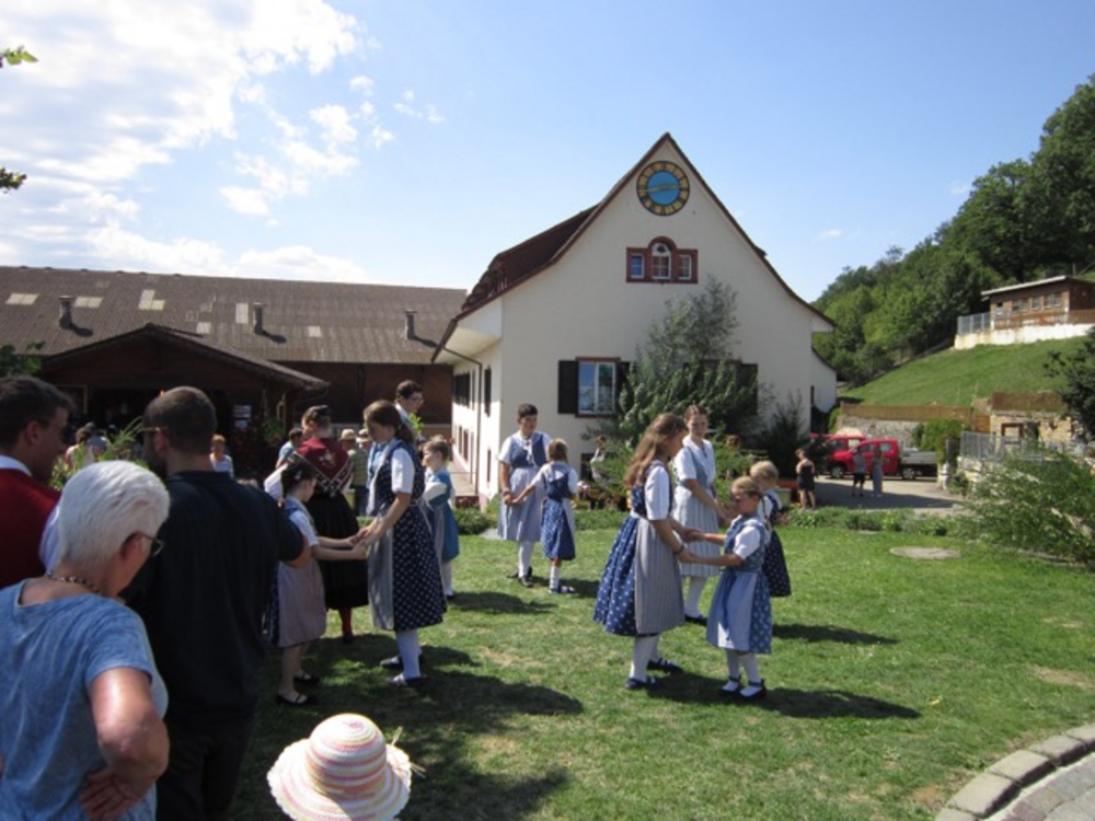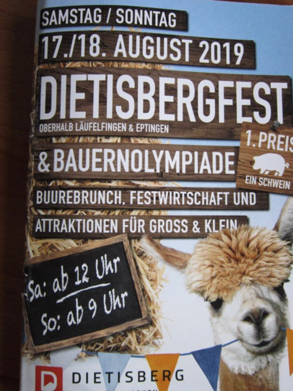 Am ersten Sonntag nach den Sommerferien, am 18. August trafen sich die Kinder- und die Erwachsenentanzgruppe um 13.45 Uhr auf dem Dietisberg ob Eptingen zum Tanzen am traditionellen DIETISBERGFEST. Einmal mehr war das Wetter super. Bei ca. 28° blies immer ein leichter Wind, so dass man die Wärme nicht so spürte. Zwischen 14.00 und 16.00 Uhr tanzten wir in abwechselnder Folge mit den Jungen an vier verschiedenen Orten. Dabei zeigten wir die Tänze: Im Oergelihus, Schilthorn, Galop Ursin, Kafischottisch, Pöschtlerschottisch, und La Talianina. Zum Abschluss am letzten Ort tanzten wir dann noch alle zusammen, Gross und Klein die Sternpolka. Schön war es. Wir freuen uns schon heute auf die Ausgabe im 2020 am nächsten DIETISBERGFEST.