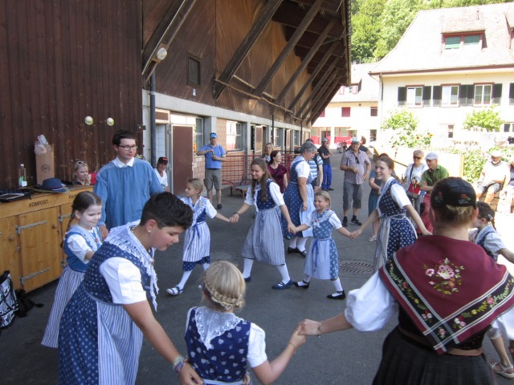 Die Tanzenden, gross und klein der Trachtengruppe Sissach und Umgebung tanzen am Dietisbergfest