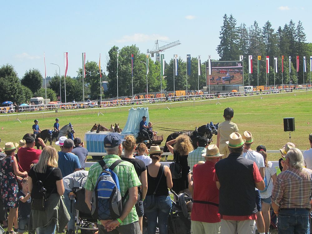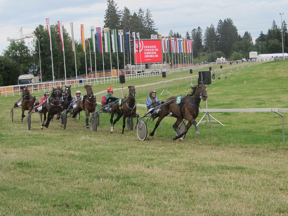 Natürlich gab es zwischen den Programmteilen die traditionellen Reit- und Fahrrennen der Freibergerrasse. Solche Rennen sind nicht nur ungefährlich und so gab es am Freitag Abend einen schweren Unfall bei den Freirennen ohne Sattel. Bei dem ein Pferd inmitten der Staffel stürzte und eine junge Reiterin mit der Ambulanz von der Rennstrecke geholt werden musste.