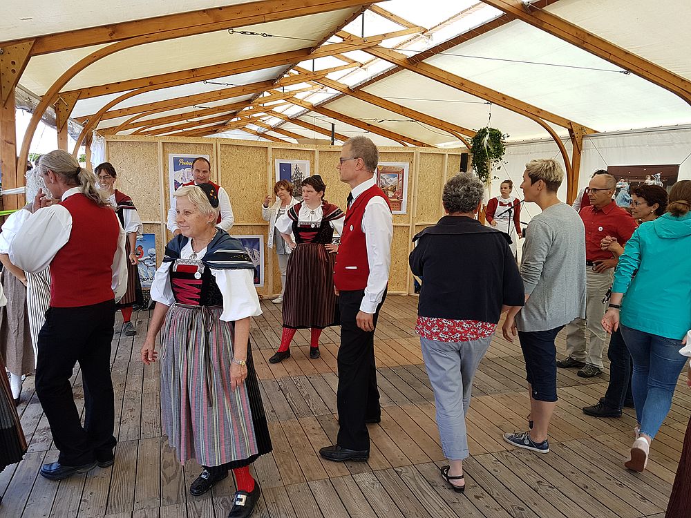 Parallel zum Programm wurden Darbietungen am Präsentationsstand der STV gezeigt. Da waren wir Tänzer mit dem Projekt “Tanzillus“ richtig gefordert. Die Idee, dass Passanten von uns zu einfachen Tanzschritten eingeladen werden und diese von dem Bazillus angesteckt werden. Eine nicht ganz einfache Angelegenheit. Zumindest für den Schreibenden mit viel Charme und etwas Glück jeden 9ten angefragten mit Erfolg und dieses wohlverstanden auf französisch. Wirklich unterstützend war da die professionelle Live Musik.