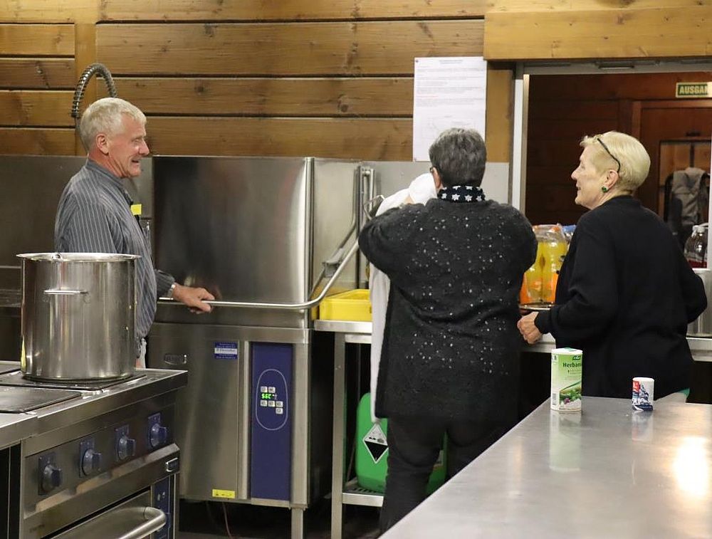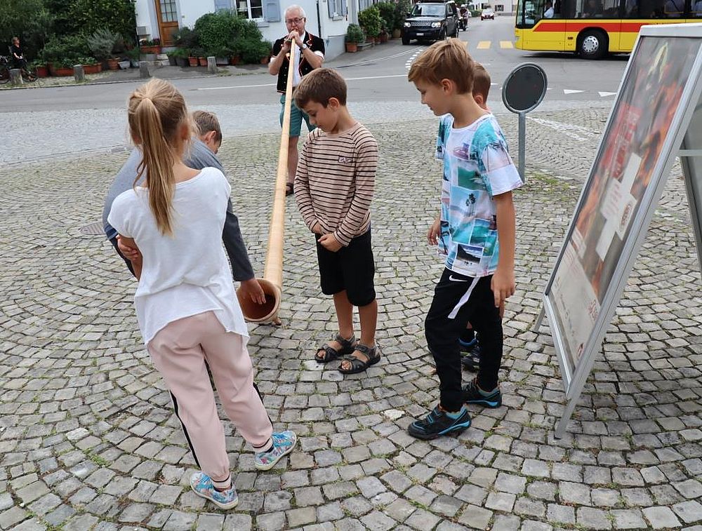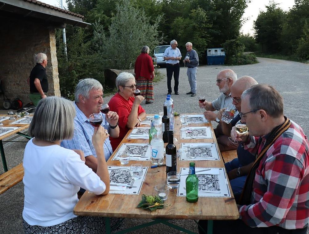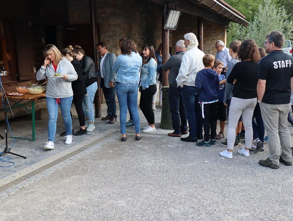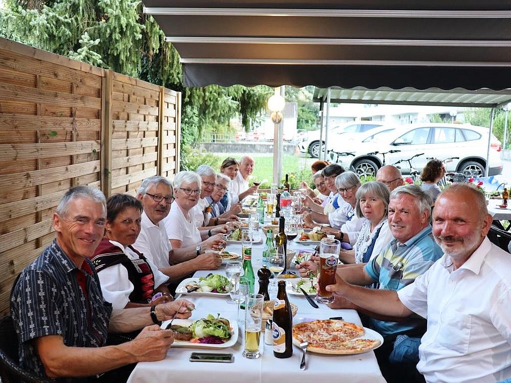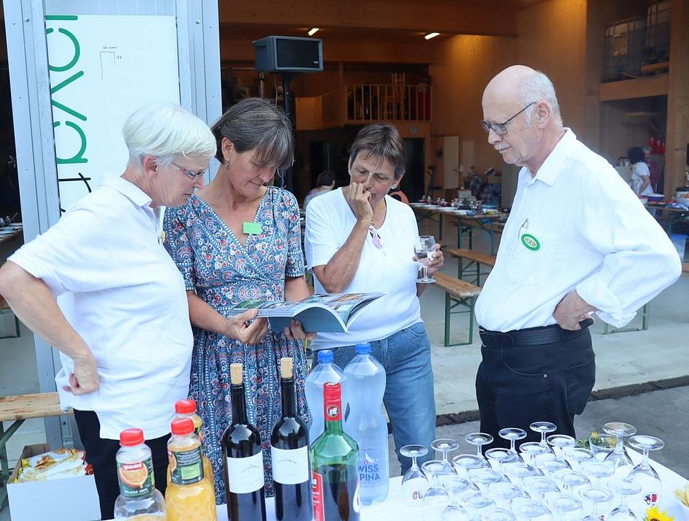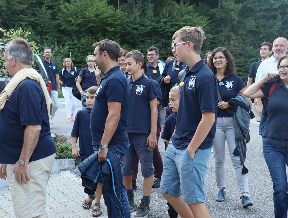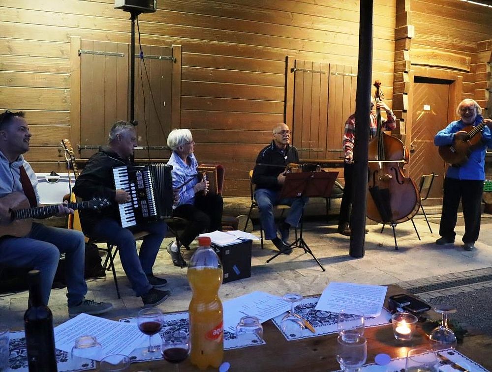 Nach dem Zimmerbezug gibt es auf dem Gemeindeplatz einen Willkommensapéro mit Alphornklängen von Köbi Dolder und Erläuterungen zum Dorf von Vreni Hungerbühler. Danach fährt die Gruppe, bestehend aus 37 Erwachsenen zwischen 17 und 67 Jahren und 9 Kindern zwischen 3 ½ und 14 ½ Jahren per Car auf den Sulzchopf. Zuerst geniessen viele von uns die schöne Aussicht übers Dorf, über die Stadt Basel, bis in den Schwarzwald und zum Elsass. Danach ist das Essen bereit, hungrig geniessen alle Salat, Risotto und zum Schluss ein Kuchenbuffet. Dazwischen wird gesungen, musiziert und getanzt. Karin hat dazu ein vielfältiges Programm zusammengestellt und führt durch die Lieder und mit Andrea abwechselnd durch die Tänze. Alle machen mit Begeisterung mit und wir verbringen alle zusammen einen gemütlichen Abend. Wir freuen uns alle daran, dass Sämi, der wieder mit seiner Gesundheit kämpft, einige Zeit mit uns verbringen kann und auch die Geschenke der Glasinger entgegennehmen kann. Nach 22 Uhr möchten unsere Gäste zurück ins Hotel, um am nächsten Tag ausgeruht zu sein. Ein Musikant spielt einige Takte „Muss i denn zum Städtele hinaus“ und wie in einer eingeübten Choreographie stehen unsere Gäste auf, jeder nimmt sein Geschirr und Tischset, bringt es in die Küche und macht sich auf den kurzen Weg zum Bus und wir, wir bleiben total “geflasht“ vor den leeren Tischen zurück. Nach einer kurzen Erholung machen wir uns ans Aufräumen und gehen gegen Mitternacht müde, aber sehr glücklich heim.