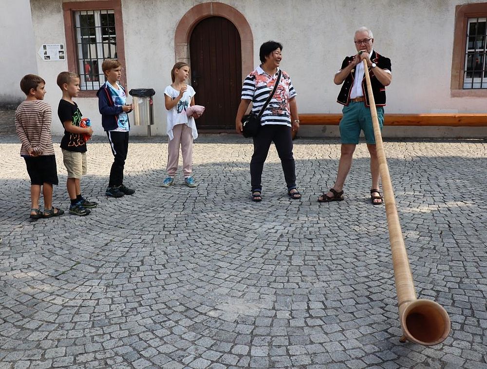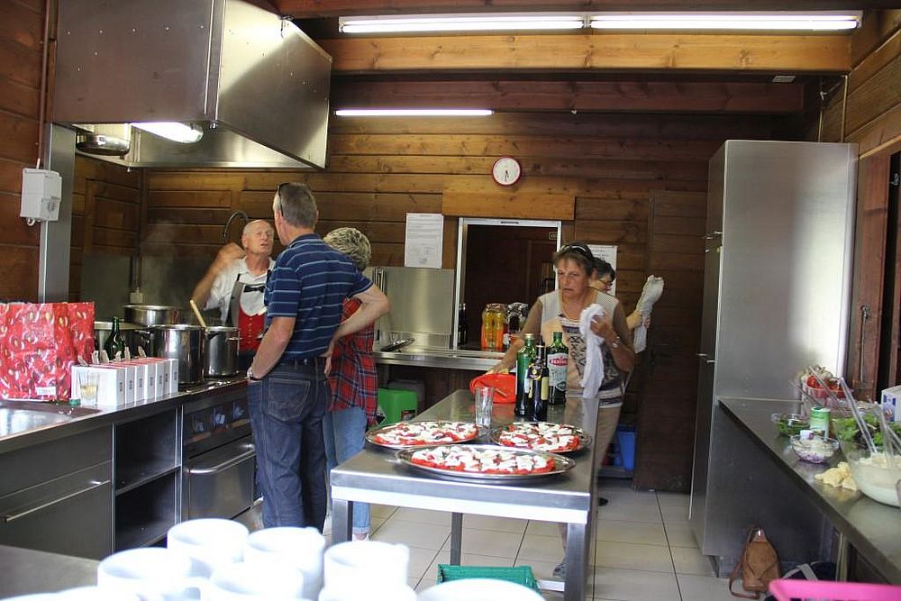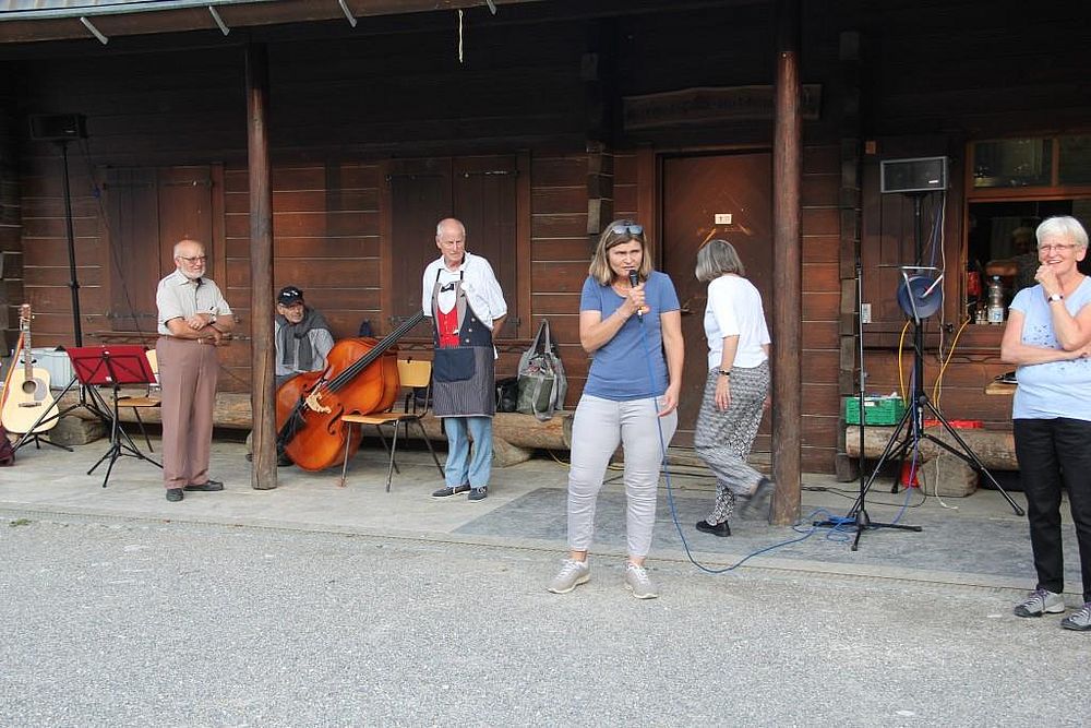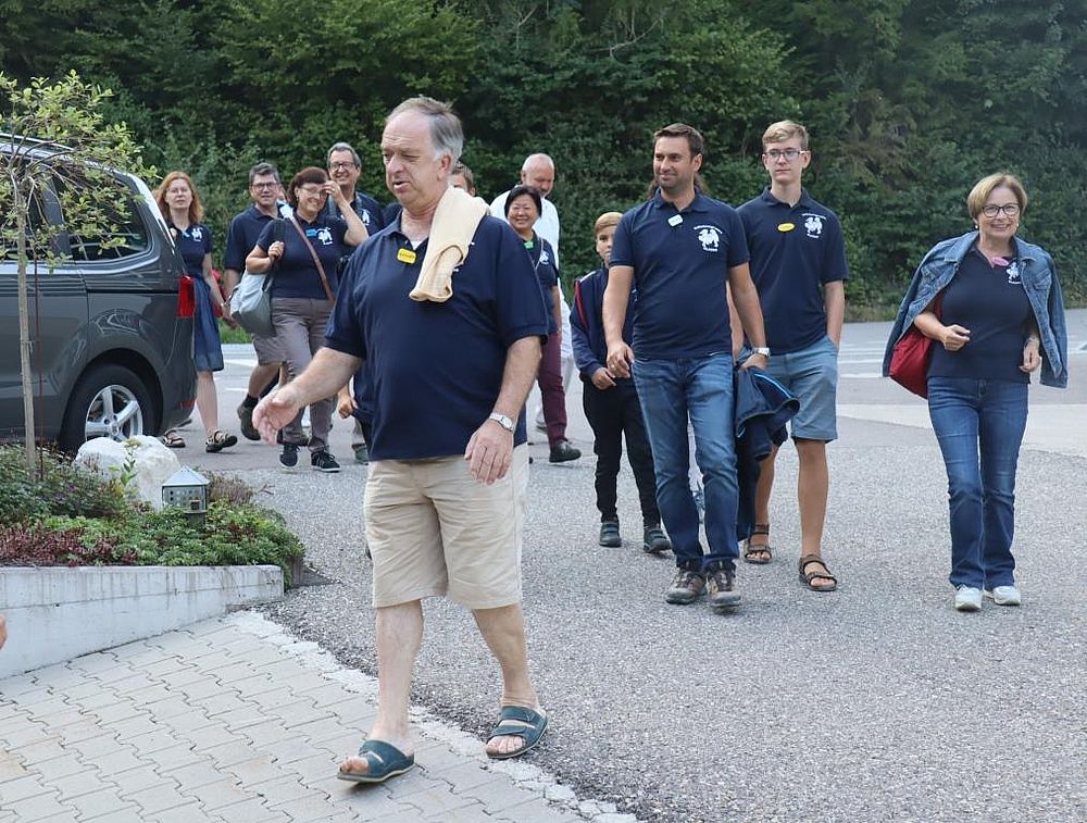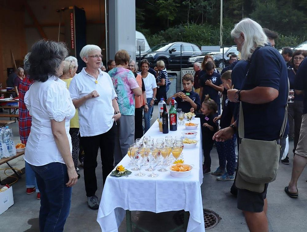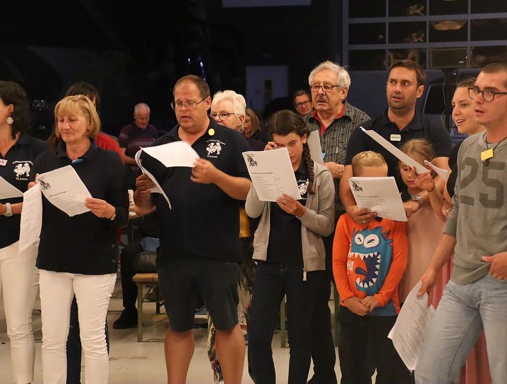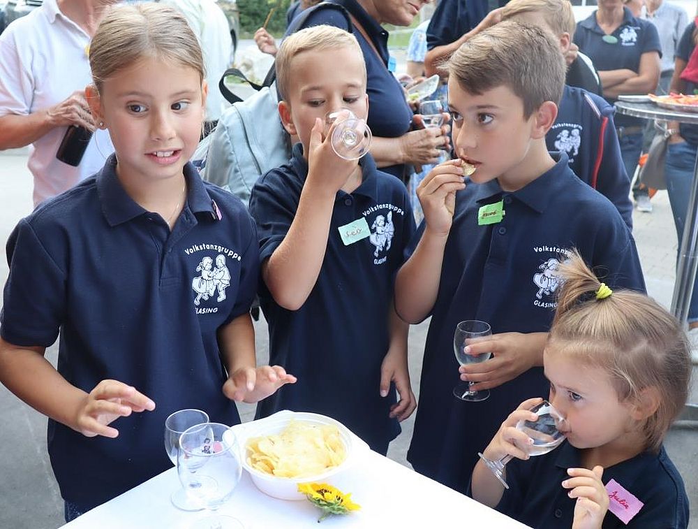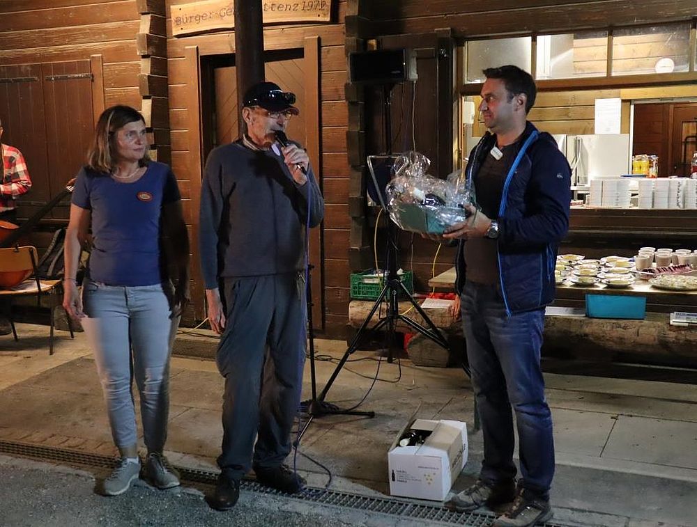 Nach dem Zimmerbezug gibt es auf dem Gemeindeplatz einen Willkommensapéro mit Alphornklängen von Köbi Dolder und Erläuterungen zum Dorf von Vreni Hungerbühler. Danach fährt die Gruppe, bestehend aus 37 Erwachsenen zwischen 17 und 67 Jahren und 9 Kindern zwischen 3 ½ und 14 ½ Jahren per Car auf den Sulzchopf. Zuerst geniessen viele von uns die schöne Aussicht übers Dorf, über die Stadt Basel, bis in den Schwarzwald und zum Elsass. Danach ist das Essen bereit, hungrig geniessen alle Salat, Risotto und zum Schluss ein Kuchenbuffet. Dazwischen wird gesungen, musiziert und getanzt. Karin hat dazu ein vielfältiges Programm zusammengestellt und führt durch die Lieder und mit Andrea abwechselnd durch die Tänze. Alle machen mit Begeisterung mit und wir verbringen alle zusammen einen gemütlichen Abend. Wir freuen uns alle daran, dass Sämi, der wieder mit seiner Gesundheit kämpft, einige Zeit mit uns verbringen kann und auch die Geschenke der Glasinger entgegennehmen kann. Nach 22 Uhr möchten unsere Gäste zurück ins Hotel, um am nächsten Tag ausgeruht zu sein. Ein Musikant spielt einige Takte „Muss i denn zum Städtele hinaus“ und wie in einer eingeübten Choreographie stehen unsere Gäste auf, jeder nimmt sein Geschirr und Tischset, bringt es in die Küche und macht sich auf den kurzen Weg zum Bus und wir, wir bleiben total “geflasht“ vor den leeren Tischen zurück. Nach einer kurzen Erholung machen wir uns ans Aufräumen und gehen gegen Mitternacht müde, aber sehr glücklich heim.