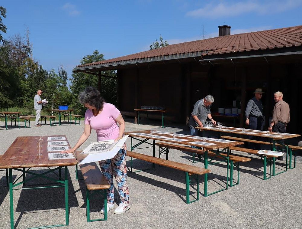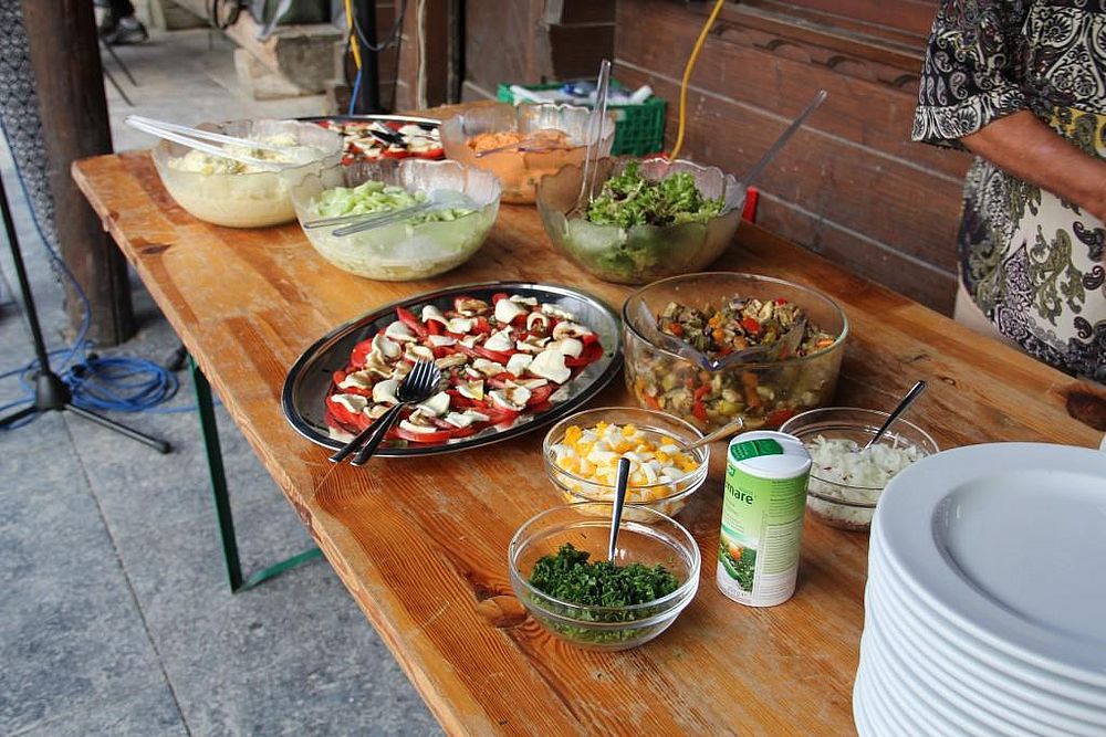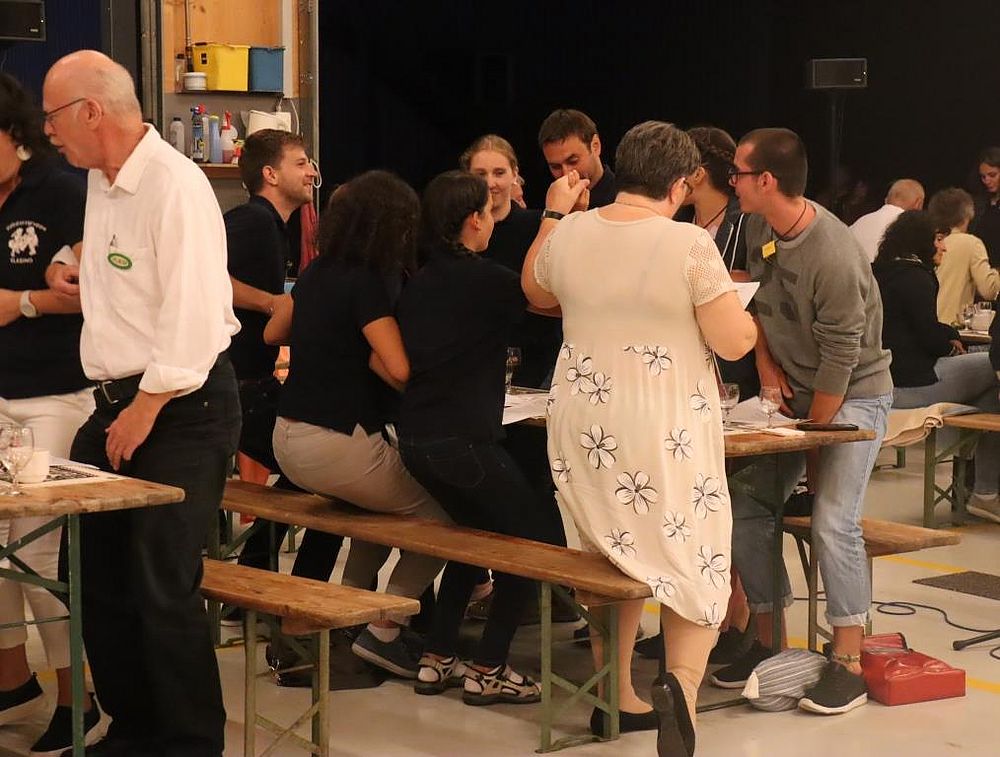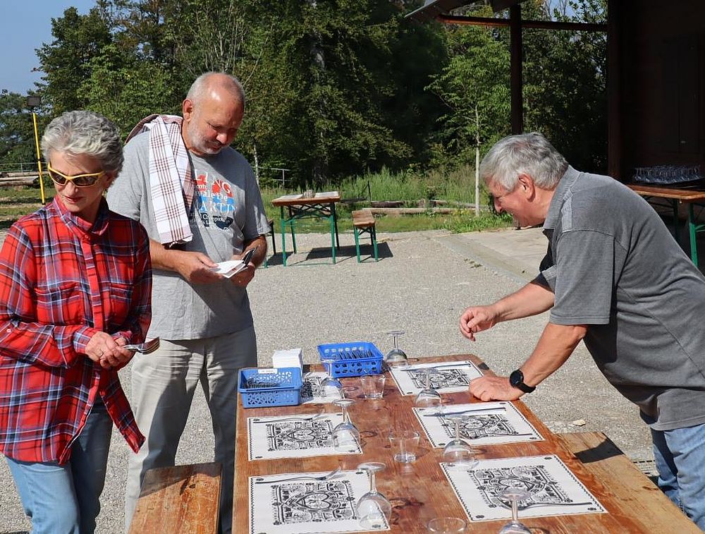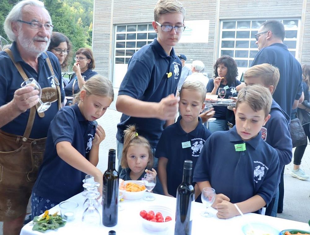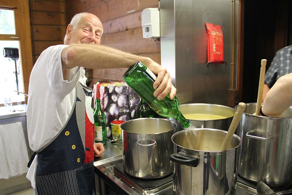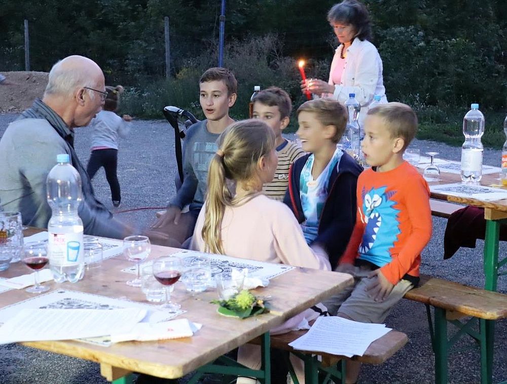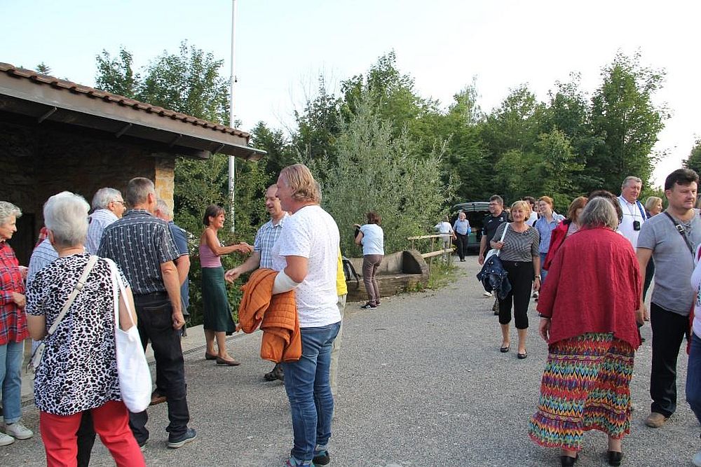 Nach dem Zimmerbezug gibt es auf dem Gemeindeplatz einen Willkommensapéro mit Alphornklängen von Köbi Dolder und Erläuterungen zum Dorf von Vreni Hungerbühler. Danach fährt die Gruppe, bestehend aus 37 Erwachsenen zwischen 17 und 67 Jahren und 9 Kindern zwischen 3 ½ und 14 ½ Jahren per Car auf den Sulzchopf. Zuerst geniessen viele von uns die schöne Aussicht übers Dorf, über die Stadt Basel, bis in den Schwarzwald und zum Elsass. Danach ist das Essen bereit, hungrig geniessen alle Salat, Risotto und zum Schluss ein Kuchenbuffet. Dazwischen wird gesungen, musiziert und getanzt. Karin hat dazu ein vielfältiges Programm zusammengestellt und führt durch die Lieder und mit Andrea abwechselnd durch die Tänze. Alle machen mit Begeisterung mit und wir verbringen alle zusammen einen gemütlichen Abend. Wir freuen uns alle daran, dass Sämi, der wieder mit seiner Gesundheit kämpft, einige Zeit mit uns verbringen kann und auch die Geschenke der Glasinger entgegennehmen kann. Nach 22 Uhr möchten unsere Gäste zurück ins Hotel, um am nächsten Tag ausgeruht zu sein. Ein Musikant spielt einige Takte „Muss i denn zum Städtele hinaus“ und wie in einer eingeübten Choreographie stehen unsere Gäste auf, jeder nimmt sein Geschirr und Tischset, bringt es in die Küche und macht sich auf den kurzen Weg zum Bus und wir, wir bleiben total “geflasht“ vor den leeren Tischen zurück. Nach einer kurzen Erholung machen wir uns ans Aufräumen und gehen gegen Mitternacht müde, aber sehr glücklich heim.