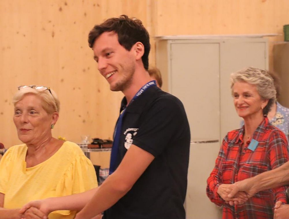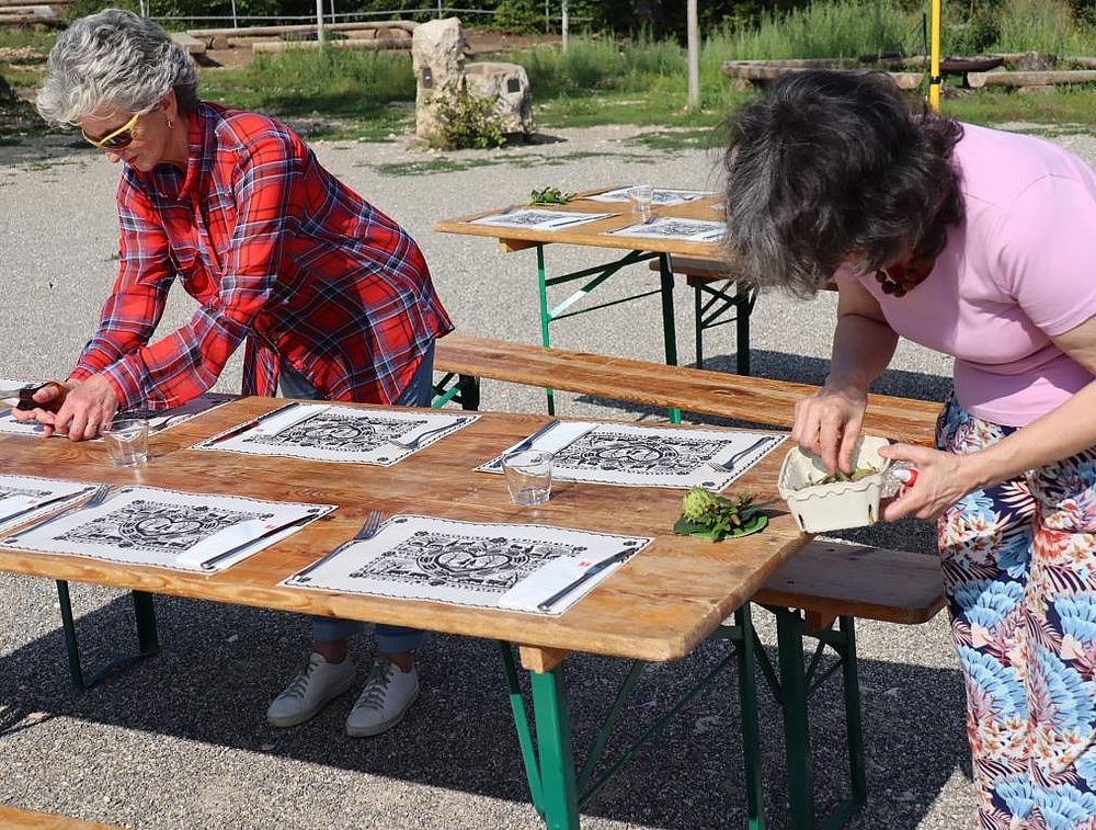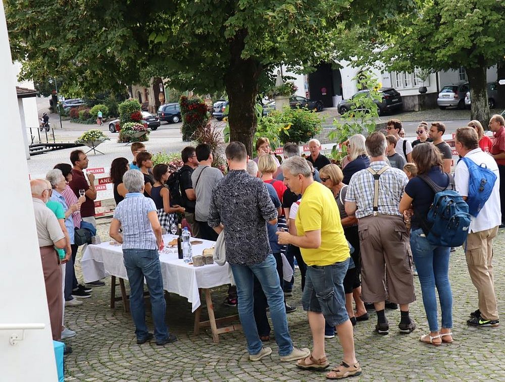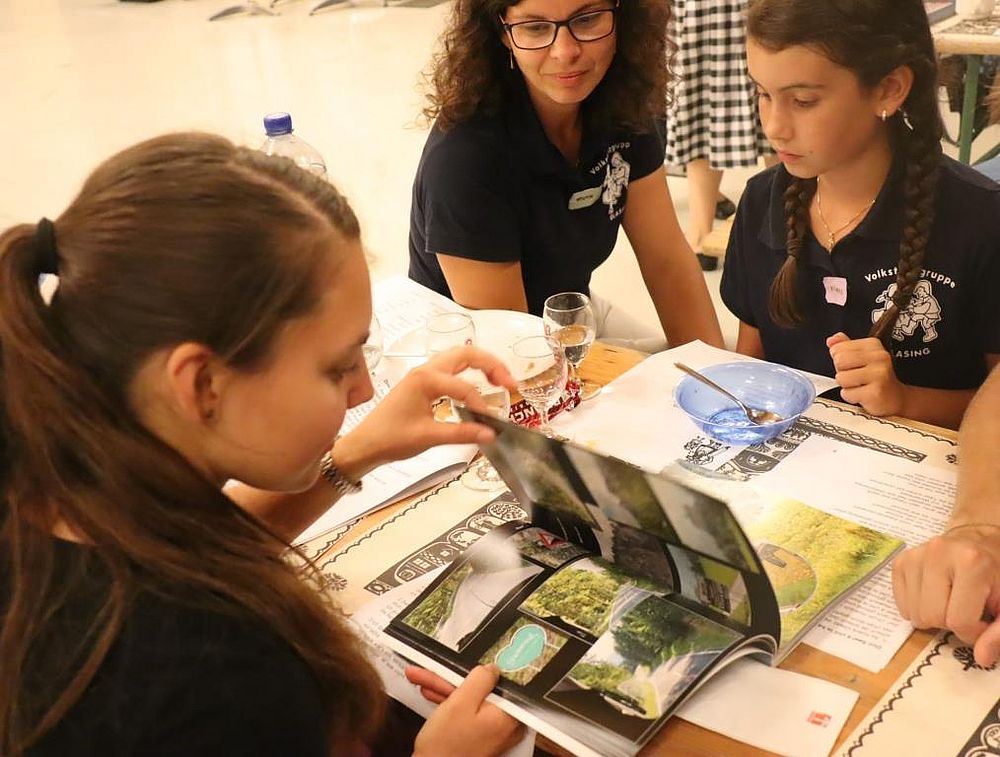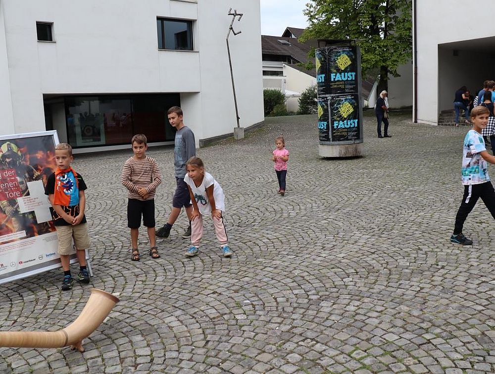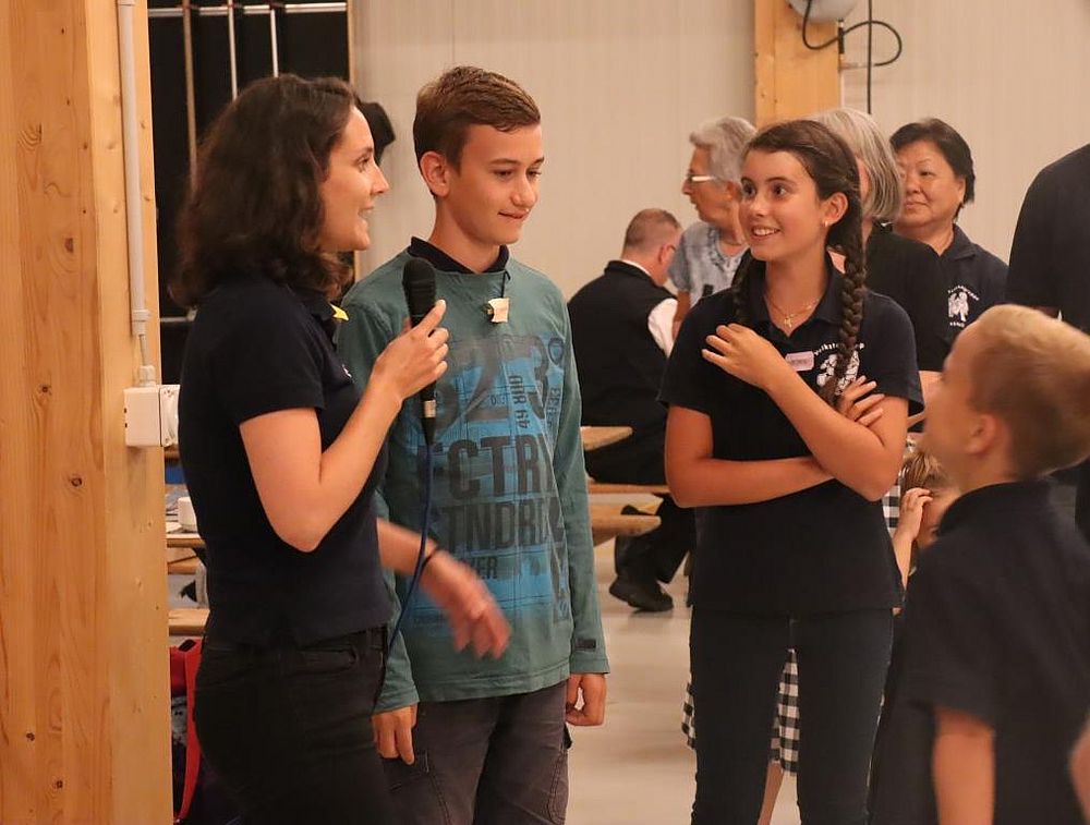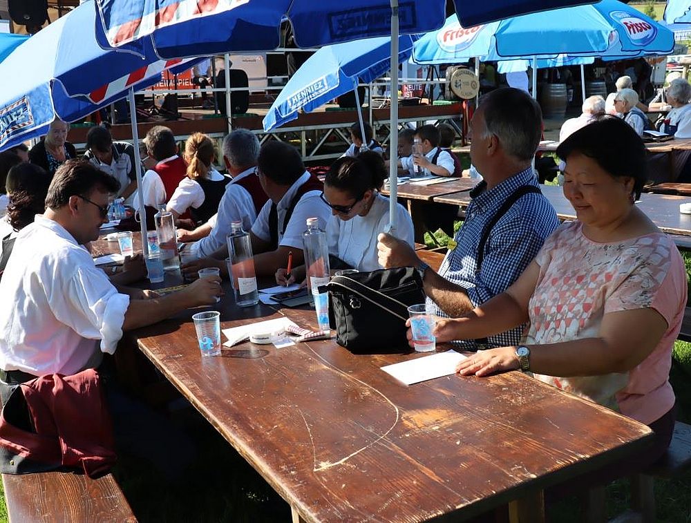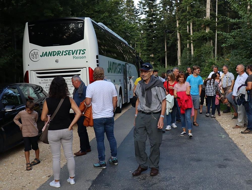 Nach dem Zimmerbezug gibt es auf dem Gemeindeplatz einen Willkommensapéro mit Alphornklängen von Köbi Dolder und Erläuterungen zum Dorf von Vreni Hungerbühler. Danach fährt die Gruppe, bestehend aus 37 Erwachsenen zwischen 17 und 67 Jahren und 9 Kindern zwischen 3 ½ und 14 ½ Jahren per Car auf den Sulzchopf. Zuerst geniessen viele von uns die schöne Aussicht übers Dorf, über die Stadt Basel, bis in den Schwarzwald und zum Elsass. Danach ist das Essen bereit, hungrig geniessen alle Salat, Risotto und zum Schluss ein Kuchenbuffet. Dazwischen wird gesungen, musiziert und getanzt. Karin hat dazu ein vielfältiges Programm zusammengestellt und führt durch die Lieder und mit Andrea abwechselnd durch die Tänze. Alle machen mit Begeisterung mit und wir verbringen alle zusammen einen gemütlichen Abend. Wir freuen uns alle daran, dass Sämi, der wieder mit seiner Gesundheit kämpft, einige Zeit mit uns verbringen kann und auch die Geschenke der Glasinger entgegennehmen kann. Nach 22 Uhr möchten unsere Gäste zurück ins Hotel, um am nächsten Tag ausgeruht zu sein. Ein Musikant spielt einige Takte „Muss i denn zum Städtele hinaus“ und wie in einer eingeübten Choreographie stehen unsere Gäste auf, jeder nimmt sein Geschirr und Tischset, bringt es in die Küche und macht sich auf den kurzen Weg zum Bus und wir, wir bleiben total “geflasht“ vor den leeren Tischen zurück. Nach einer kurzen Erholung machen wir uns ans Aufräumen und gehen gegen Mitternacht müde, aber sehr glücklich heim.