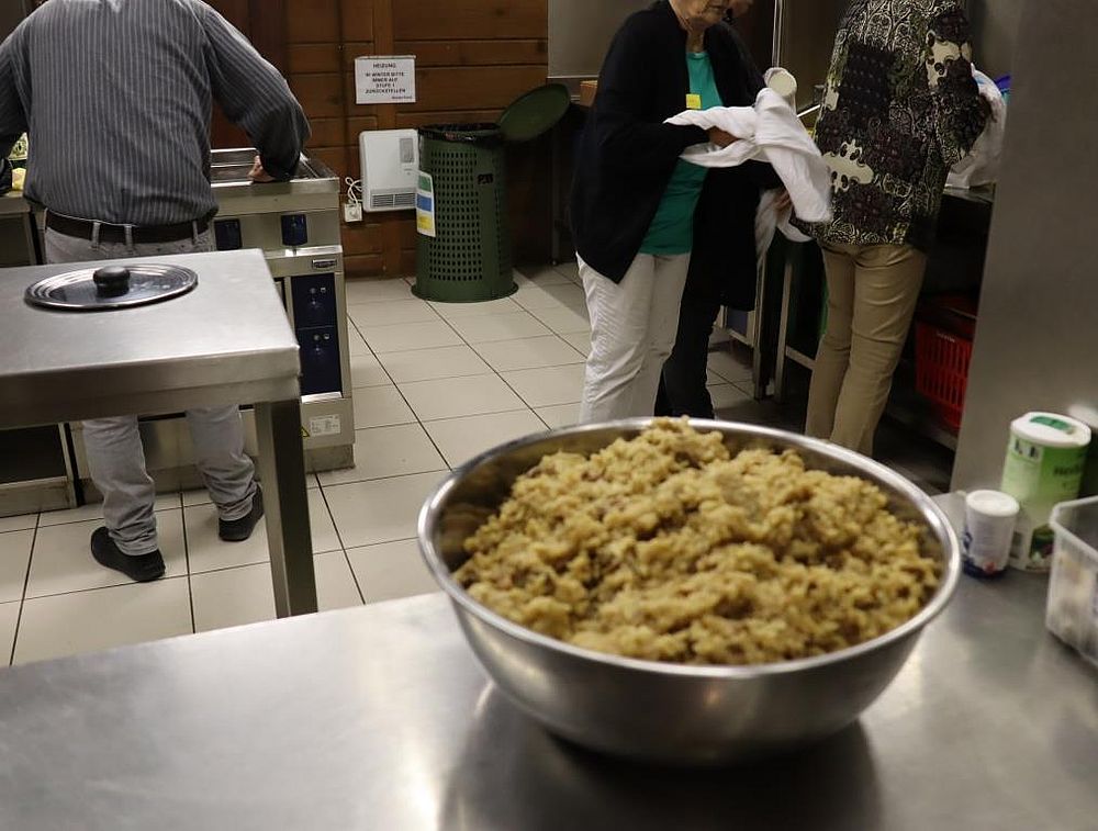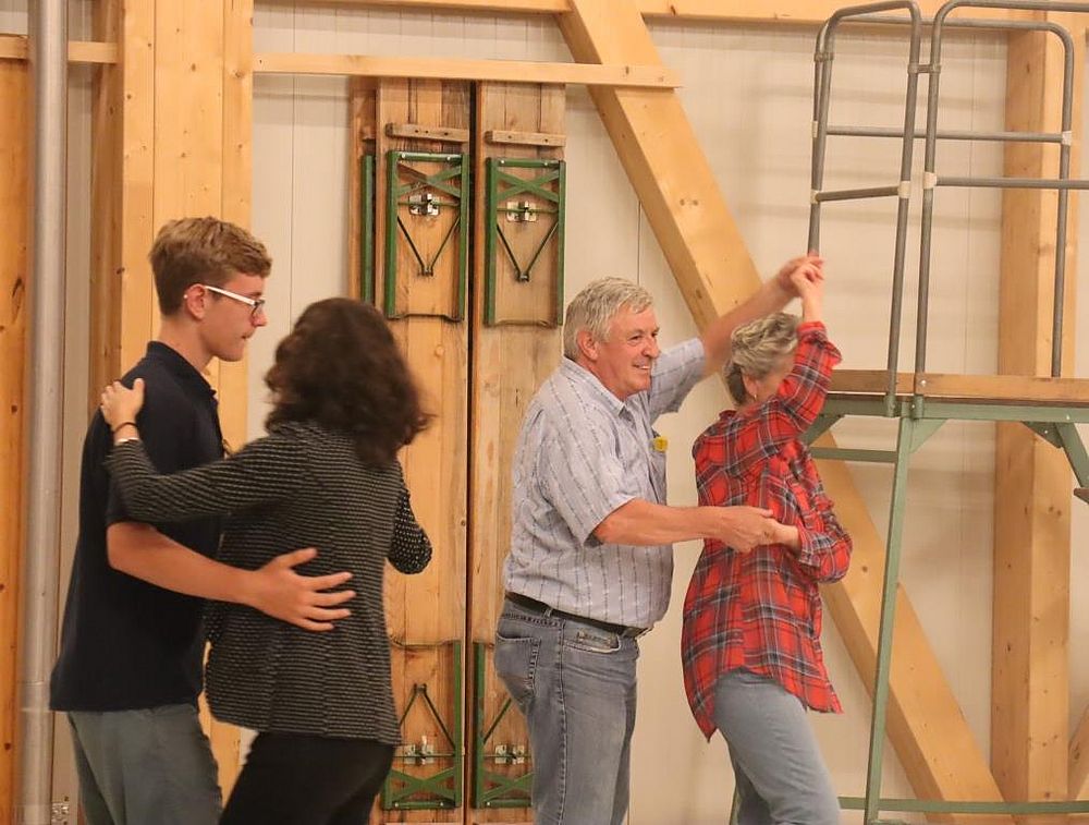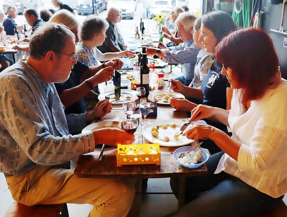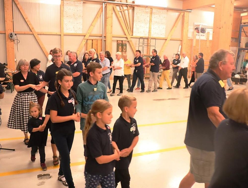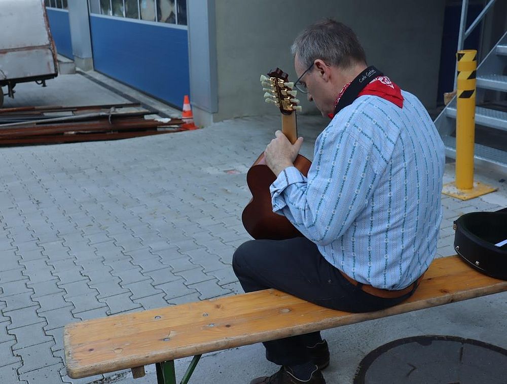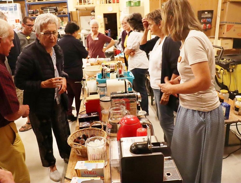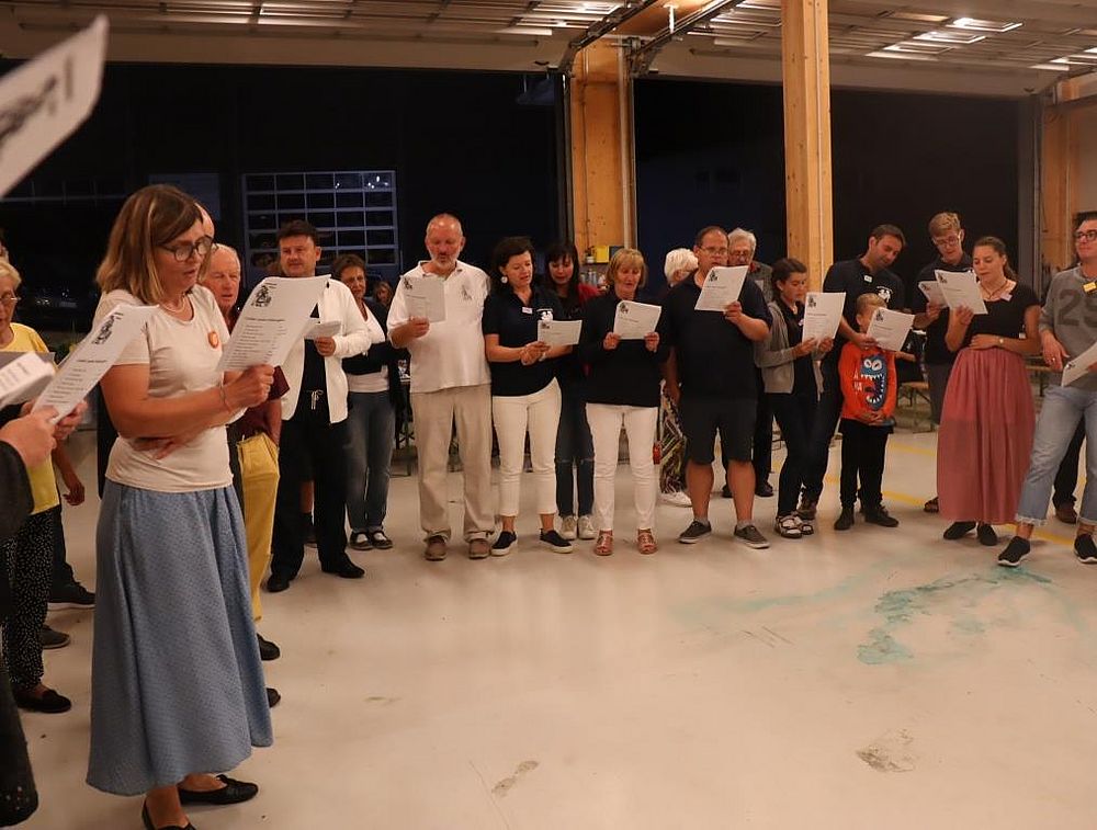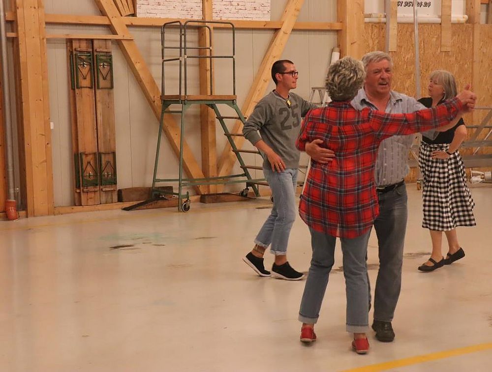 Um 17.30 Uhr steigt die Gruppe wieder in den Car und begleitet von Sämi geht die Fahrt via Rheinfelden, Magden, Gelterkinden nach Rümlingen zur Einstellhalle der ANK. Freundlicherweise wird uns die leere Halle von der ANK für diesen Abend zur Verfügung gestellt. Fleissige Hände stellen wiederum Tische auf, decken sie ein, schnipseln Gemüse für den Apéro und Früchte für den Fruchtsalat, kochen Kartoffeln, schneiden Käse und noch vieles mehr. Beim Eintreffen des Cars ist auf alle Fälle alles bereit und es kann losgehen mit dem Apéro und nachher mit einem feinen Raclette. Als alle satt sind machen sich die Musikanten der “Glasinger“ und die Ländlerkapelle Wartebärg bereit zum Musizieren und auch Elisabeth mit dem Örgeli ist mit von der Partie. Wie schon am Vorabend spielen wenn immer möglich alle Musikanten und Musikantinnen zusammen, es macht Freude, zu diesen Klängen zu tanzen. Es bleibt kaum Zeit fürs Dessert und schon machen sich unsere Freunde wieder auf den Weg nach Muttenz, von diesem ereignisreichen Tag sind alle müde und freuen sich auf ein Bett – wir auch, nachdem alles wieder aufgeräumt, das ganze Material in die Autos verteilt ist und wir zurück ins Unterbaselbiet fahren können.