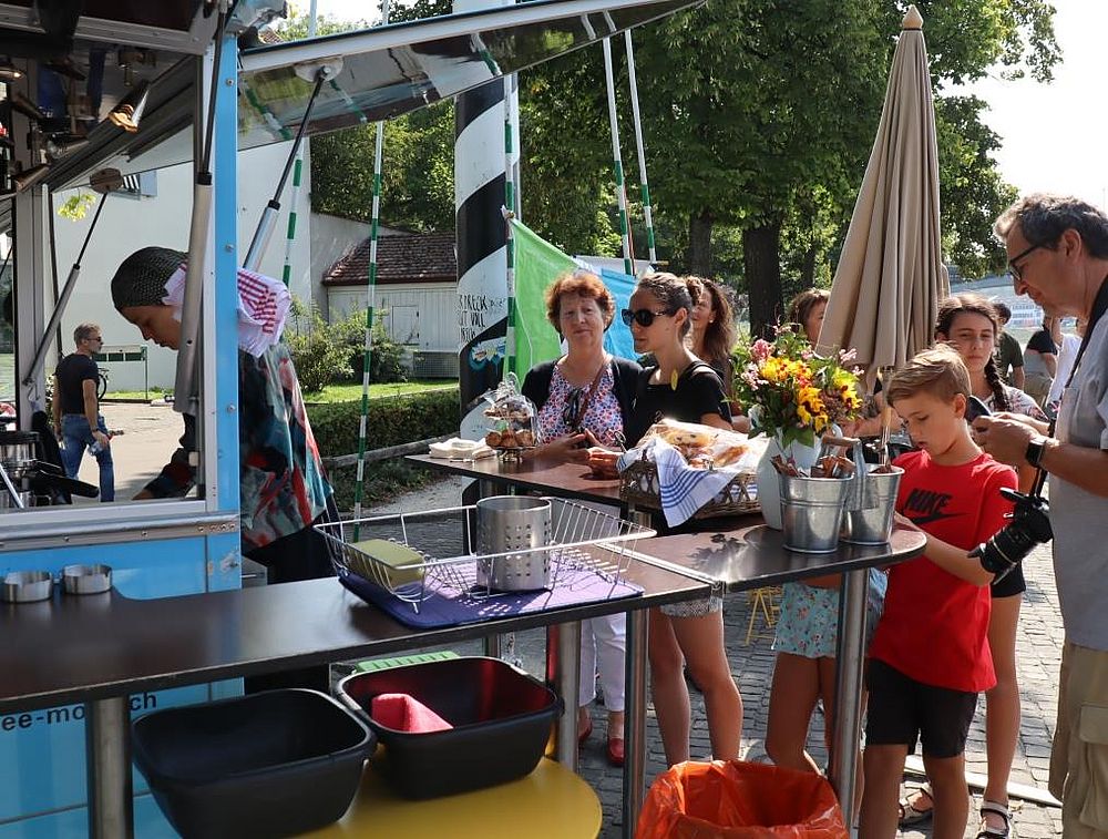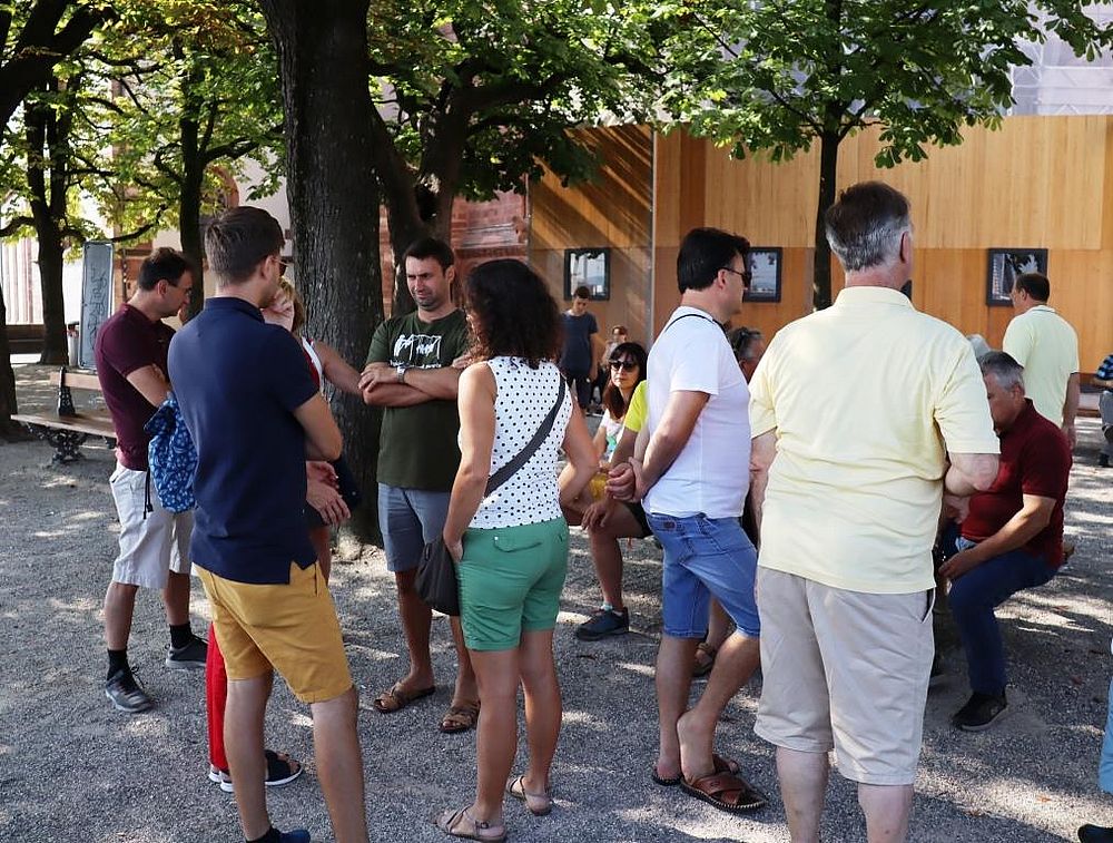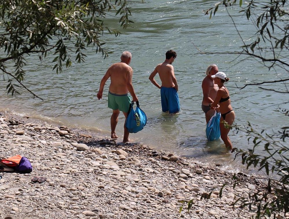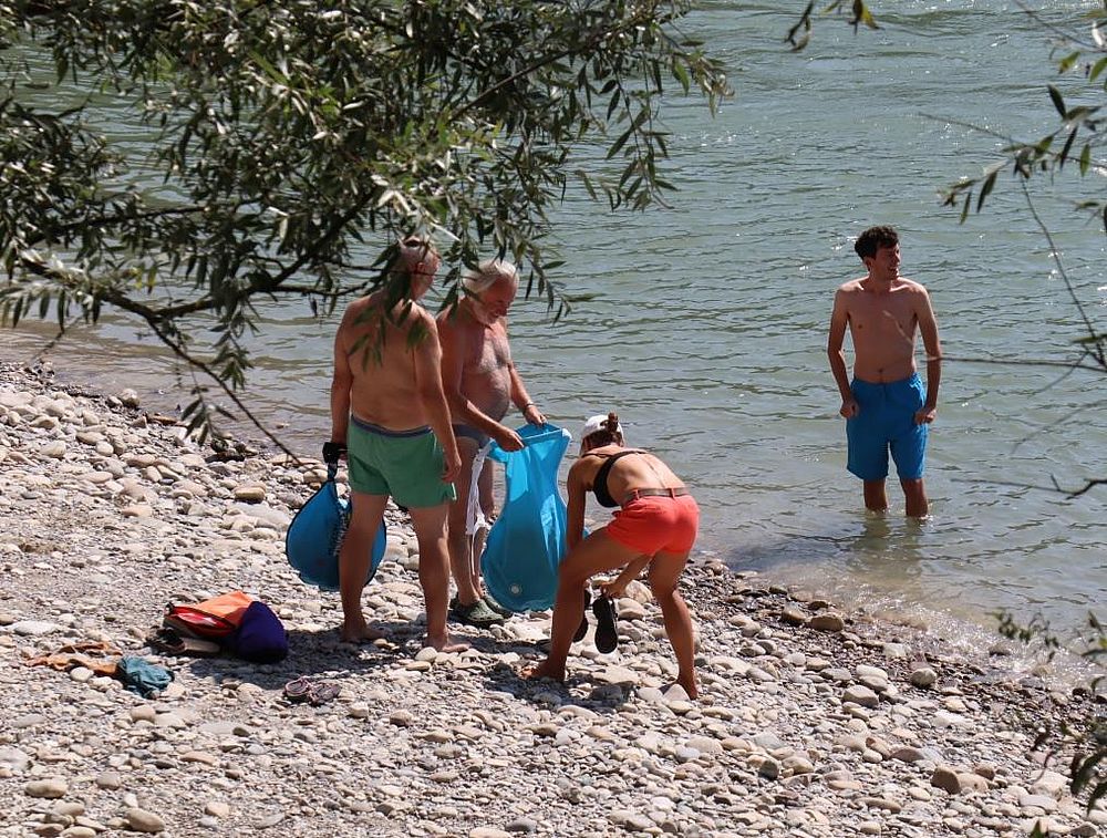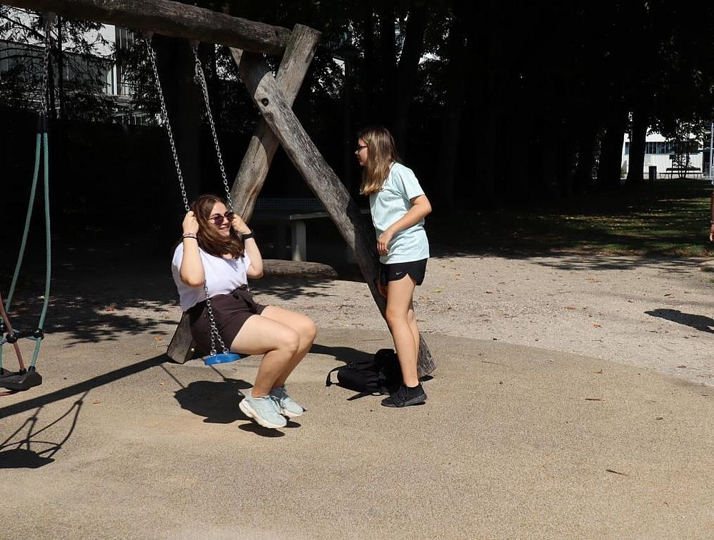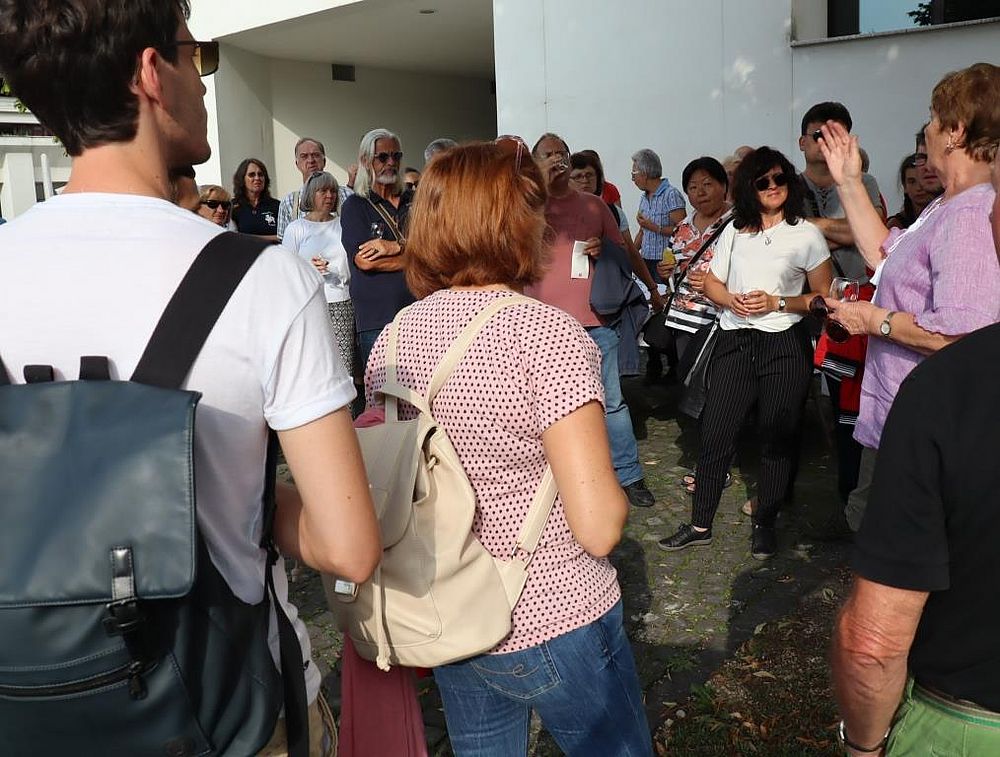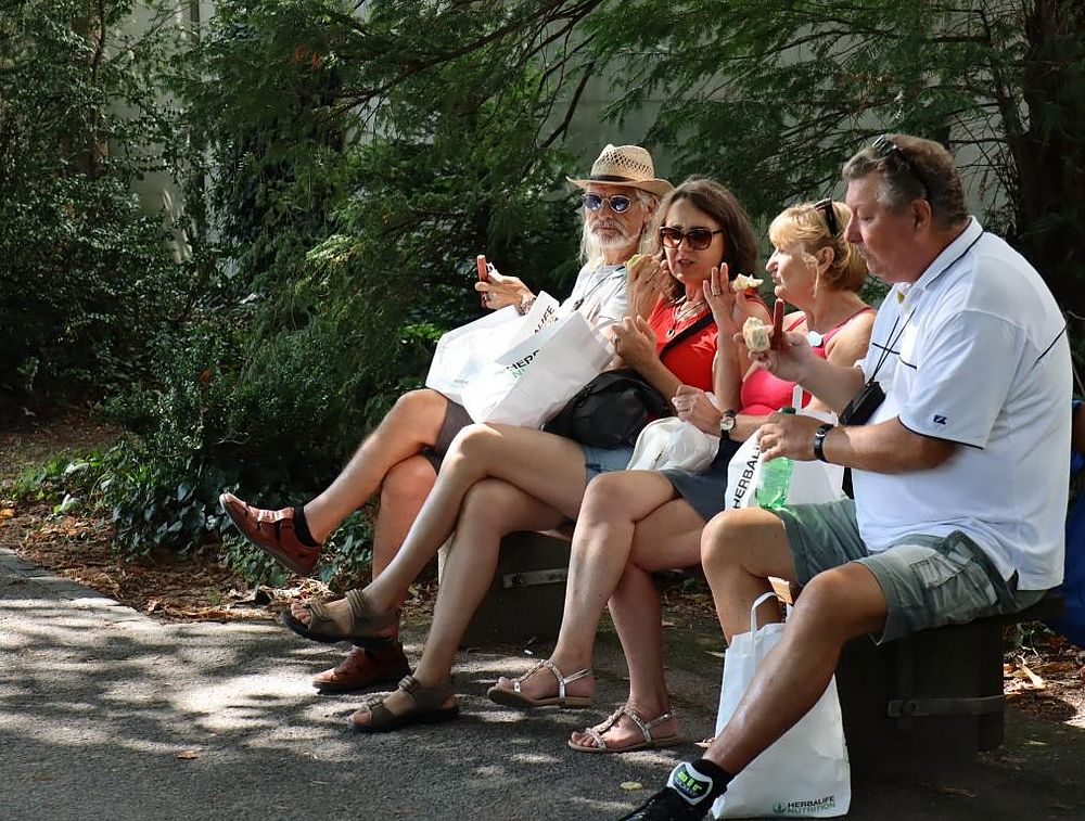 Am Samstag fahren unsere Gäste unter kundiger Reiseleitung von Margrit, Susi I. und Andrea nach Basel zum Sightseeing. Vom Marktplatz geht es zum Münsterplatz, zur Pfalz, runter zum Rhein, mit der Münsterfähre ins Kleinbasel und dort zum Solitude Park. Unterwegs entscheiden sich einige Mutige, bei dem schönen und warmen Wetter ein Bad im Rhein zu nehmen. Da erweist sich Werner, der zwischenzeitlich zur Gruppe gestossen ist, als kundiger Begleiter. Im Park wartet bereits Irene mit dem Pick Nick, bestehend aus Landjäger, Käse, Farmerstengel, Früchten von Hans, Brot und natürliche einer Flasche Wasser. Danach geht es als Höhepunkt in die Höhe, nämlich auf den Roche-Turm. Zwischenzeitlich hütet Andrea die Jüngste, die sich im Sandkasten vergnügt. Wieder zurück in Muttenz bleibt noch etwas Zeit, um sich mit Käse und Schokolade als Mitbringsel einzudecken.