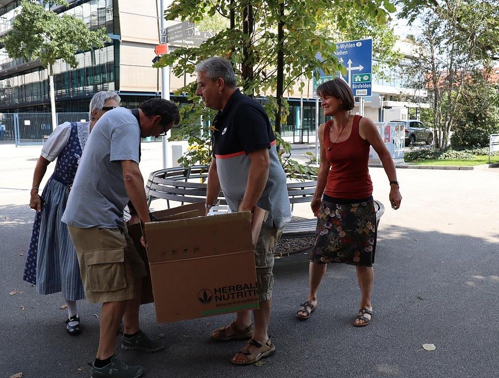 Es geht los: Am Dienstag 20. August erhalte ich eine Mitteilung mit Foto von unseren reisefreudigen Freunden. Sie befinden sich auf dem Weg nach Italien, wo sie Verona, Mailand und die Gegend um den Lago Maggiore besuchen, bevor sie am Freitagnachmittag in Muttenz eintreffen werden. Hier laufen indes die Vorbereitungen auf Hochtouren; mein Hausgang sieht zwischenzeitlich aus wie das Basislager vor einer Expedition. Da stapeln sich Kisten mit Geschirr, Kisten mit Wein und Wasser und nochmals Andere mit Raclette-Öfeli und der Kühlschrank füllt sich mit Zutaten für Lunchpakete.