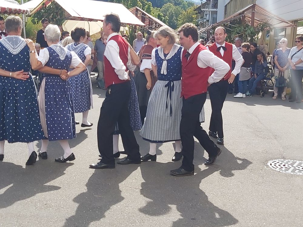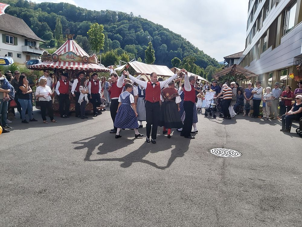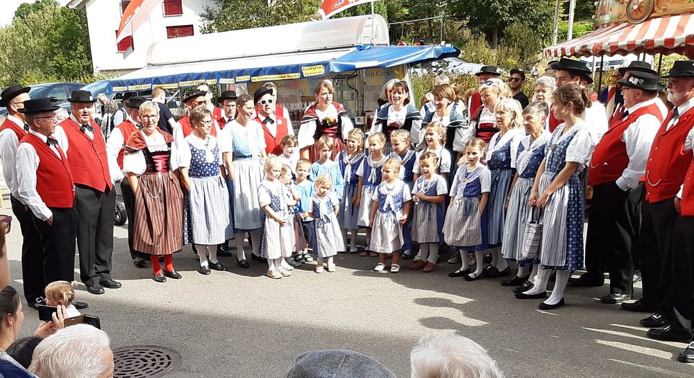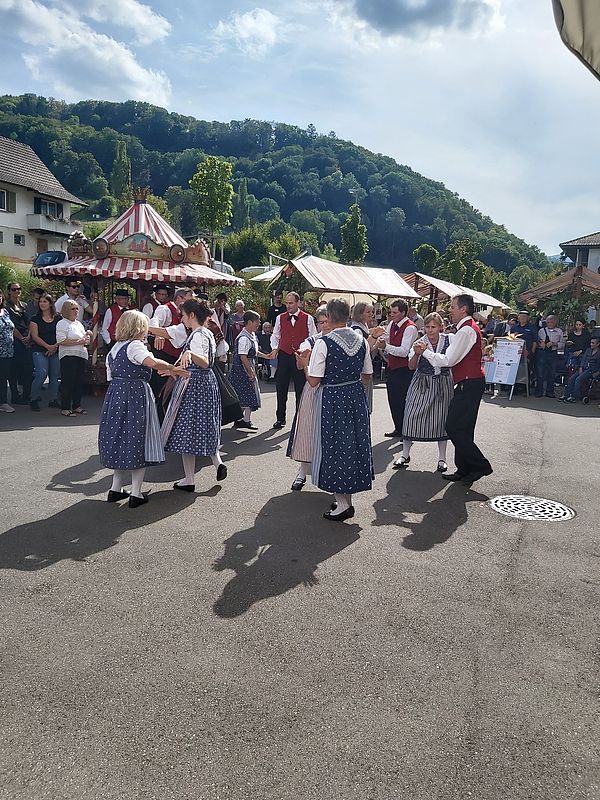 Heute besuchten wir von der Trachtengruppe Waldenburgertal, wie alle Jahre, den Herbstmarkt im Gritt. Die Sonne schien und die Temperaturen waren sommerlich warm. Gemeinsam mit der Kindertanzgruppe und dem Jodlerklub Spitzeflüeli Waldenburg kam ein abwechslungsreiches Programm zustande. Besonders schön war der gemeinsame Auftritt vom Jodlerklub und der Kindertanzgruppe, die gemeinsam ein Lied sangen.