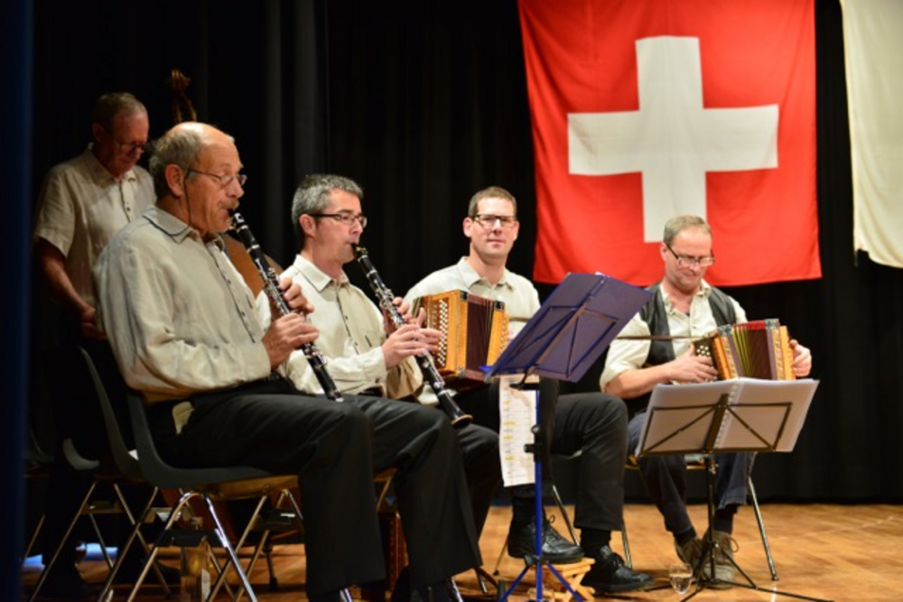 QR-Code einscannen, voten. Die Besucher konnten vier Lieder wählen die der Trachtenchor singen sollte. Das „nöimöödige Züg“ gab viel zu diskutieren. „Däheim“ von Franz Stadelmann schaffte es in die Kehlen der Sänger-/innen. Mit 50,7 % zu 49,3 % für das Lied „Blieb nid stoh“. Bei der letzten Wahl gewann das Lied „Herbscht“, „Weisch es no“ hörte das Publikum als Zugabe. Chorleiter Thomas Herrmann hatte alles im Griff.
