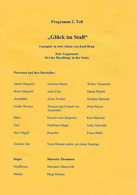 Bereits an der Hauptprobe vom Freitagabend konnte festgestellt werden, dass alle bei der Sache waren und selbst die Theaterleute, nach einer fehlerfreien Probe, noch zu christlicher Zeit ins Bett kamen.