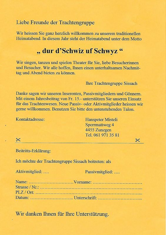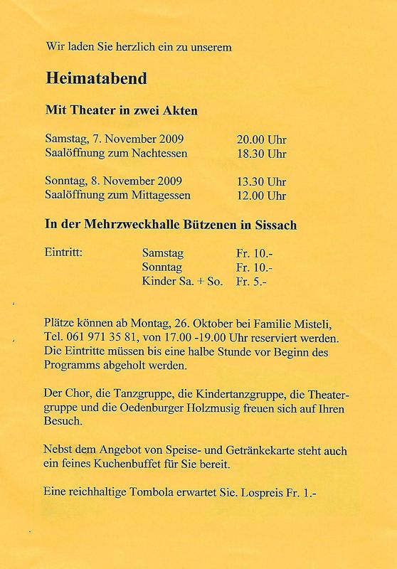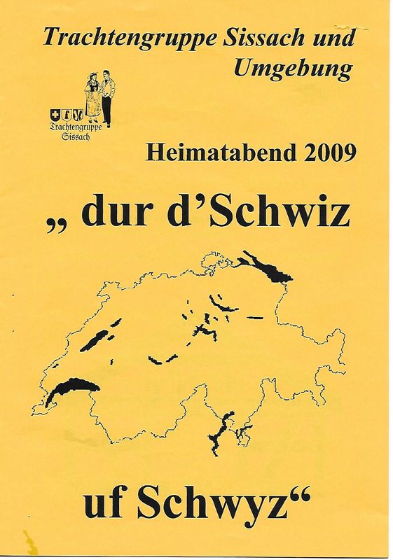 Am Wochenende vom 7. + 8. November 2009 konnten wir einmal mehr unseren Heimatabend, oder wie im Vorspann zum Anlass in der Volksstimme zu lesen war, den "Kultanlass Heimatabend" abhalten. Unter dem Motto "dur d'Schwiz uf Schwyz" zauberten unsere Leiterinnen wieder ein unterhaltsames Programm auf die Bühne.