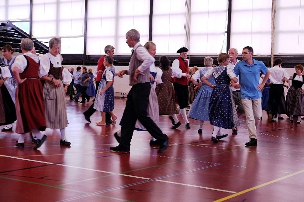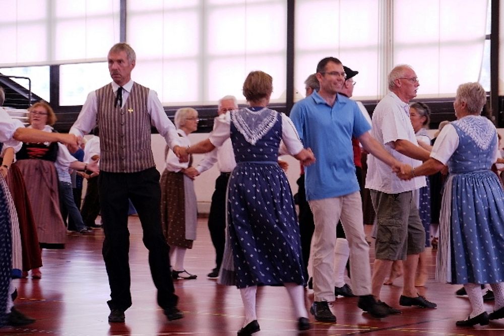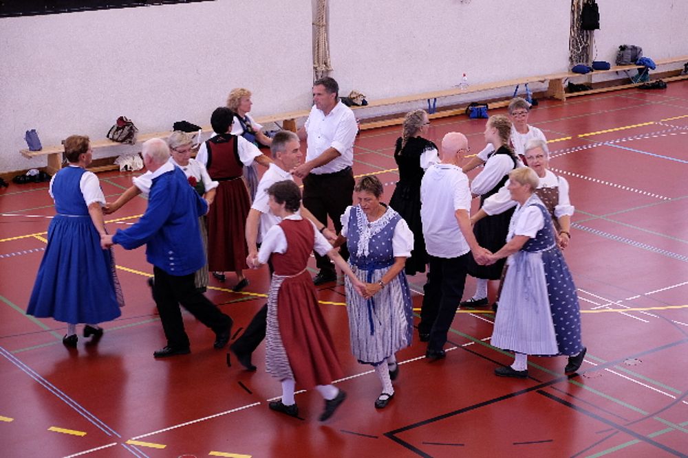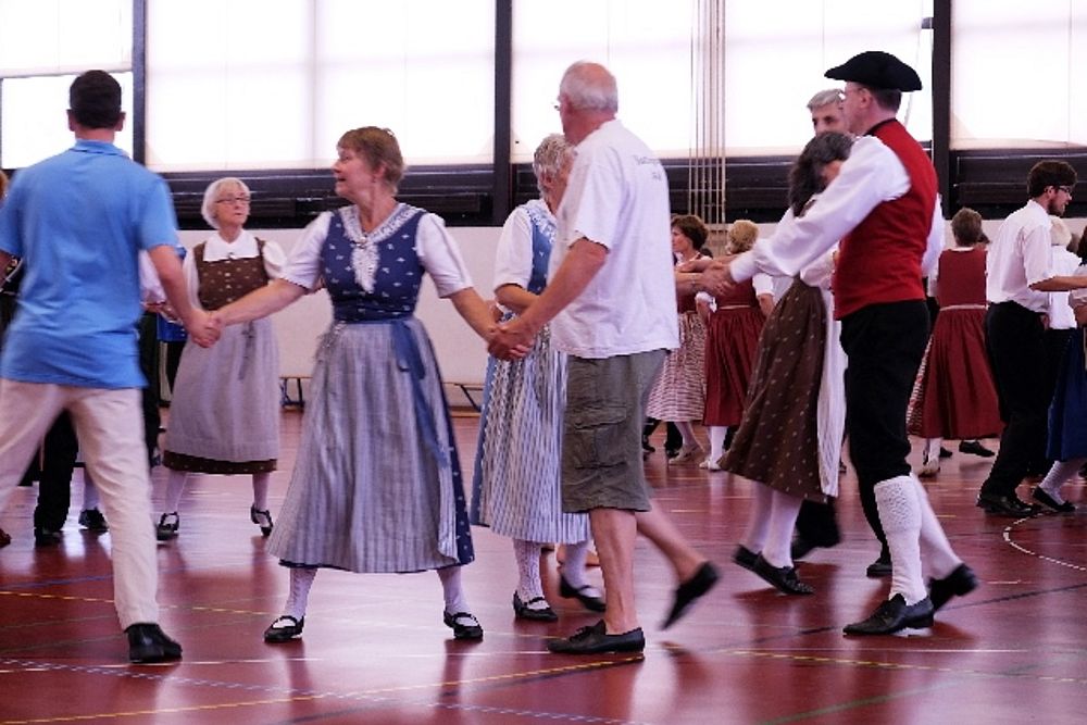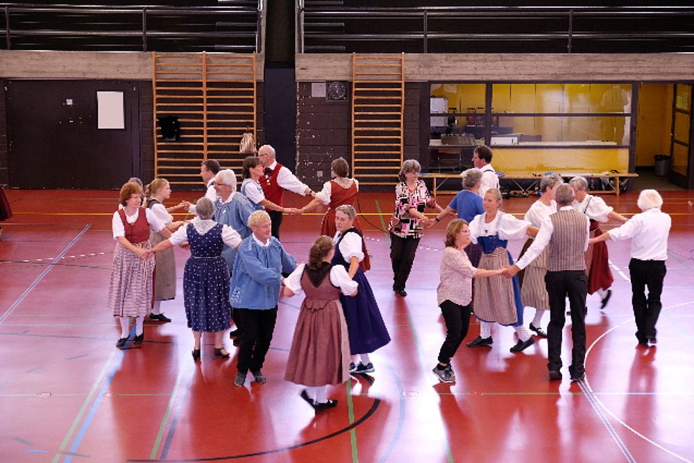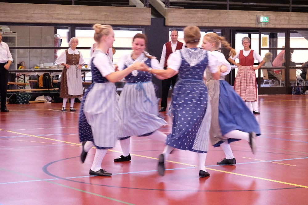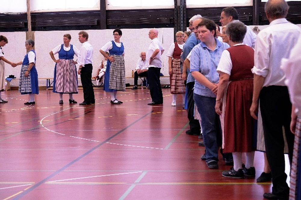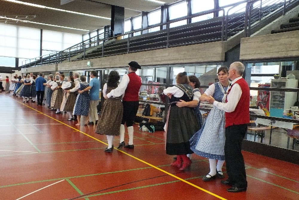 Mit dem Hirschegräbler (Schottisch) begann der Tanzsonntag und nach der Schüpfener Mazurka wartete das Mittagessen, das die Trachtengruppe Liestal bestens organisiert hatten. Präsidentin Sabina Schneider und ihre Helferinnen hatten alle Hände voll zu tun. Nun war Zeit für einen Schwatz, denn die meisten kannten sich von verschiedenen Tanzanlässen. Bis weit in den Nachmittag wurde noch geübt, gedreht, gehüpft und viele mussten sich die Schweisstropfen von der Stirne wischen. Die Melodien zu den vierzehn verschiedenen Tänzen wurden von der Oberbaselbieter Ländlerkapelle, Live und mit viel Geduld, gespielt.