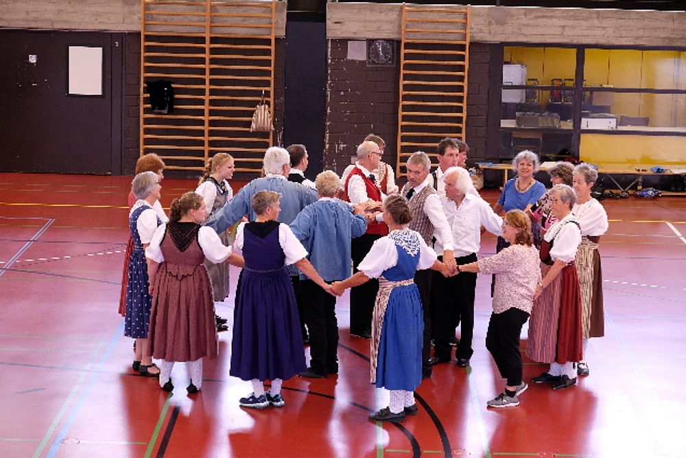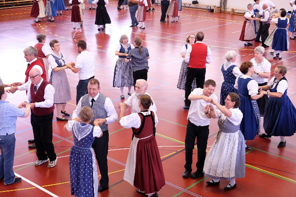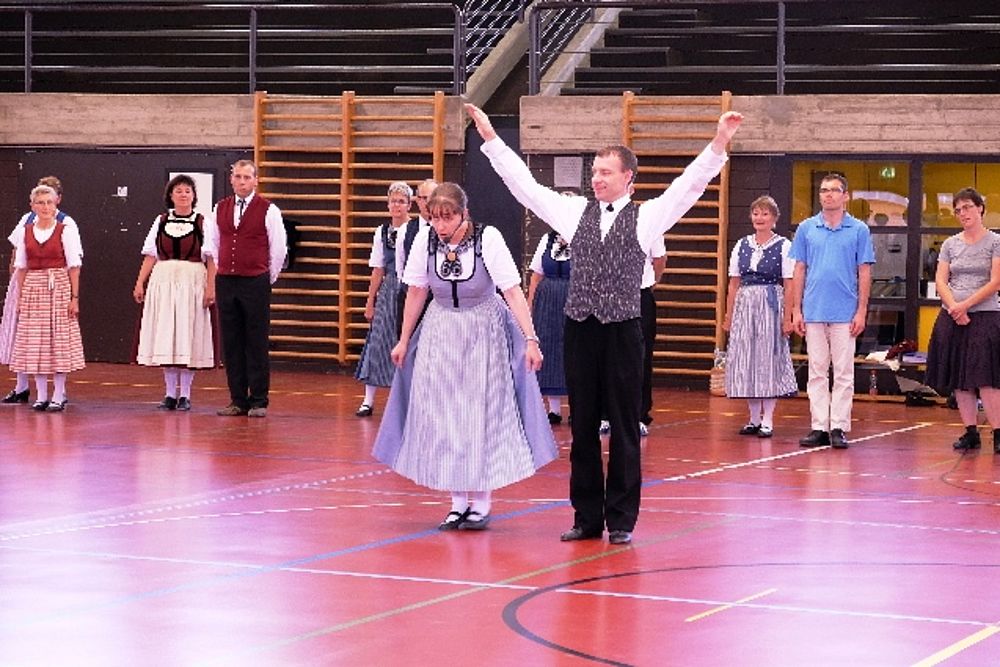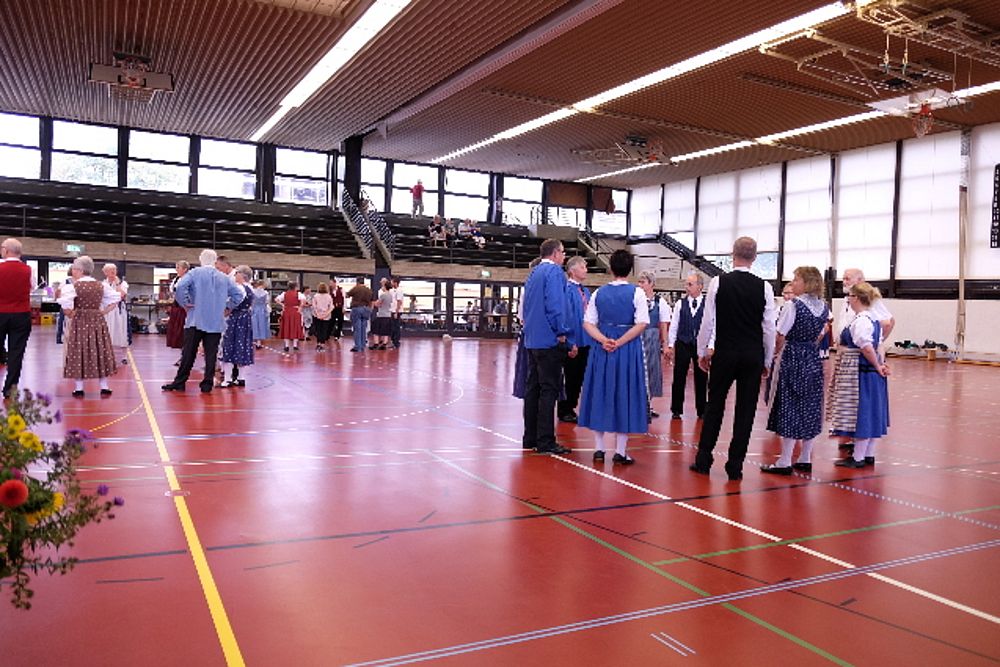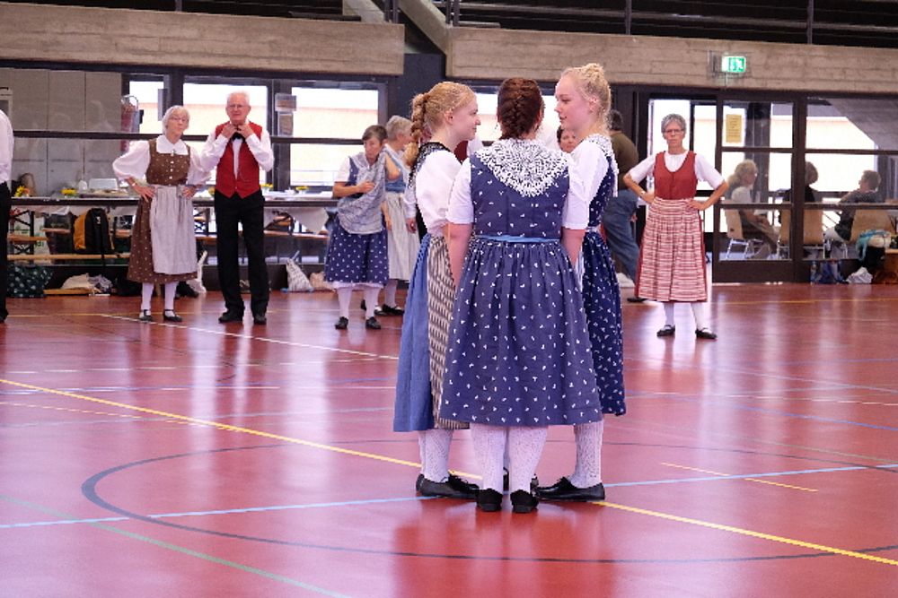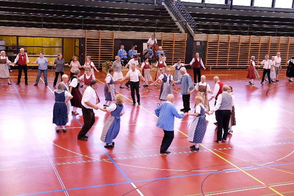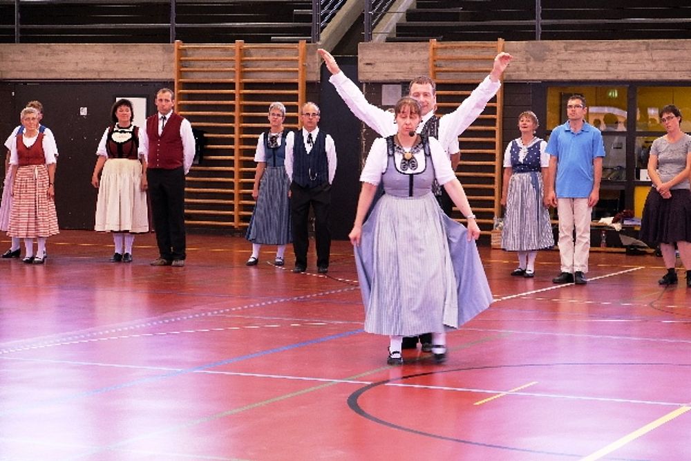 Mit dem Hirschegräbler (Schottisch) begann der Tanzsonntag und nach der Schüpfener Mazurka wartete das Mittagessen, das die Trachtengruppe Liestal bestens organisiert hatten. Präsidentin Sabina Schneider und ihre Helferinnen hatten alle Hände voll zu tun. Nun war Zeit für einen Schwatz, denn die meisten kannten sich von verschiedenen Tanzanlässen. Bis weit in den Nachmittag wurde noch geübt, gedreht, gehüpft und viele mussten sich die Schweisstropfen von der Stirne wischen. Die Melodien zu den vierzehn verschiedenen Tänzen wurden von der Oberbaselbieter Ländlerkapelle, Live und mit viel Geduld, gespielt.