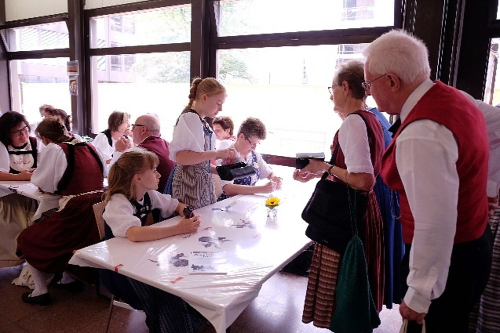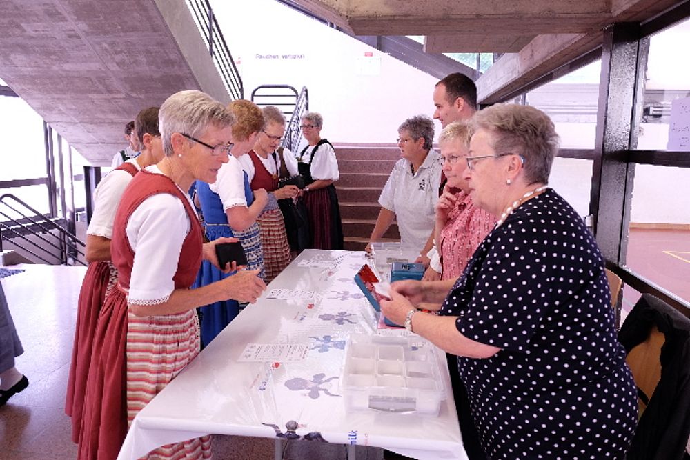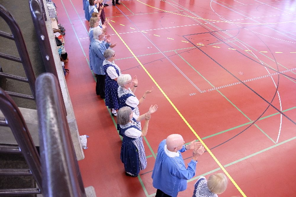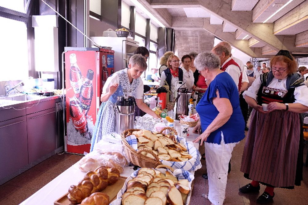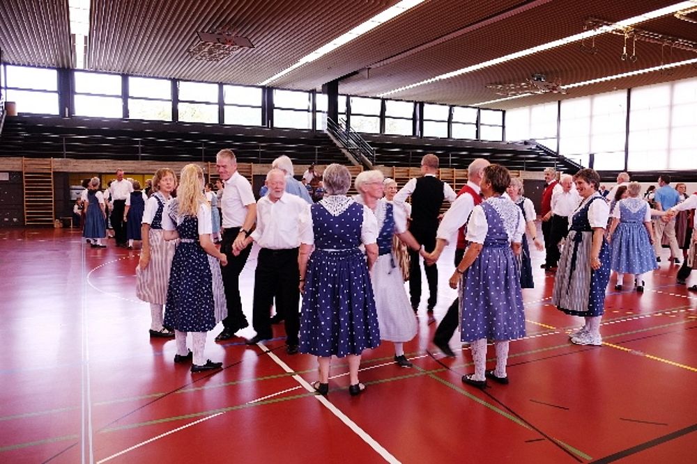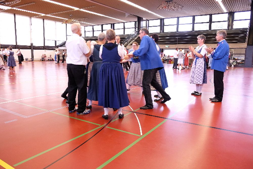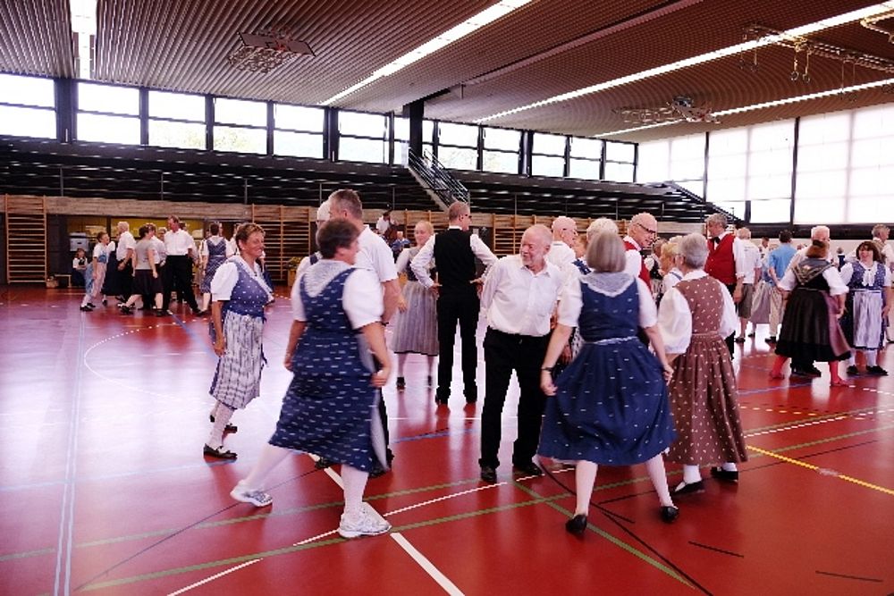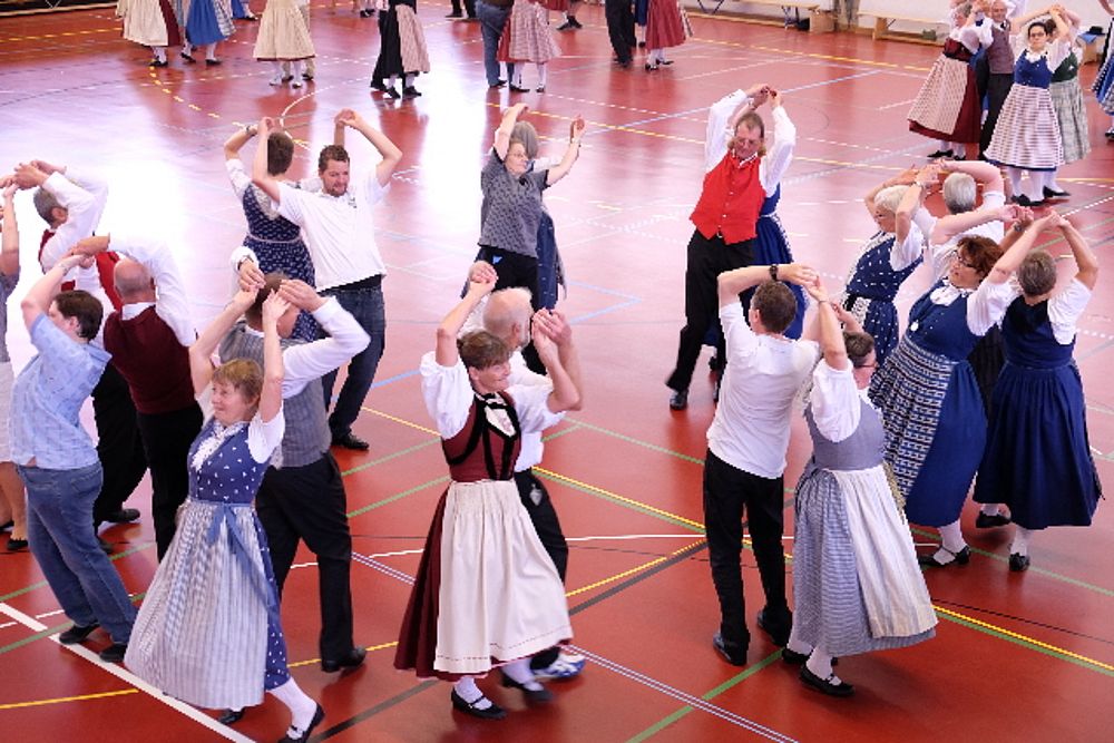 Mit dem Hirschegräbler (Schottisch) begann der Tanzsonntag und nach der Schüpfener Mazurka wartete das Mittagessen, das die Trachtengruppe Liestal bestens organisiert hatten. Präsidentin Sabina Schneider und ihre Helferinnen hatten alle Hände voll zu tun. Nun war Zeit für einen Schwatz, denn die meisten kannten sich von verschiedenen Tanzanlässen. Bis weit in den Nachmittag wurde noch geübt, gedreht, gehüpft und viele mussten sich die Schweisstropfen von der Stirne wischen. Die Melodien zu den vierzehn verschiedenen Tänzen wurden von der Oberbaselbieter Ländlerkapelle, Live und mit viel Geduld, gespielt.