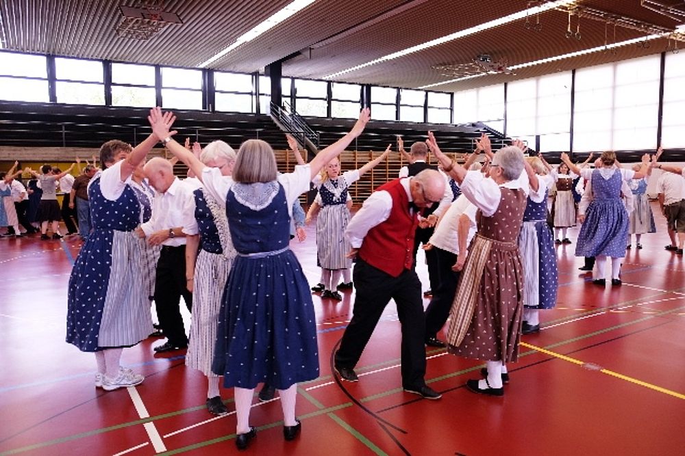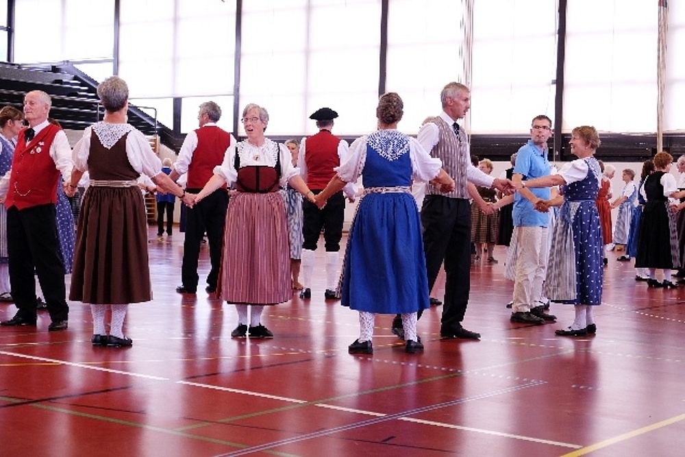 „Meitli use, Buebä ine, Walzerschritt …“. Am vergangenen Sonntag trafen sich etwa 170 Trachtentänzerinnen und Tänzer in der Sporthalle Frenke in Liestal zum traditionellen nordwestschweizerischen Trachtentanzsonntag, der in diesem Jahr ein besonderer Anlass war. Es wurden nämlich Tänze eingeübt, die allesamt im Programm des Unspunnenfestes 2017 in Interlaken stehen. In sämtlichen Trachtentanzgruppen der Schweiz werden diese Tänze nun ein ganzes Jahr lang geübt, damit sie dann am Unspunnenfest 2017 richtig gut sitzen. In Liestal trafen sich die Trachtenleute aus der Nordwestschweiz, den Kantonen Aargau, Solothurn und den beiden Basel.