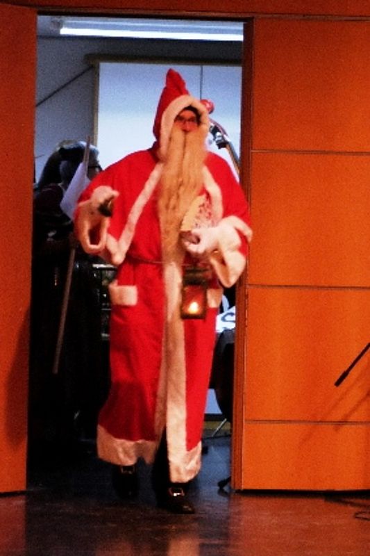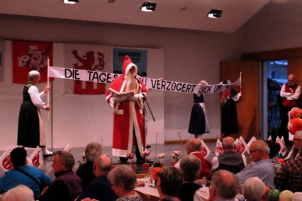 Nach kurzer Pause erscheint der Santichlaus, was zu einer Programmverlängerung führt. Er bringt als Überraschungsgeschenk die Gruppe JESTAVO mit. Deren Leiterin Andrea Schwabe-Odermatt gibt einige Erläuterungen und los geht’s mit dem Programm, das vom Jahr 2066 rückblickend eine mögliche Entwicklung der Volkstanzszene darbietet. Übrigens: Die Gruppe JESTAVO hat es in den Final des KLEINEN PRIX WALO 2016 vom 4. Dezember geschafft. Näheres siehe http://www.prixwalo.ch/sprungbrett-kleiner-prix-walo/sidebar/2016/kleiner-prix-walo-2016/.