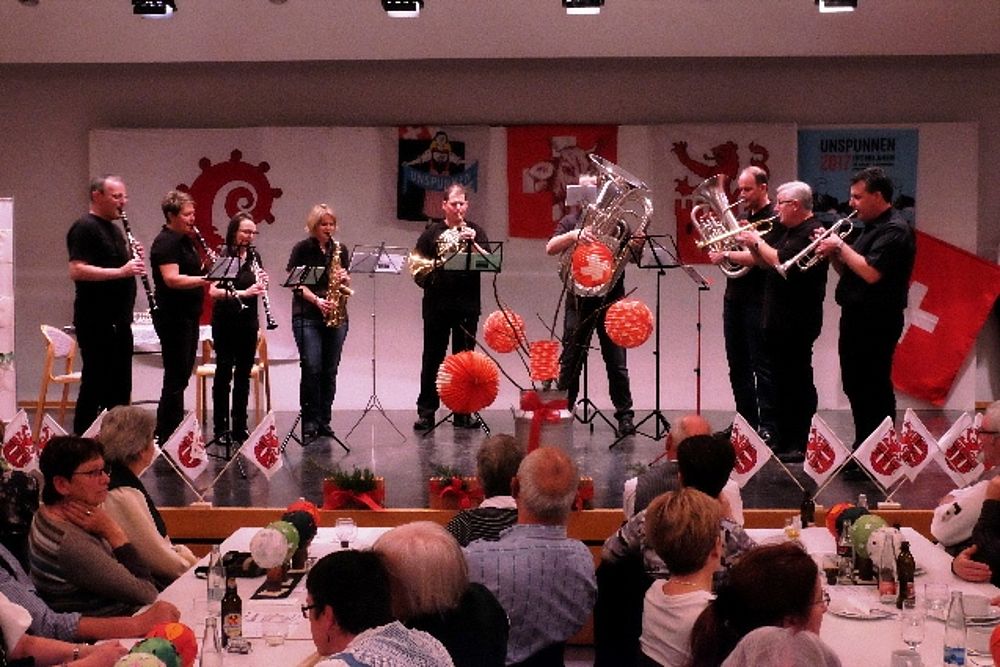Die Ländlermusig Oberli/Bürgin/Vetsch/Moser eröffnet um 11 Uhr und unterhält die Gäste während des Mittagessens, abgelöst durch Alphornbläser Köbi Dolder und Fahnenschwinger Hanspeter Leuenberg.