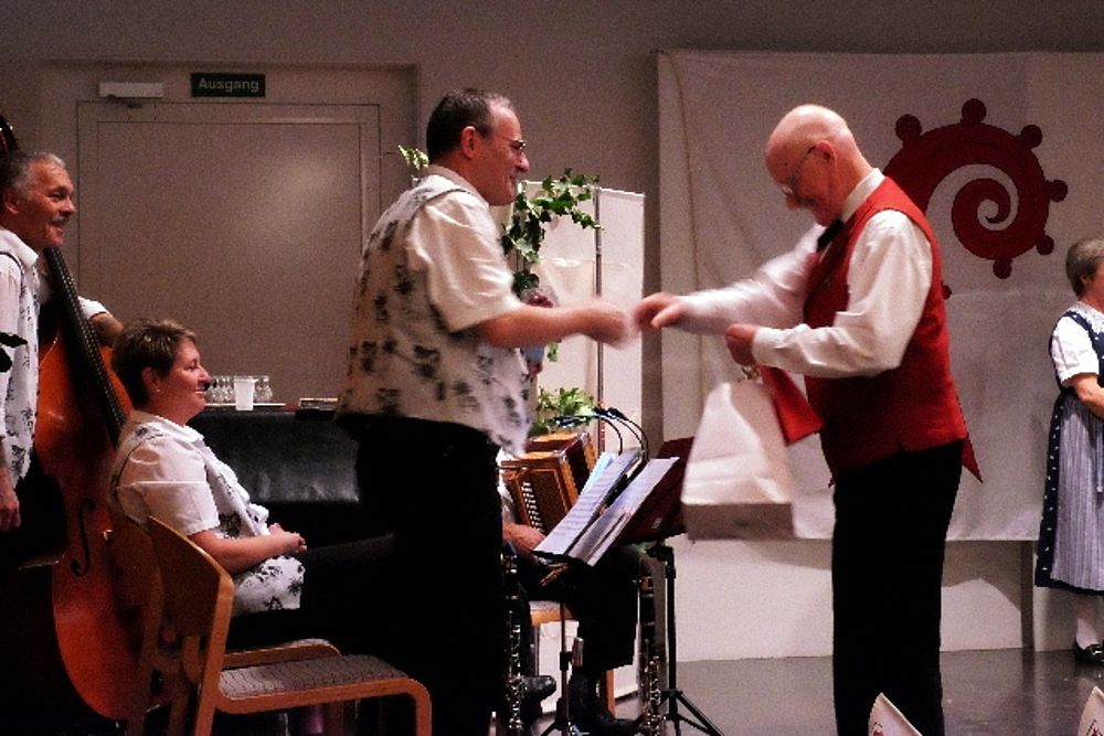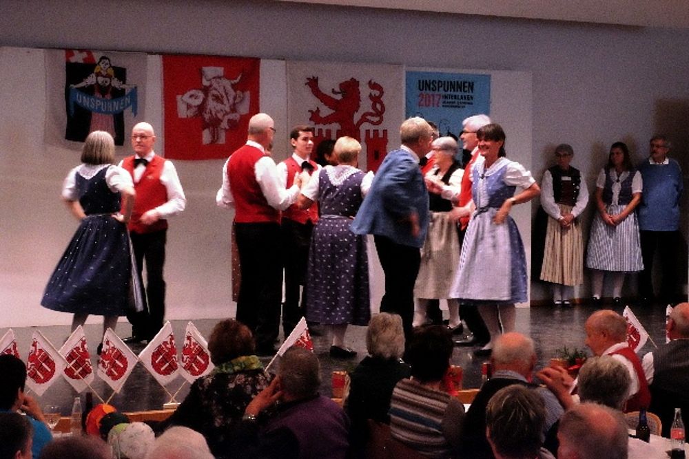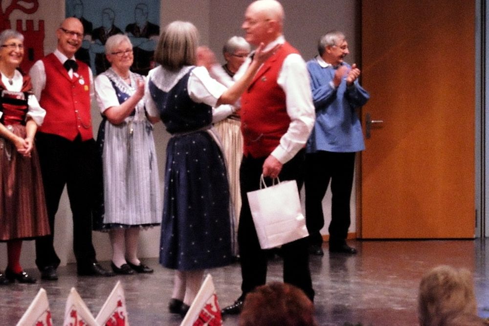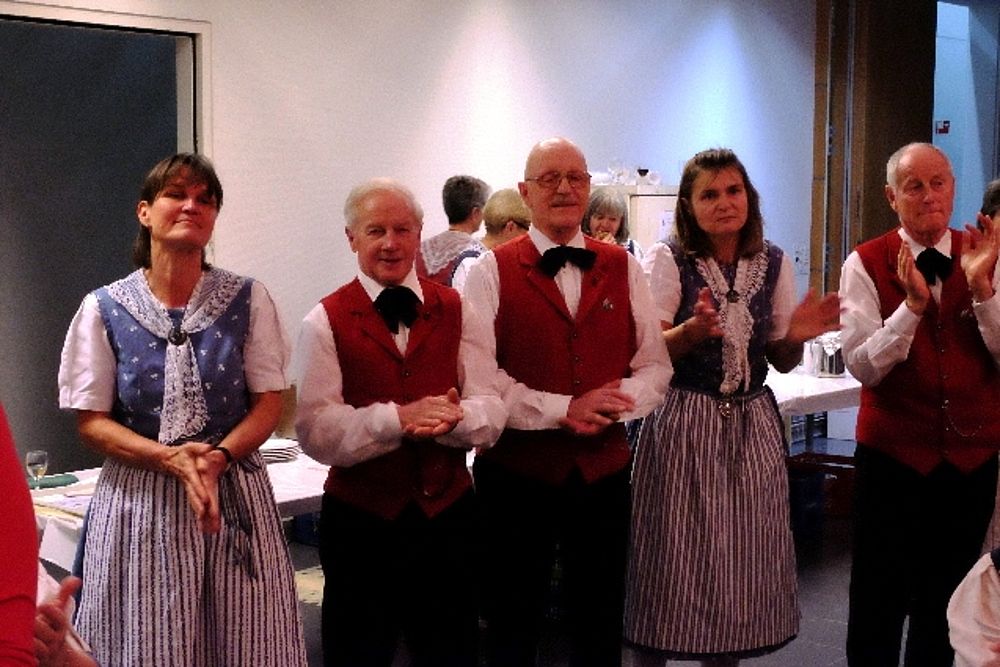 Der Jodlerklub singt weitere 2 Lieder (“Dr Wildhüeter“ und “Obestemmig“) und Zugabe, zum Abschluss gratuliert Präsident Jacques Gysin und “überreicht“ als Geschenk die Zusage, Auslagen für einen nächsten neuen Tanz dem JK in Rechnung stellen zu dürfen.