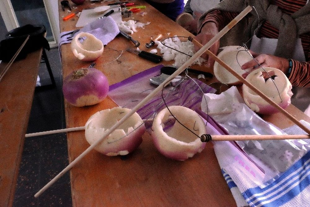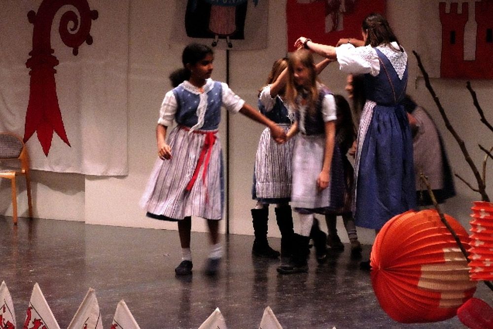 Räbeliechtli: Die Kindertanzgruppe Birsfelden-Muttenz und weitere Kinder symbolisieren den Umzug und singen dazu “Mit minere Latärne“.