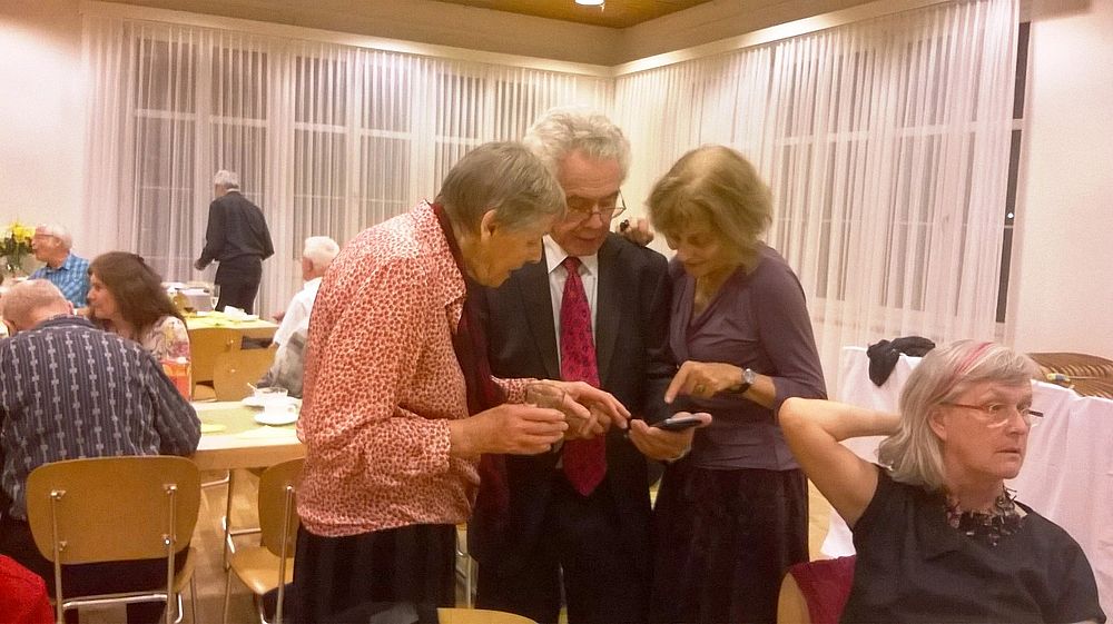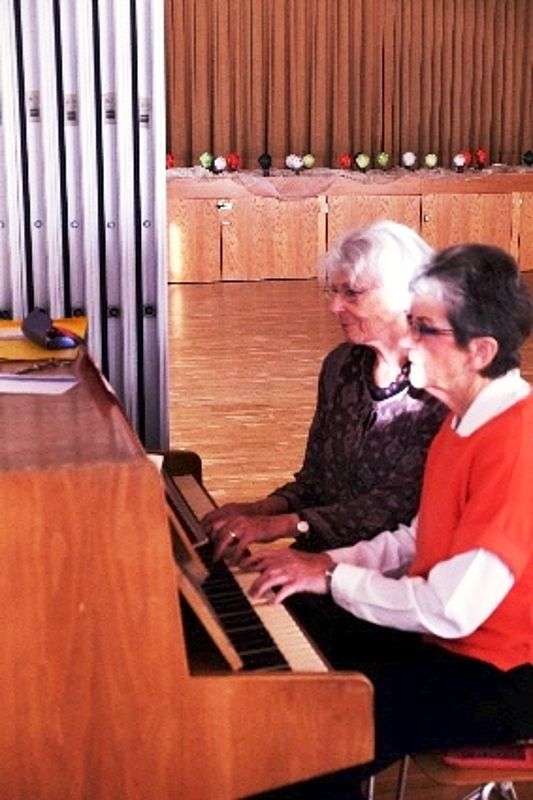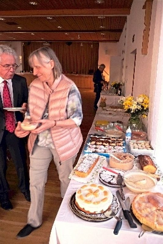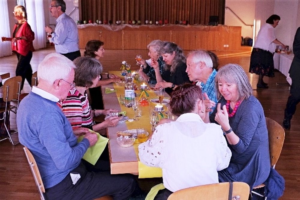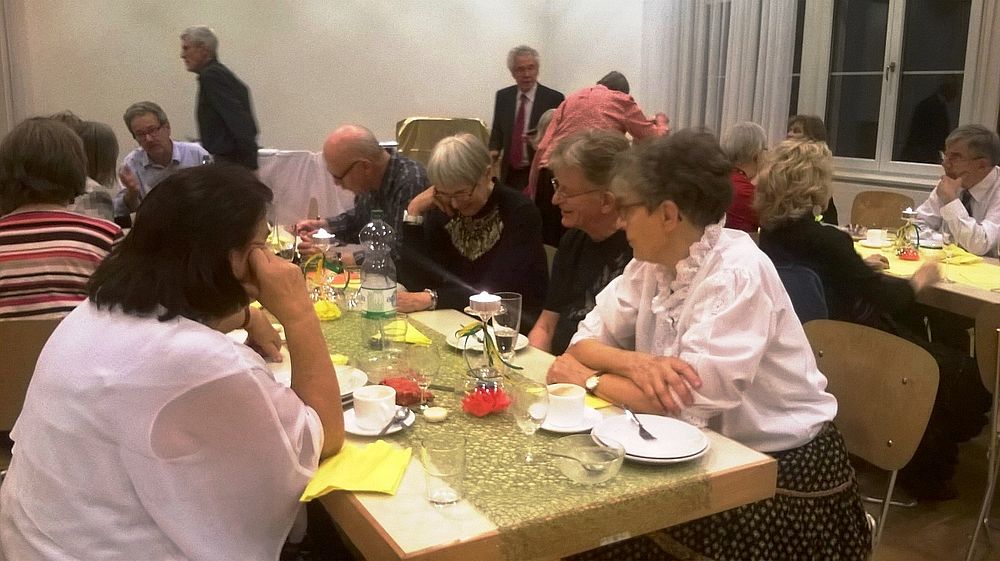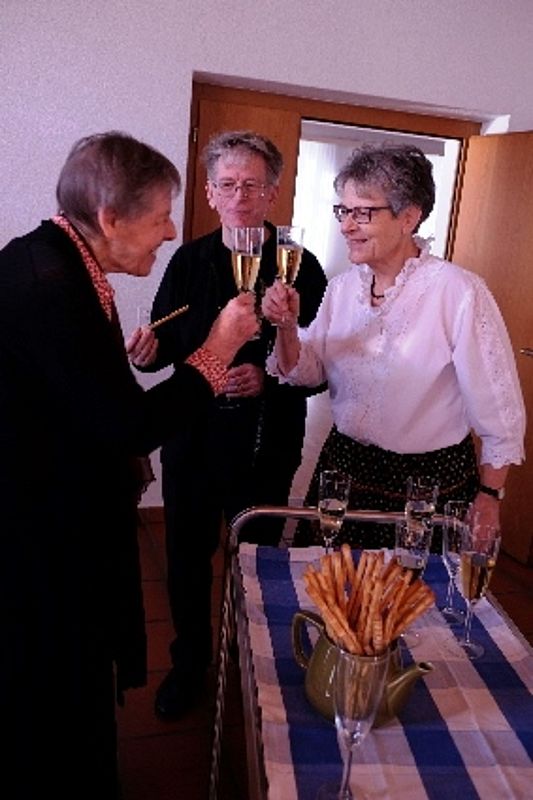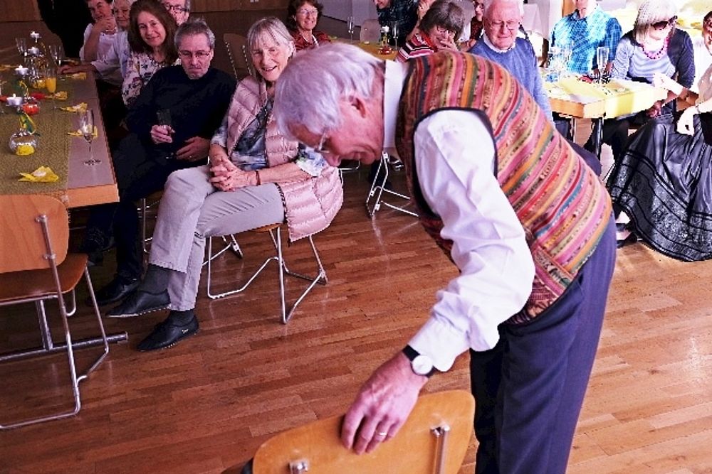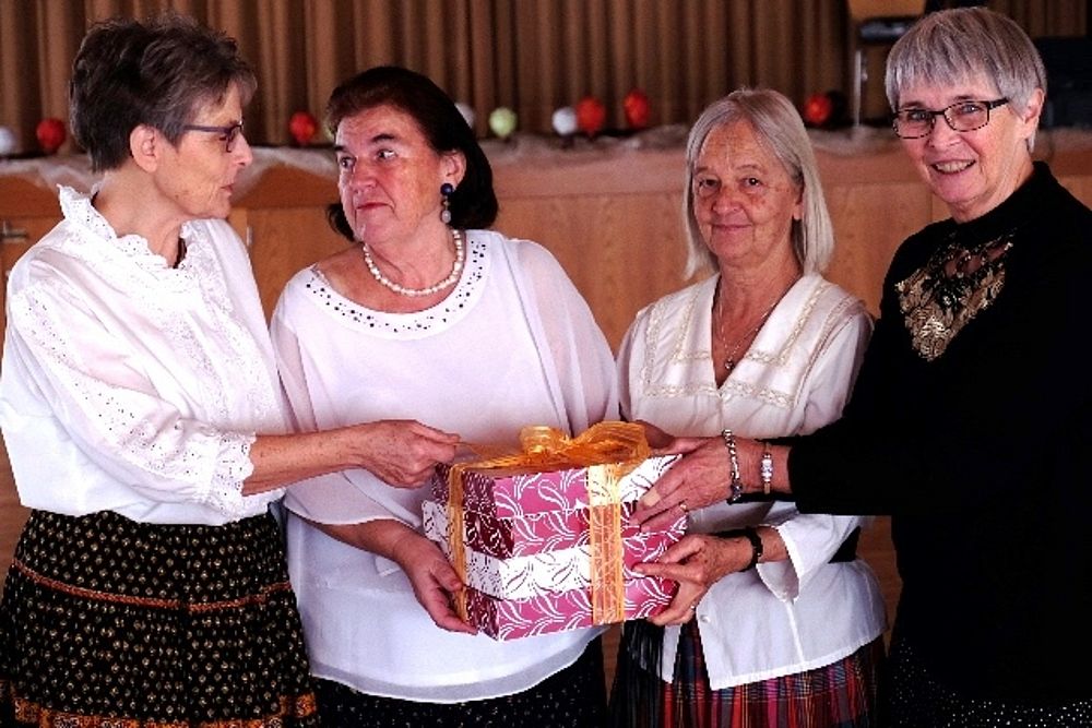 Wir vier 70er resp. noch nicht ganz 70er, Marianne Graf-Grether, Marie-Louise Wigger, Marianne Barth und Andrea Weber, luden zu einem gemütlichen Tanznachmittag ins Pfarreiheim St. Niklaus ein. Mit einem Cüpli begrüssten wir unsere Gäste und anschliessend wechselten sich Tanzen und heiteres Beisammensein ab. Das von den Jubilarinnen zusammengestellte Buffet fand regen Anklang. Zwischendurch wurden wir mit kleinen Darbietungen überrascht. So beispielsweise von Priska Sprecher und Elisabeth Briner, die uns mit dem gemeinsam auf dem Klavier gespielten Geburtstagsmarsch von Robert Schumann nach dem Apéro in den Saal baten oder von Eugen Schaub, der ein Tondokument von 1996 abspielte, in welchem Marianne Graf-Grether das Wort zum neuen Tag sprach mit dem Thema Tanzen. Lotti Herrmann überbrachte die Glückwünsche des Volkstanzkreises Basel.