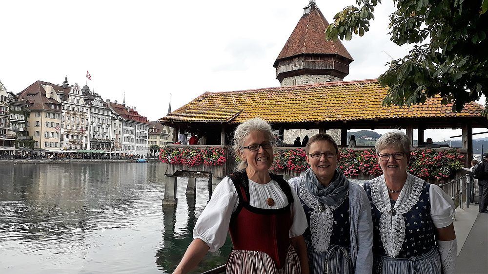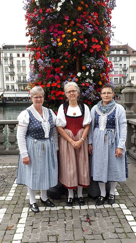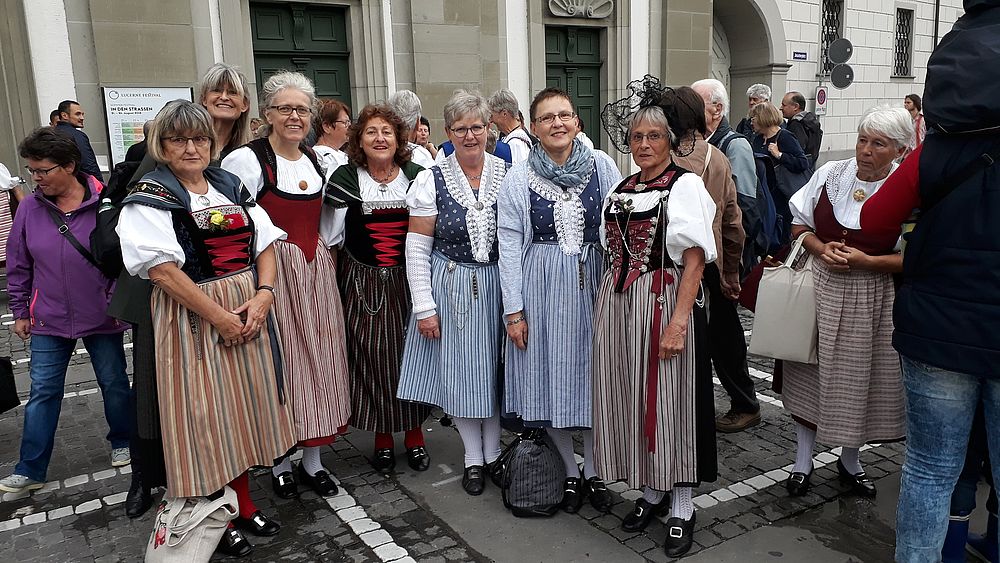 Wir haben 10 Lieder vom Unspunnenfest 2017 wieder geübt und am Nachmittag haben wir diese auf dem Jesuitenplatz bei der „Kapellbrücke" in Luzern einem grossen Publikum vorgetragen. Es war wieder ein tolles Erlebnis mit so vielen Sänger/Innen aus der ganzen Schweiz zusammen zu singen.