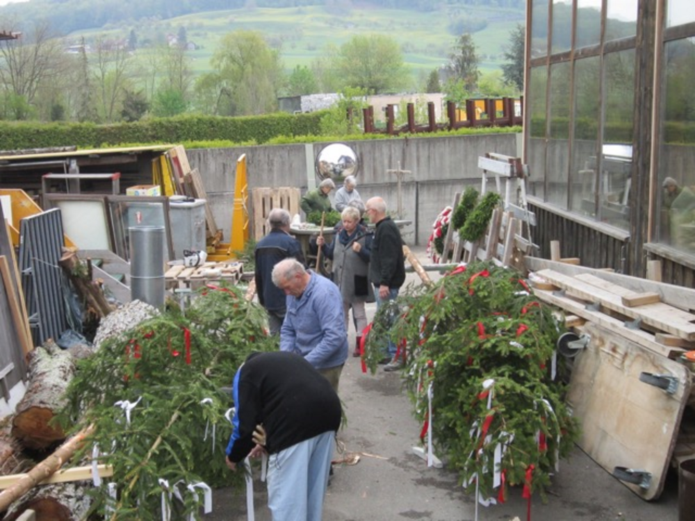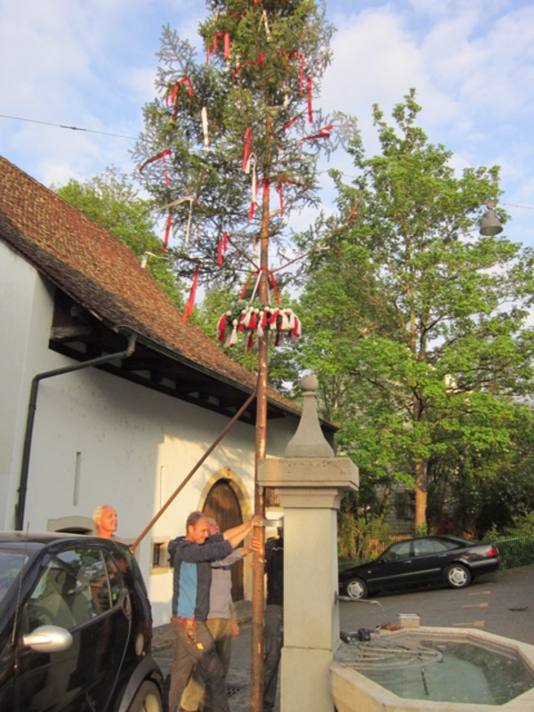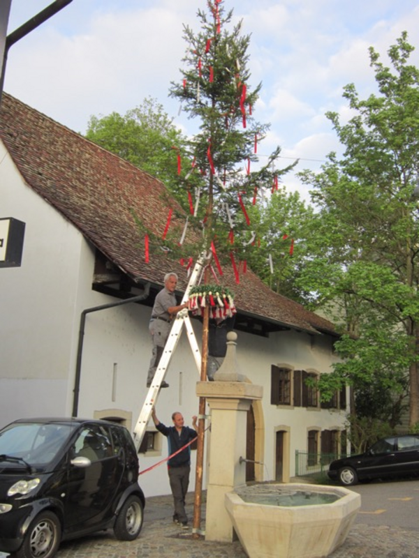 Der Tanzbaum wird dann am Sonntag, 5. Mai in der Begegnungszone um 11.00 beim traditionellen Maisingen und Tanzen aufgestellt und später zum Altersheim Mülimatt transportiert, wo er bis am 31. Mai stehen bleibt.