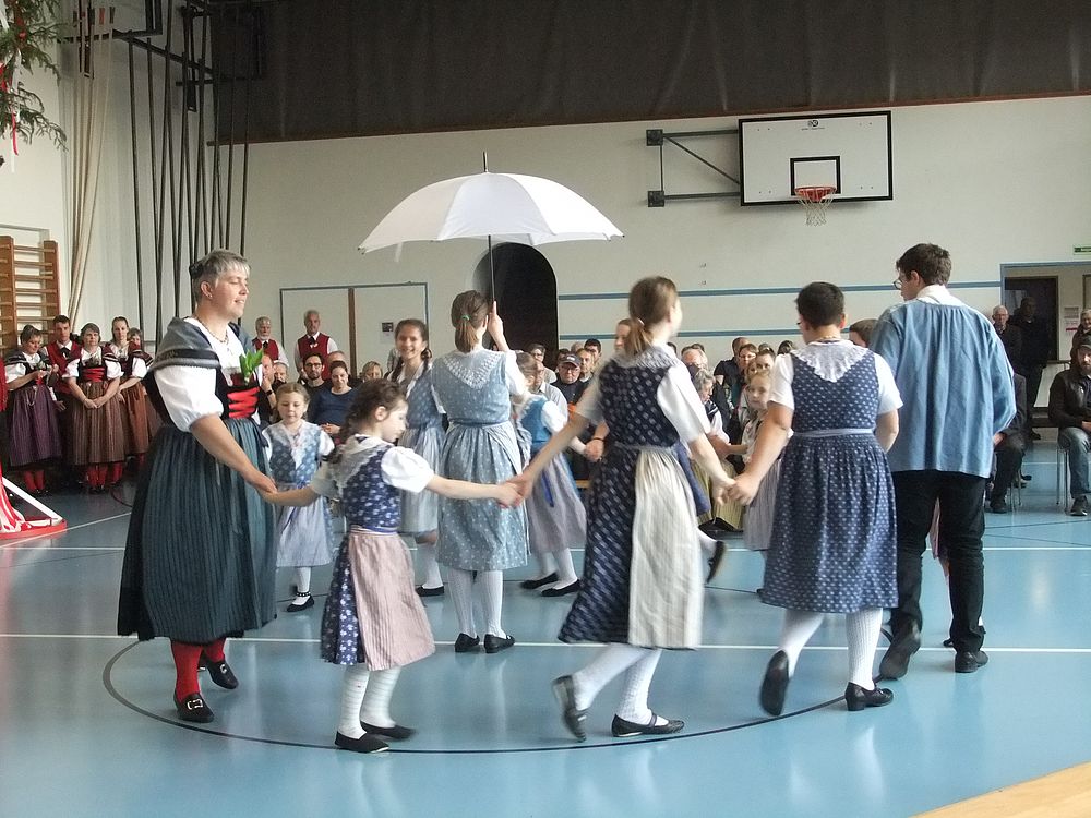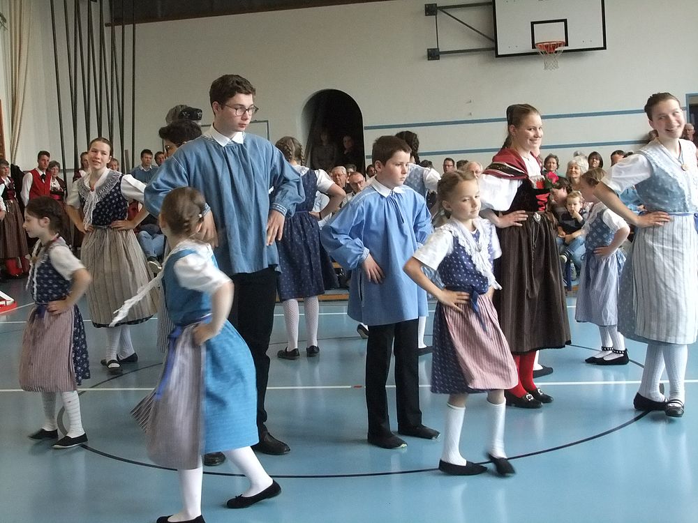Das diesjährige Programm wurde einmal mehr von unserem Leiterteam, Rea, Hanni und Thomas zusammengestellt. Der Chor, die Tanzgruppe und die Kindertanzgruppe wechselten sich mit je vier Tänzen und Lieder ab. Zum krönenden Abschluss, dem Bändertanz, welcher ohne „Bändergnusch“ aufgeführt wurde, sang der Chor mit allen Zuschauerinnen und Zuschauer zusammen in der vollbesetzten Halle das Baselbieterlied. Die Oberbaselbieter Ländlerkapelle (OLK) begleitete uns bei den Tänzen mit ihrem lockeren Musizieren hervorragend.