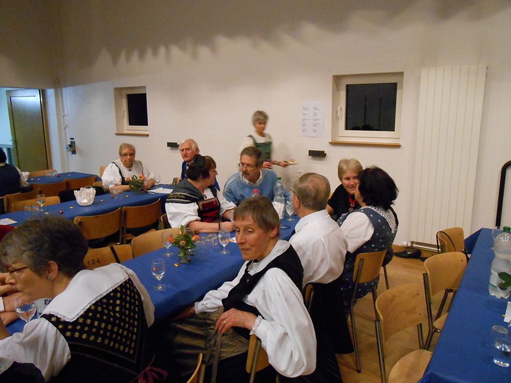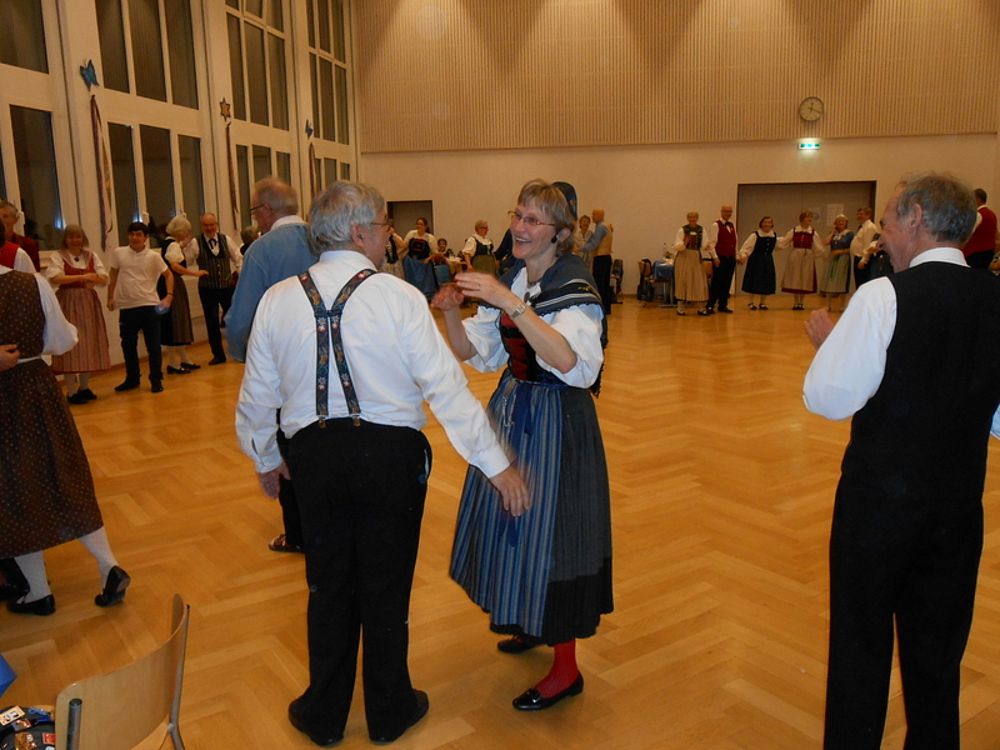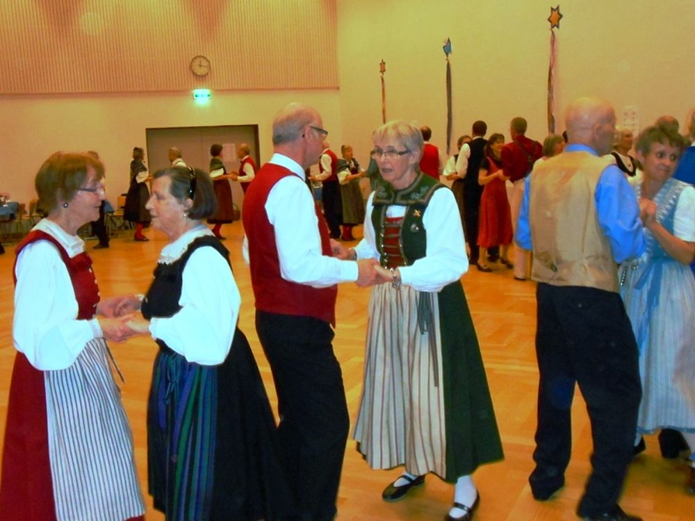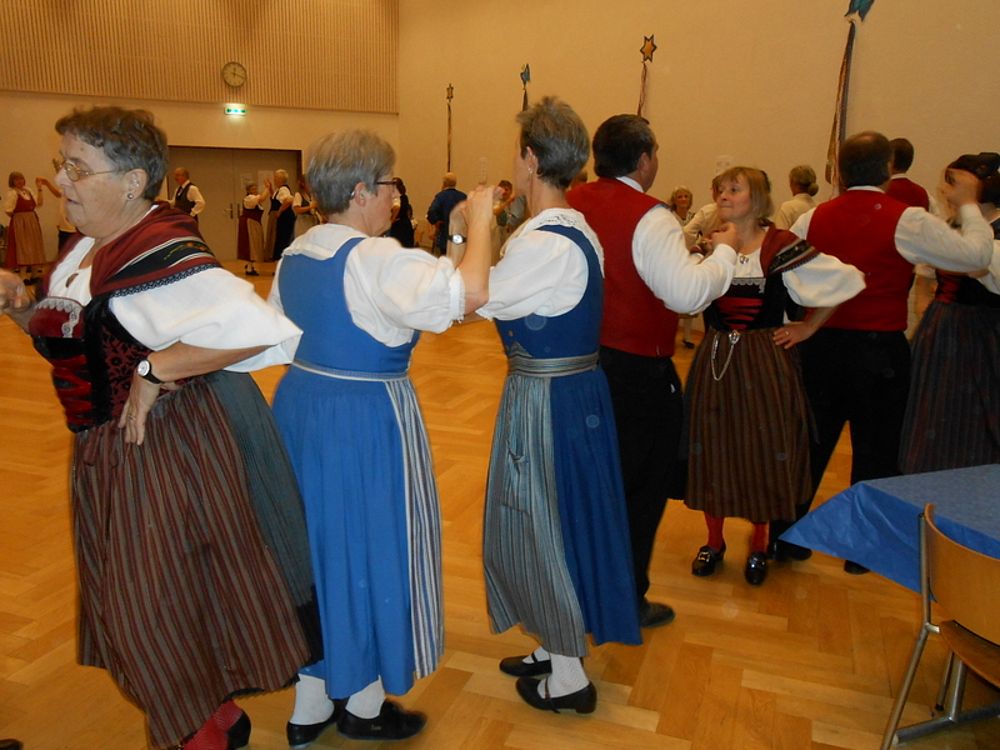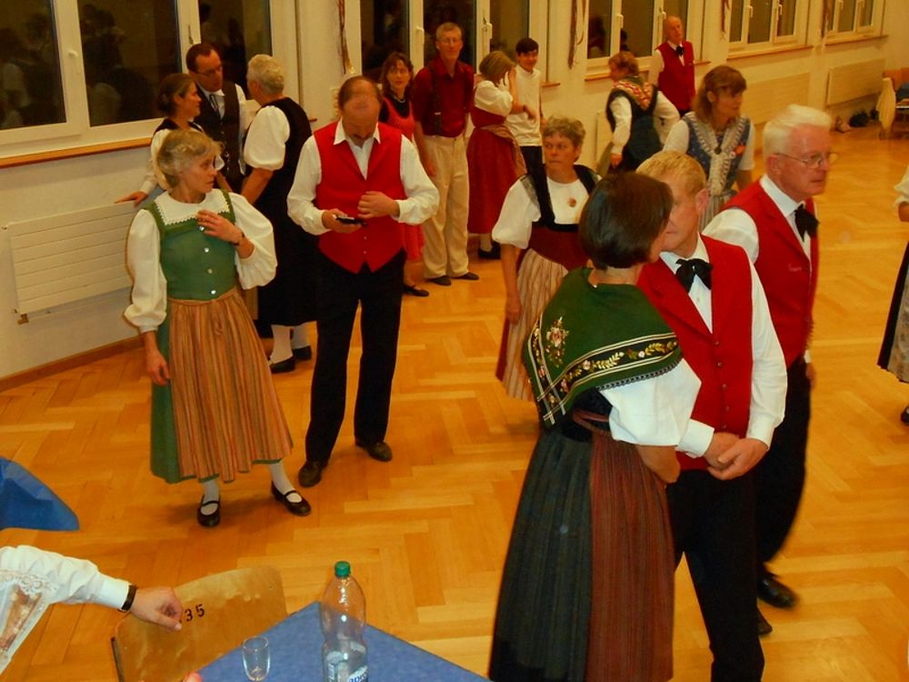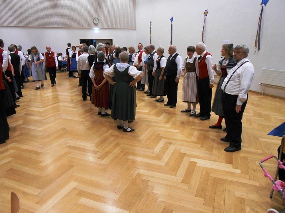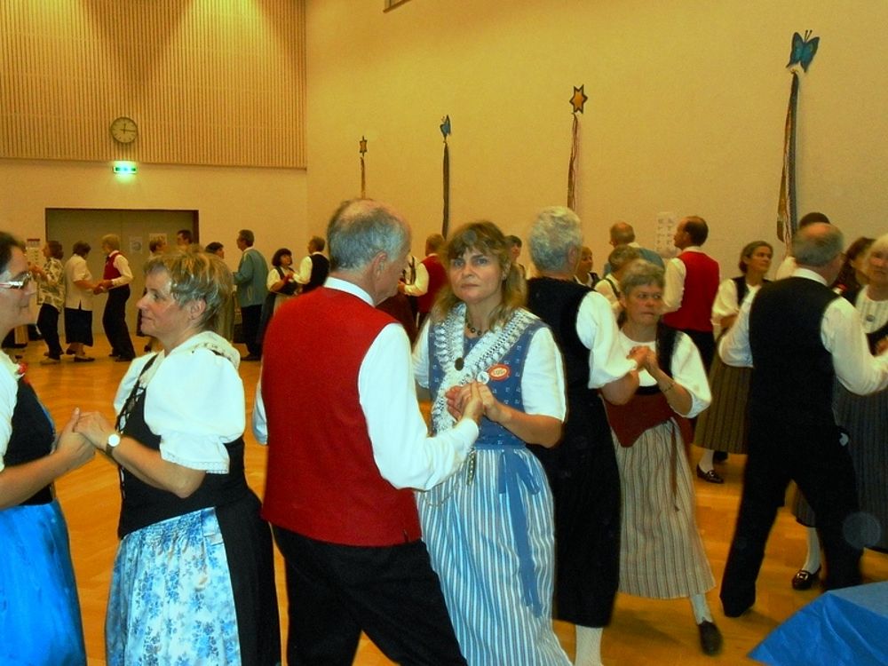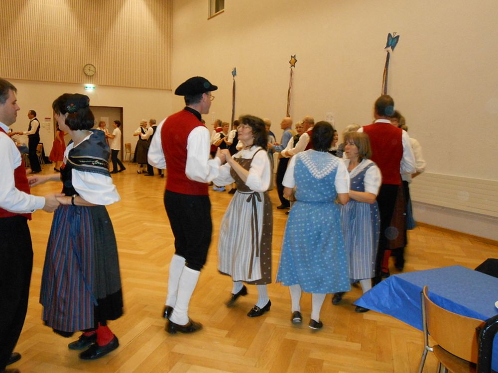 Ja, das gabs, lud doch Marianne Imhof zu ihrem Geburtstag und zu ihrem 35-jährigen Jubiläum bei der Trachtengruppe Liestal ein. Aus der ganzen Schweiz kamen die Tänzer und Tänzerinnen zusammen, aus Trachtengruppen und Volkstanzkreisen, in der Aula des Mühlemattschulhauses in Lausen bei Liestal, wo Marianne schon seit ewigen Zeiten lebt. Viele waren beladen mit Schüsseln, Körben, Guggen und anderen Behältern mit einem Beitrag für das tolle Buffet.