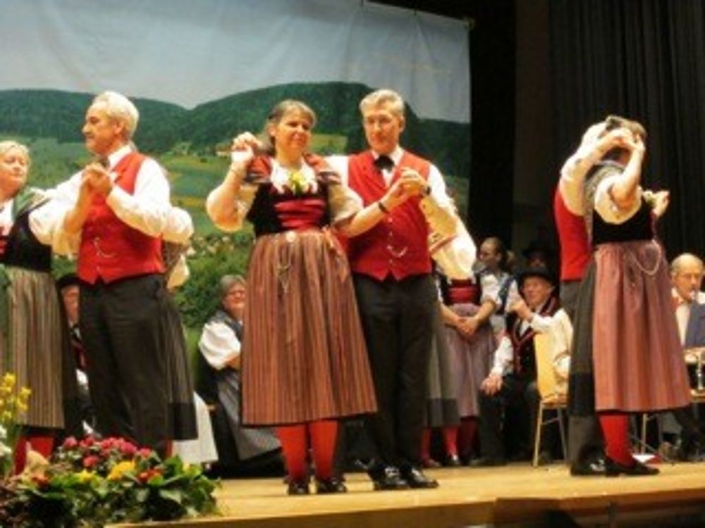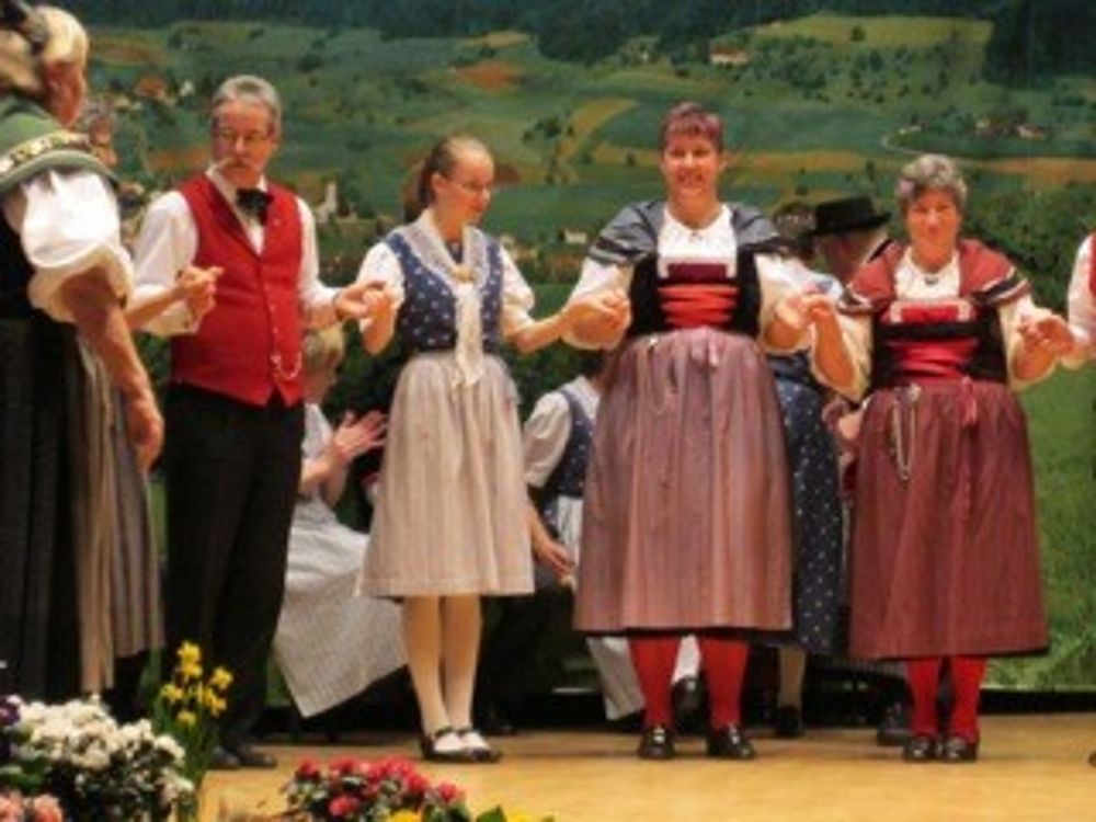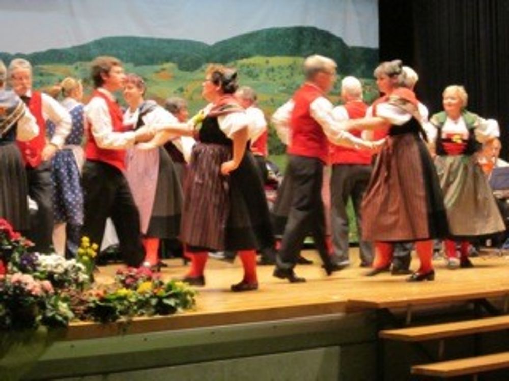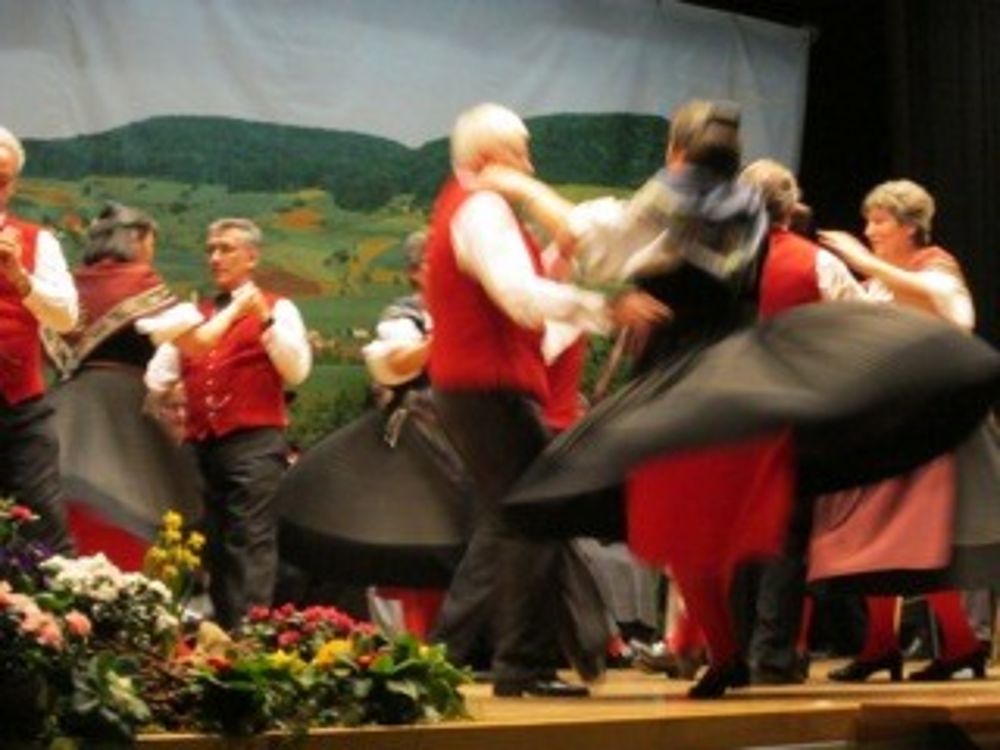 Auf der etwas kleinen Bühne tanzten wir um so schöner,weil es wenig Platz hatte. Mit sieben Paaren zeigten wir die Tänze " La Talianina", "Zürialewander", "Im Oergelihuus", "S'Bölche Gschpängscht", "Sissacher Schottisch" und den "Hobby-Senn" mit Jodelgesang.