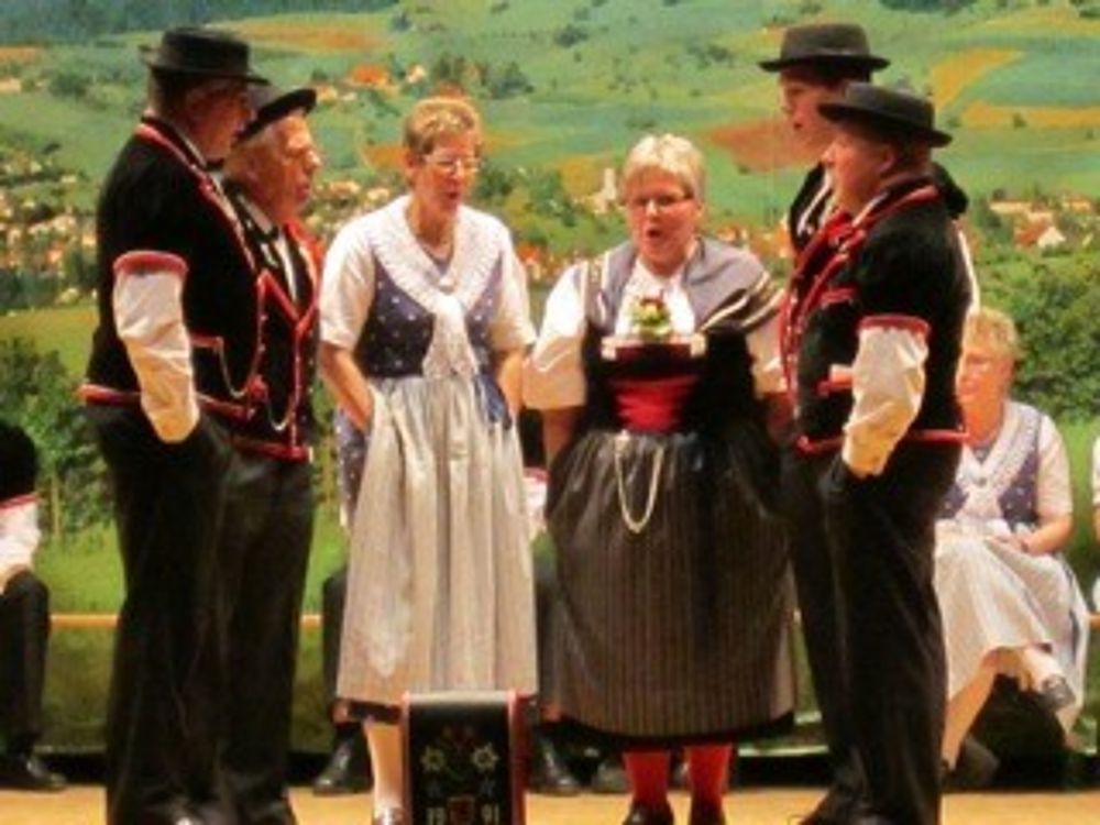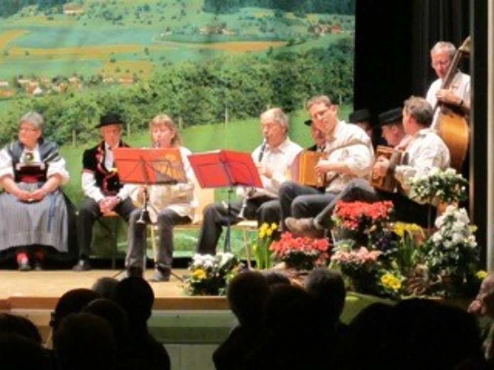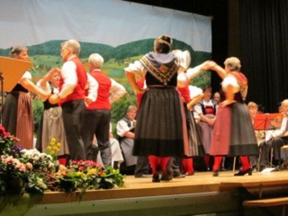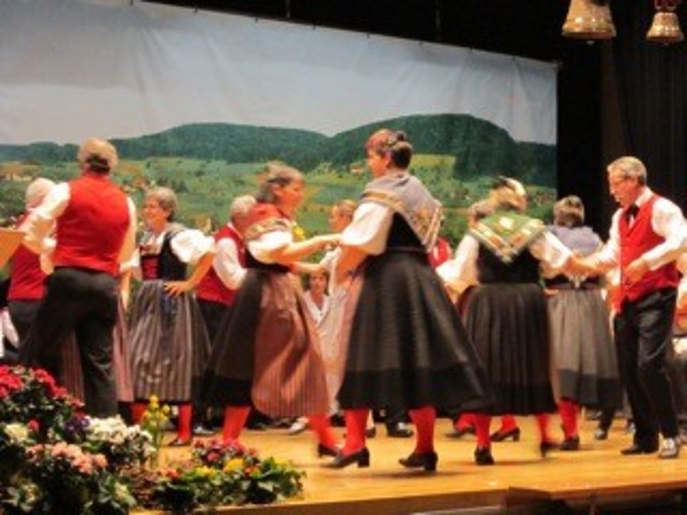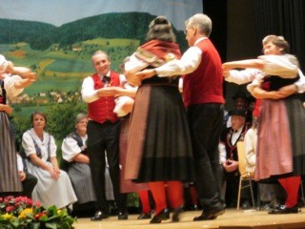 Auf der etwas kleinen Bühne tanzten wir um so schöner,weil es wenig Platz hatte. Mit sieben Paaren zeigten wir die Tänze " La Talianina", "Zürialewander", "Im Oergelihuus", "S'Bölche Gschpängscht", "Sissacher Schottisch" und den "Hobby-Senn" mit Jodelgesang.