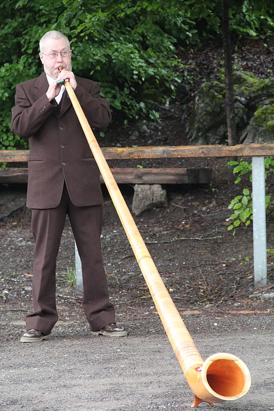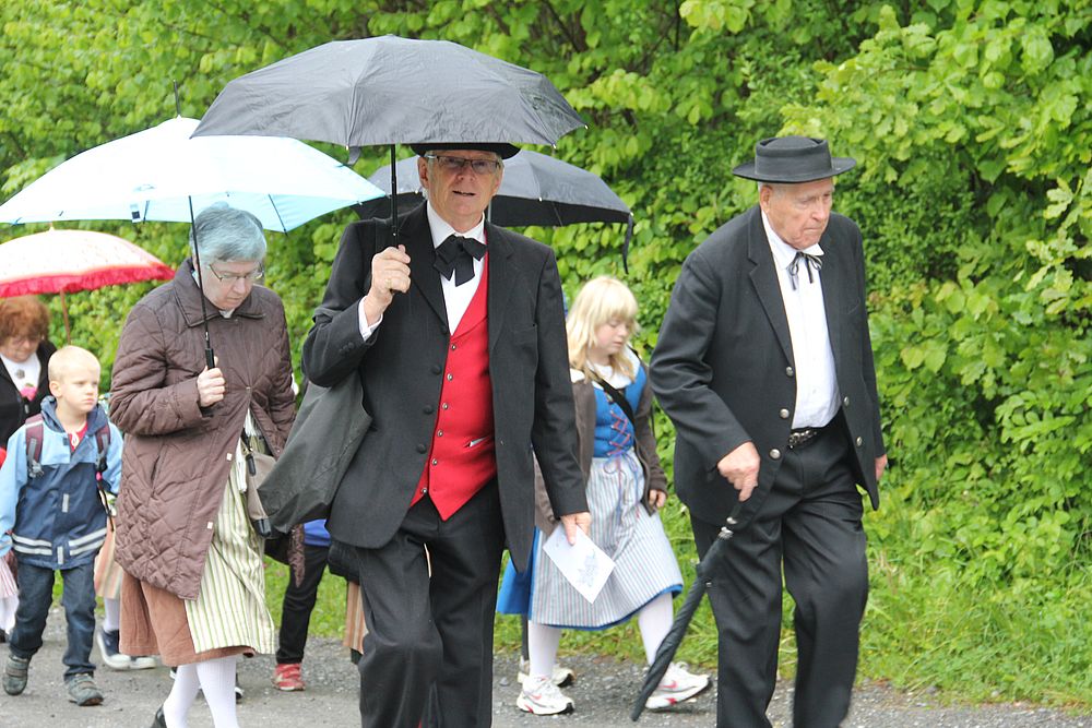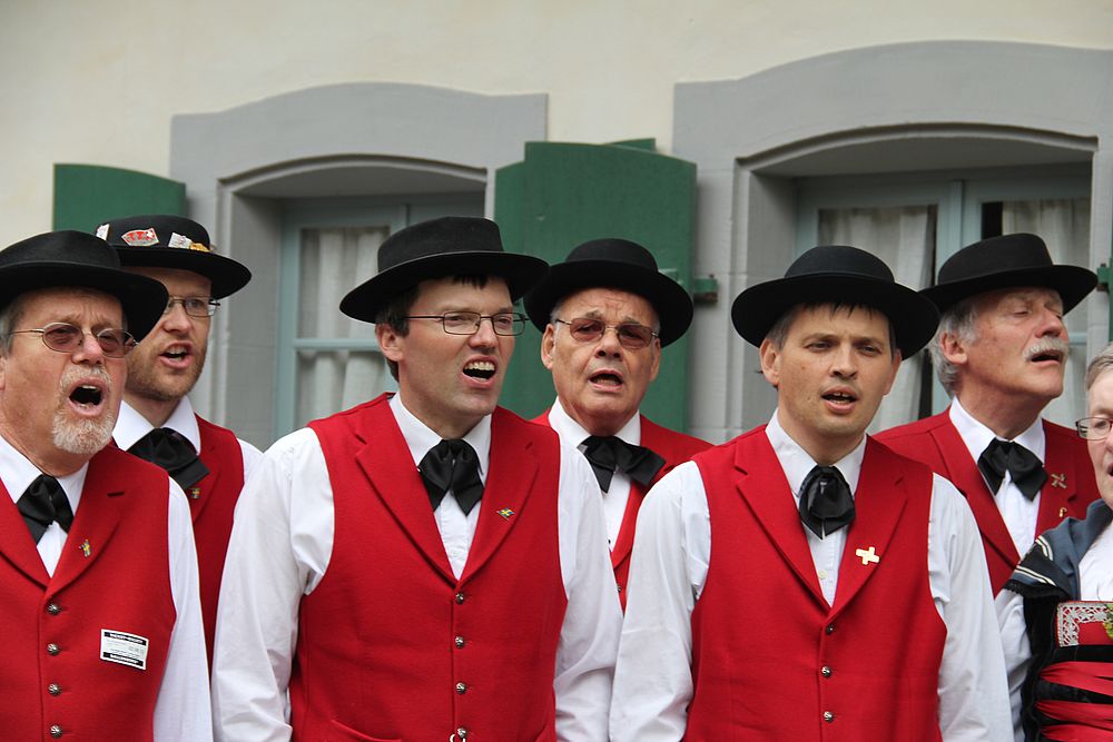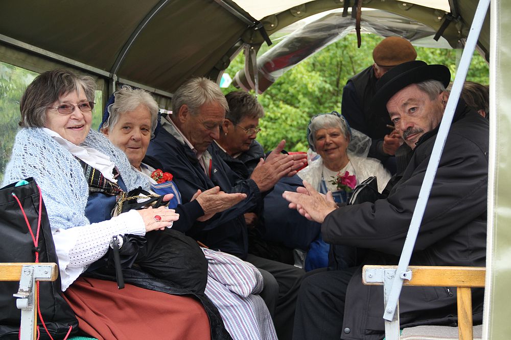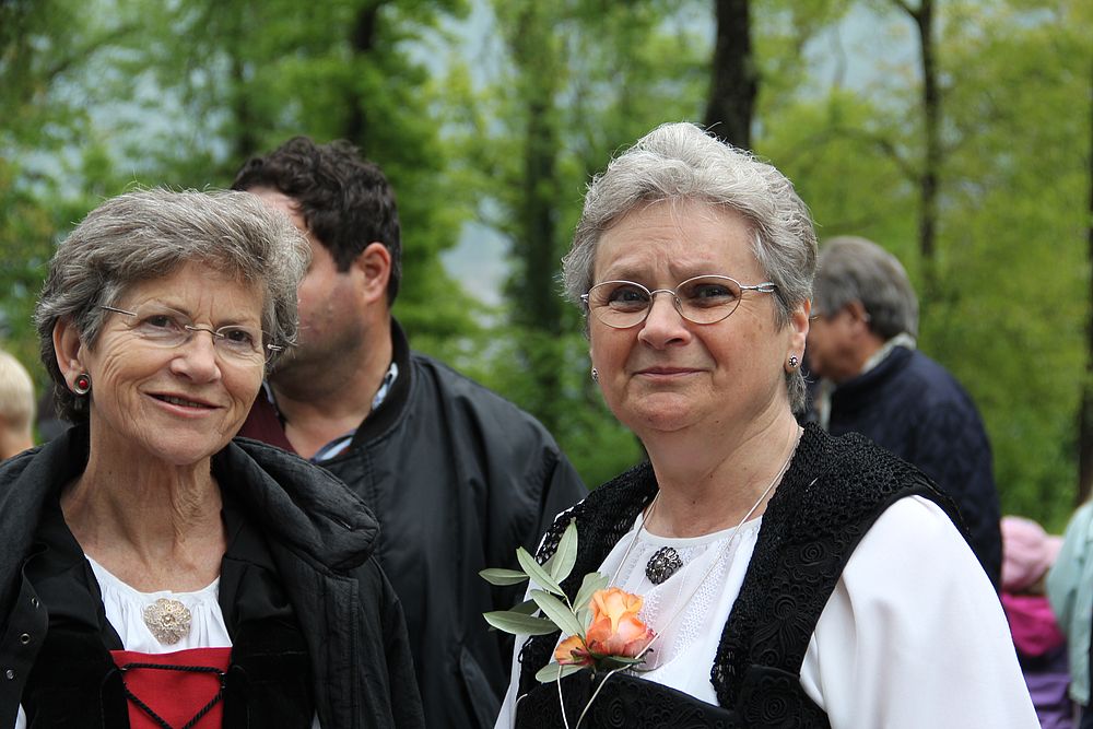 Früh morgens gab es manch besorgte Blicke zum Himmel. Was hat Petrus wohl vor für heute, lässt er die Schleusen zu? Er liess uns Trachtenleute nicht im Stich. Im Mittelland signalisierte er, dass es die Sonne noch gibt, beim Erreichen der Alpen leerte er seine letzten Kübel und bei der Ankunft um 9 Uhr nieselte es noch ein wenig, immer weniger und beim Schlussevent aller Aktiven schaute gar die Sonne zu.