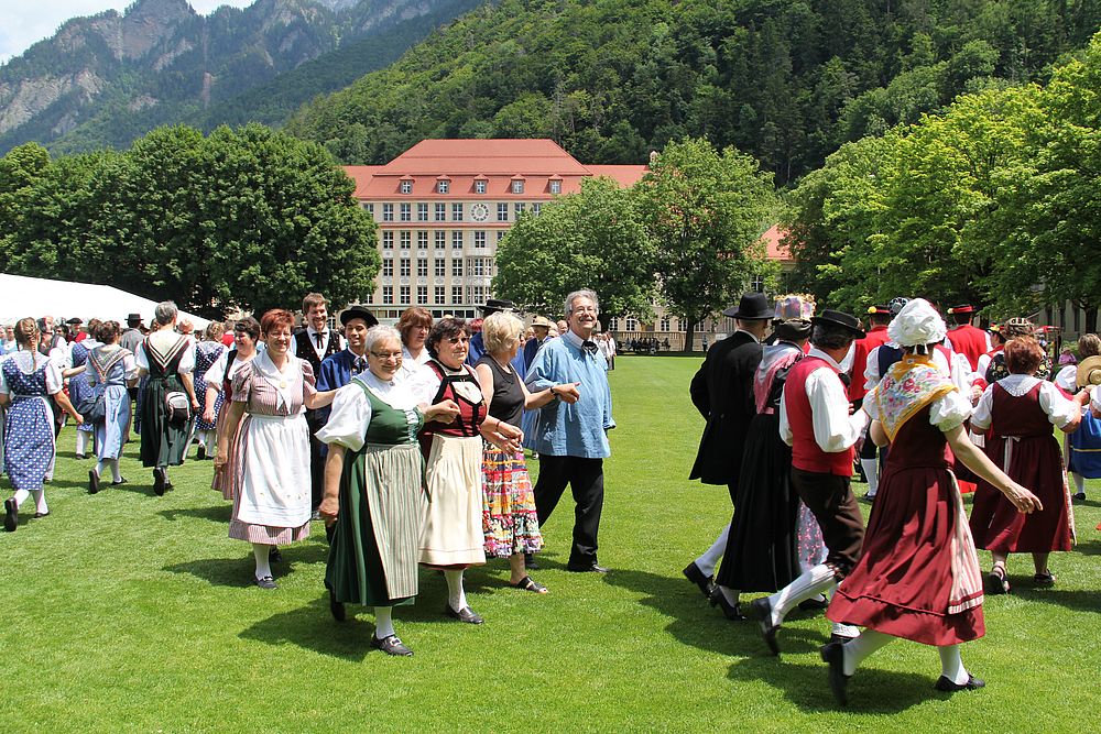 Am Wochenende vom 15./16. Juni fand das 3. Schweizerische Volkstanzfest mit vorangehender Delegiertenversammlung der STV statt, organisiert von der Bündner Trachtenvereinigung. Es war herrliches Sommerwetter und die Sonne lachte mit uns.