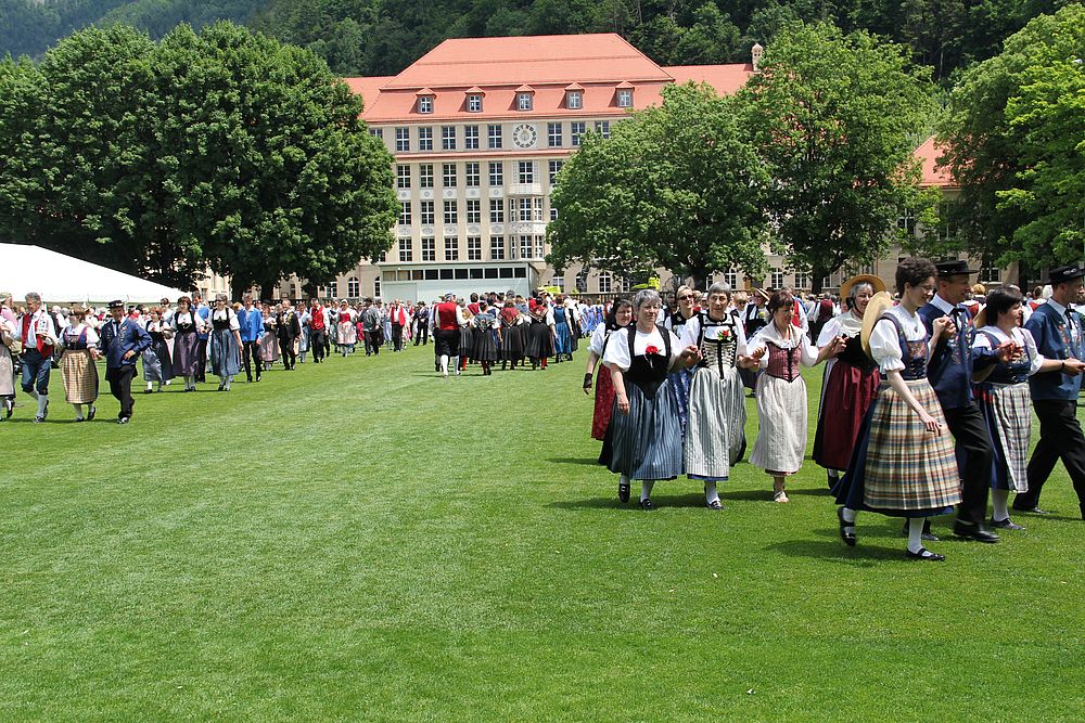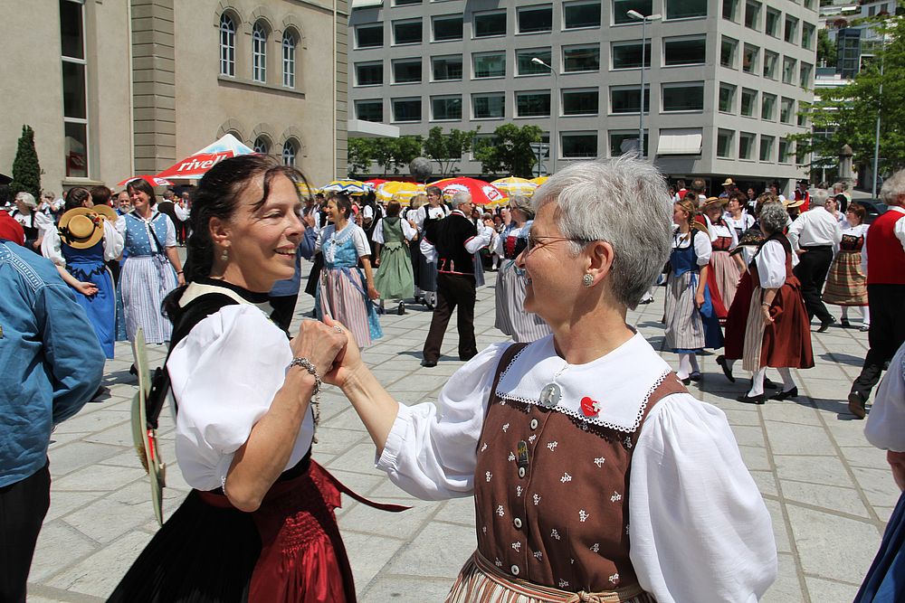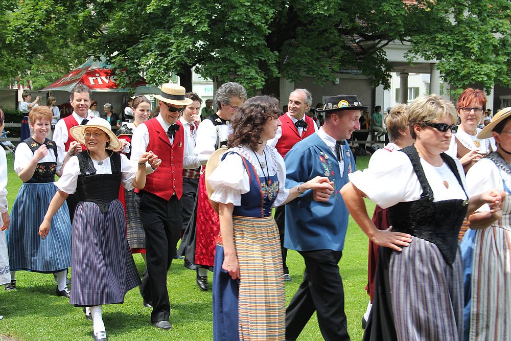 Der Sonntagmorgen startete mit dem ökumenischen Gottesdienst in der prall gefüllten St. Martinskirche, gefolgt von einem „Umzug“ - mehrmals erklang das Baselbieterlied - zur Quaderwiese, wo wiederum ein Apéro wartete. Und bis um 16 Uhr hiess es dann wieder tanzen, Vorführungen anschauen oder einfach nur geniessen.