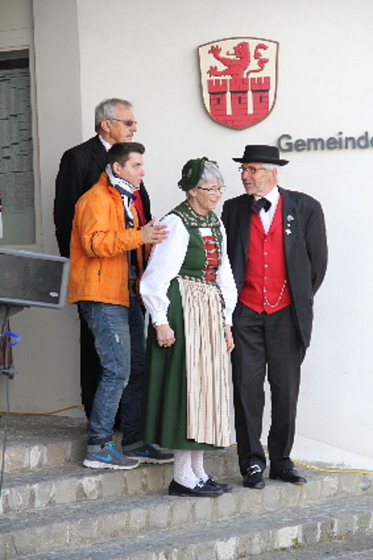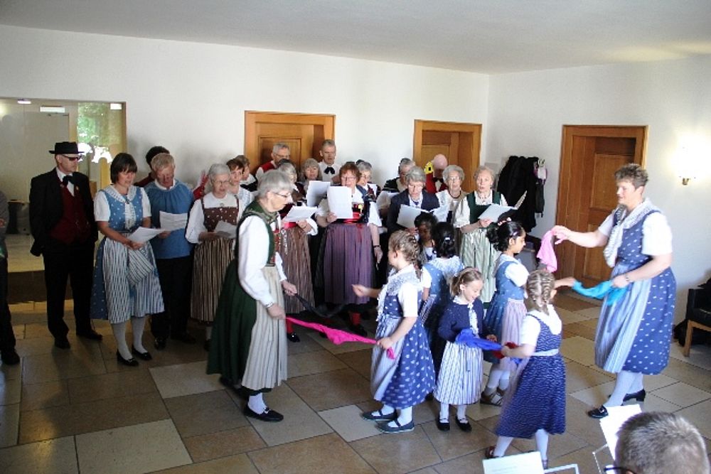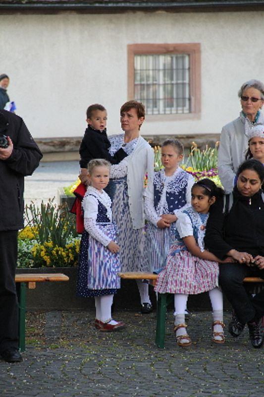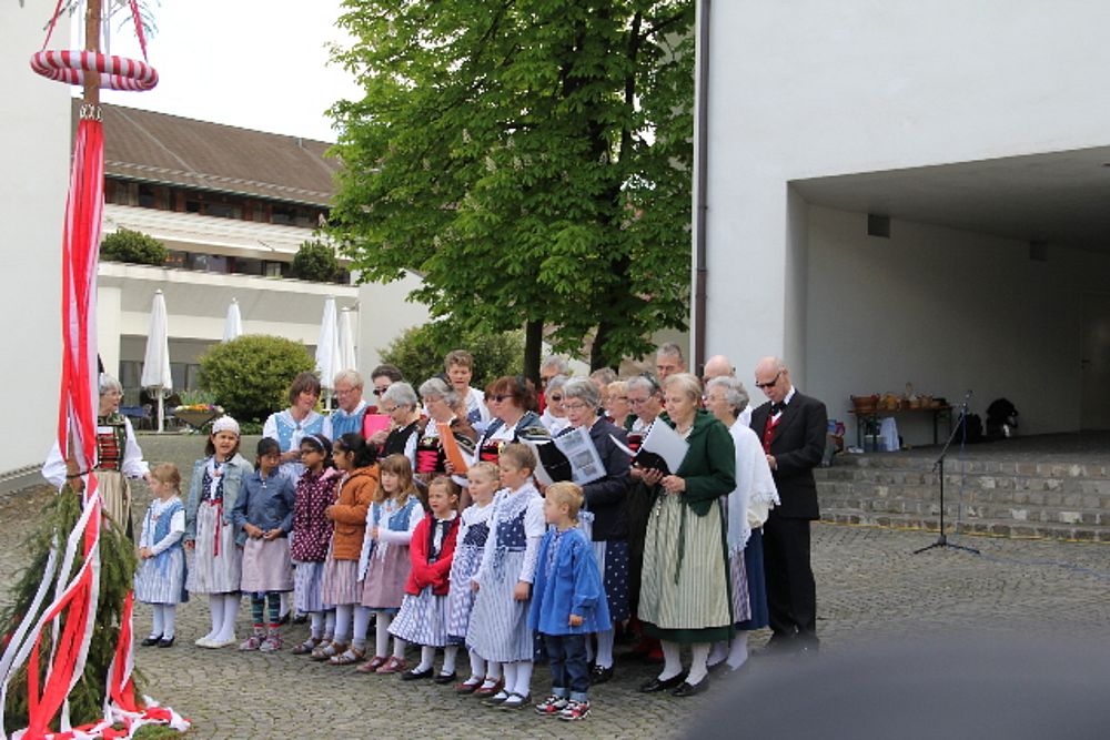 Nicht nur die Engel müssen begeisterte Anhänger des Brauches sein, mit dem der Monat Mai von den Trachtenleuten begrüsst wird. Auch Petrus wollte die Trachtengruppe nicht enttäuschen und liess bei frischen Temperaturen die Sonne durch die Wolken blinzeln.