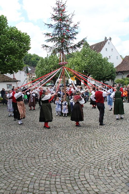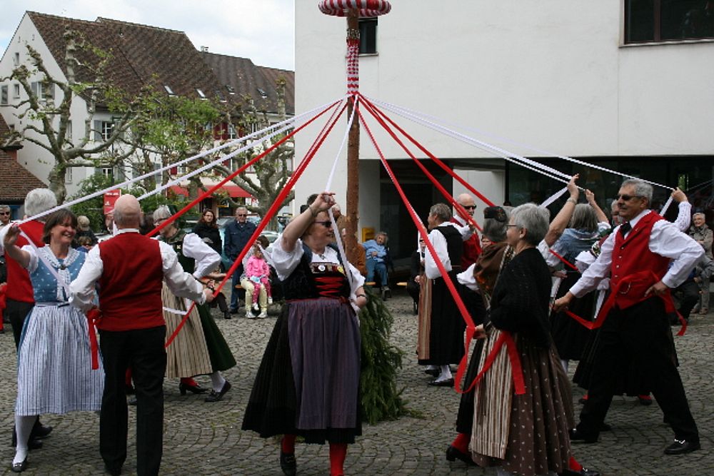 Die Trachtengruppe Muttenz, die Kindertanzgruppe Birsfelden-Muttenz und die Ländlerkapelle Wartebärg führten am vergangenen Sonntag ihren traditionellen Maitanz durch. Sie verwandelten den Dorfplatz und später den Hof vor dem Bauernhausmuseum für kurze Zeit in eine fröhliche Festzone.