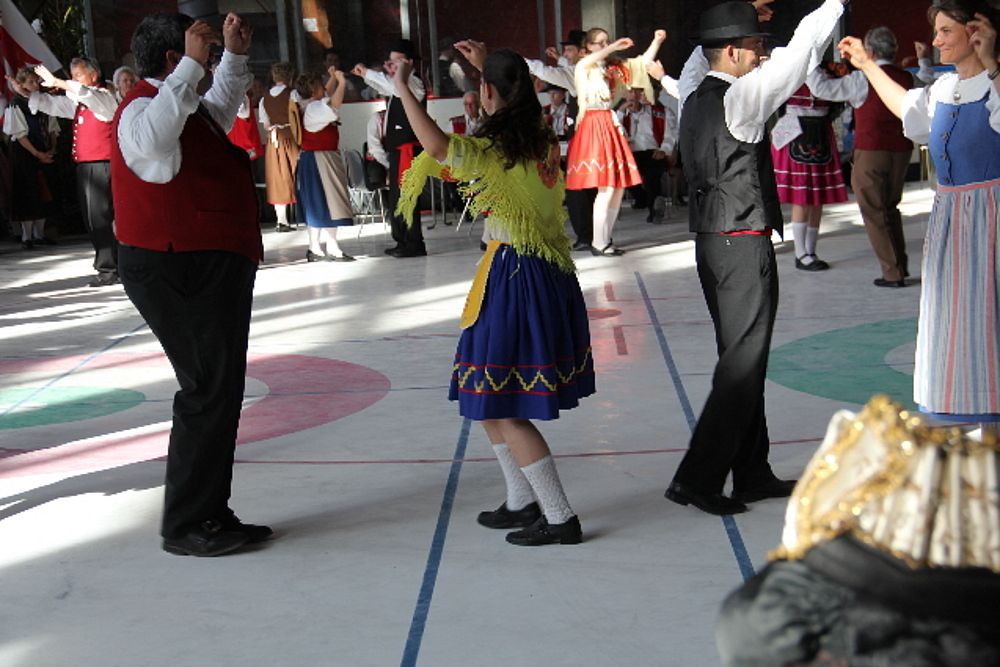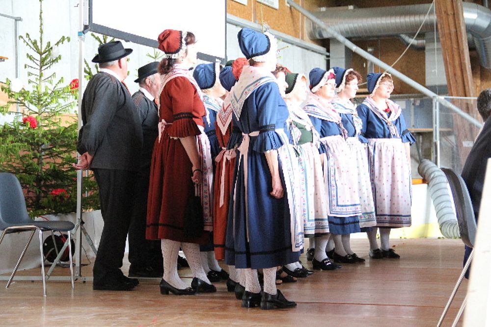 Tagungsort/Tagungssaal – Geschäftsleitung – im Gedenken an die Verstorbenen singt ein Chor – Franziska Reber von der Region Bern neu in der Geschäftsleitung als Nachfolgerin des zurücktretenden Urs Nufer (weitere Rücktritte von Fritz Brand und Gérard Queloz) – 4 Gruppen neu aufgenommen, darunter Chränzlitrachten Düdingen, Heitenried, Tafers (FR) – entdeckte Baselbieter Trachtenleute – Apéro mit Alphornklängen – vor dem Nachtessen portugiesische Folkloredarbietungen, fröhlich, lüpfig und mit Publikumstanz zum Abschluss, wobei viel Schmunzeln beim „Füdele“ – nach dem Nachtessen Darbietungen der Vereinigung Tracht und Brauch der Republik und Kanton Jura, mit sehr witziger Moderation durch 2 Trachtendamen mit sich in Deutsch und Französisch abwechselnden Zwiegesprächen. - Am Sonntag Apéro nach dem Gottesdienst und Vorführungen des Marché-Concours – Rückweg zum Centre des loisirs und abschliessendes Mittagessen.