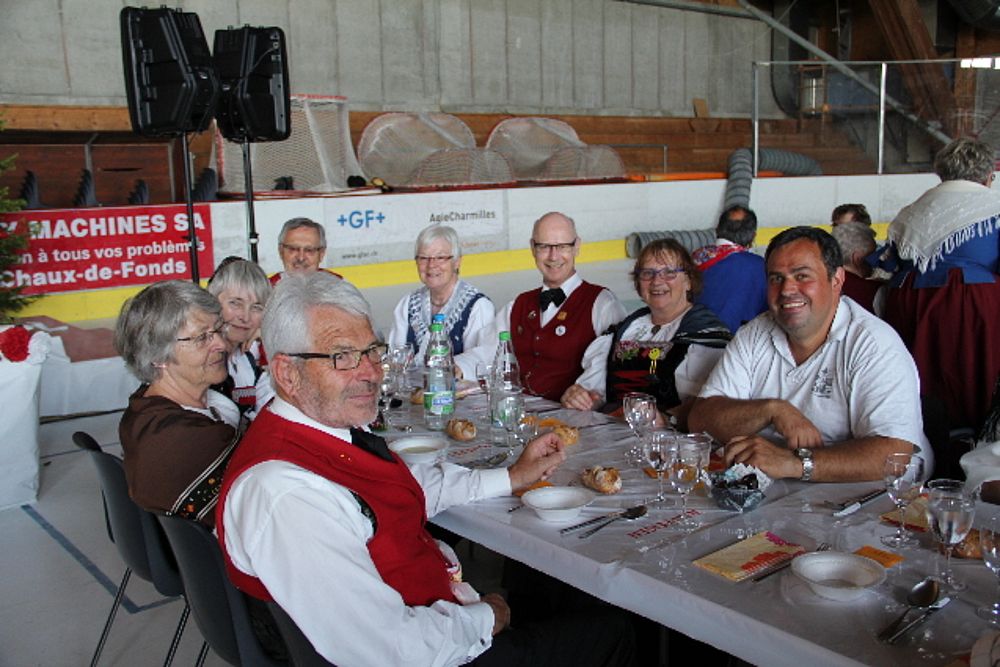 Die diesjährige Delegiertenversammlung der STV vom 7./8. Juni wurde erstmals vom Kanton Jura organisiert und fand im Eisbahn-Areal des Centre de loisirs bei Saignelégier statt, gegenüber dem Gelände des Marché-Concours. Es herrschte prächtiges Wetter. Wie nachstehende Schnappschüsse zeigen, waren auch zahlreiche Trachtenleute aus dem Baselbiet mit dabei.