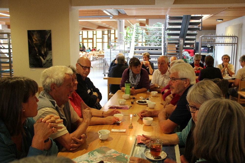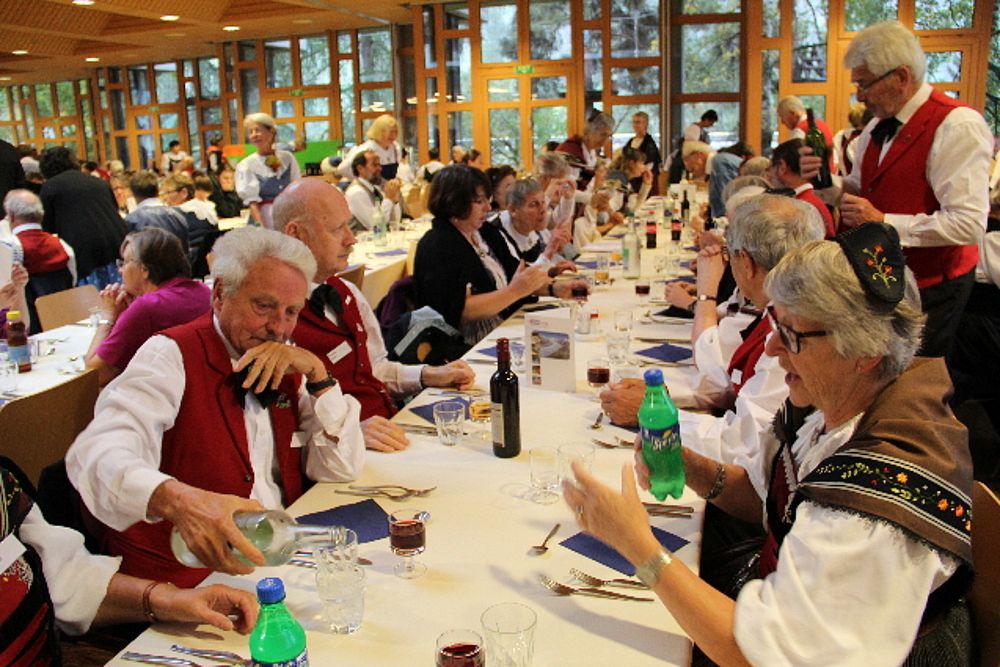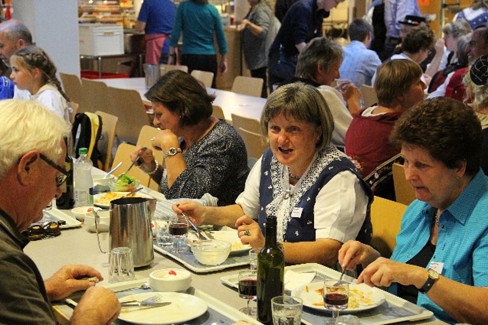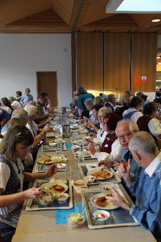 - Essen im Restaurant, Muttenz und Reinach an einem langen Tisch, übrige irgendwo im „Gewühl“.